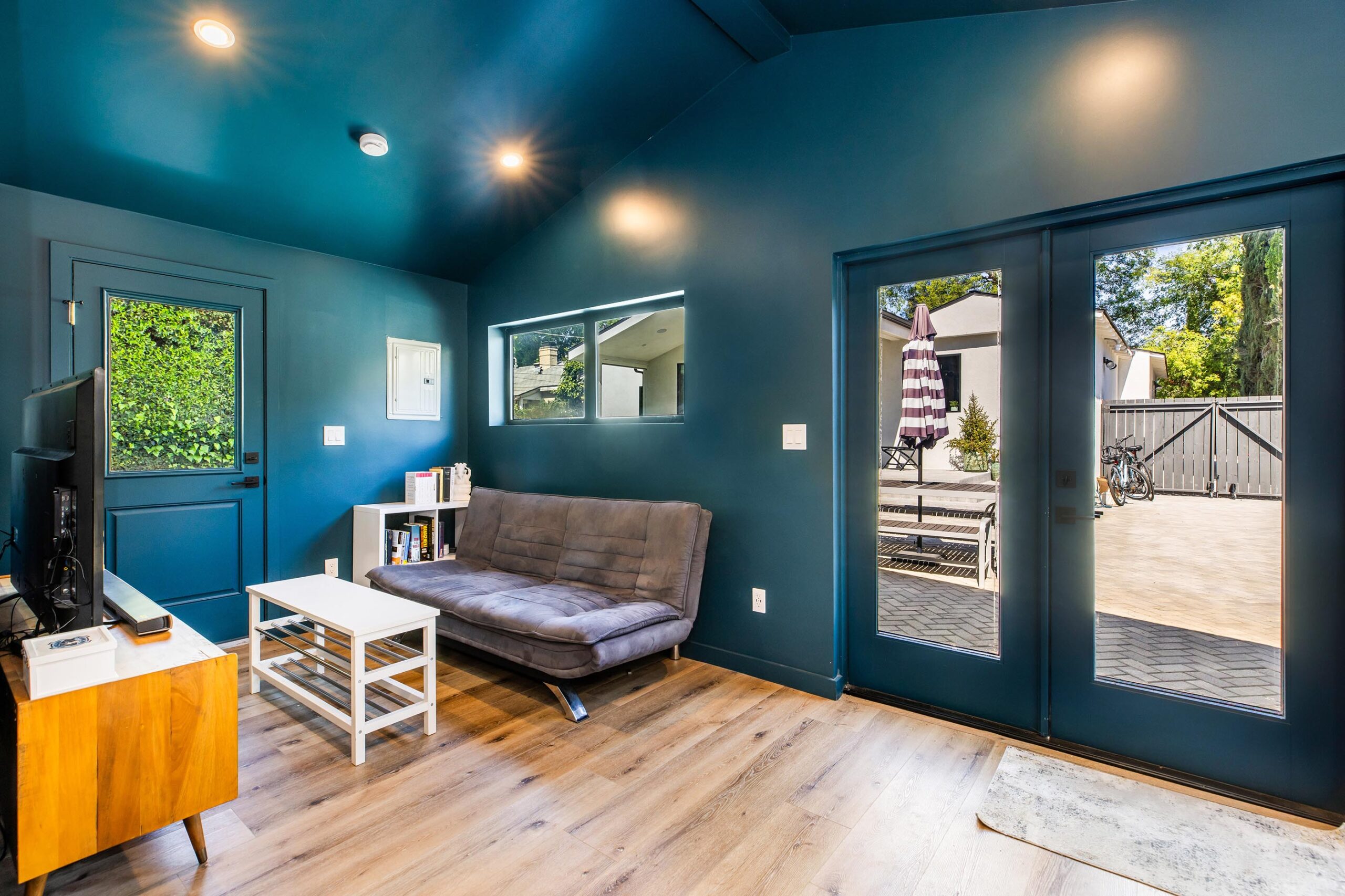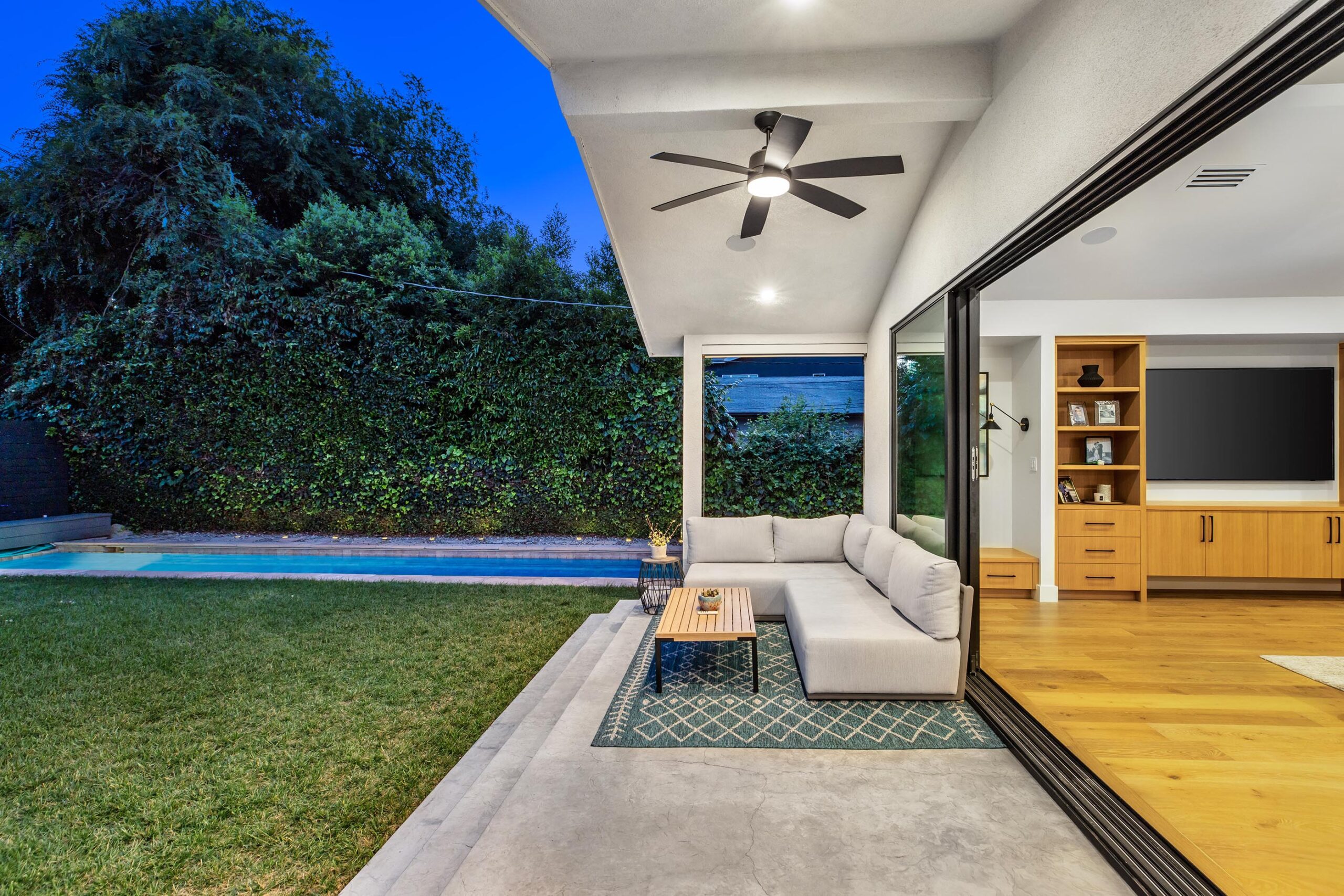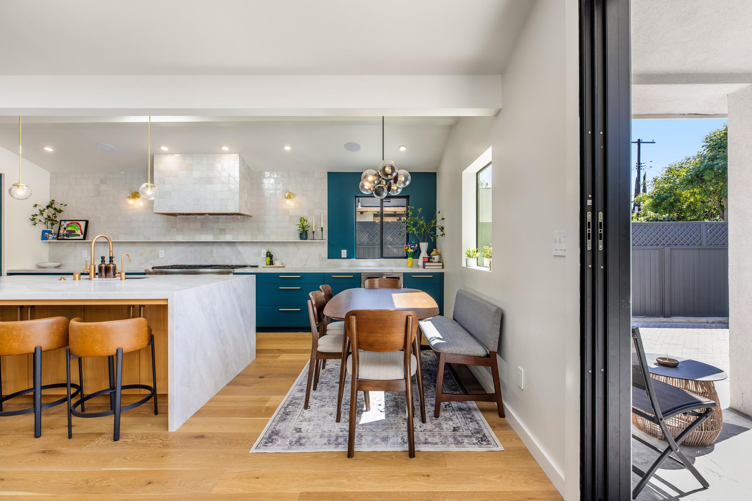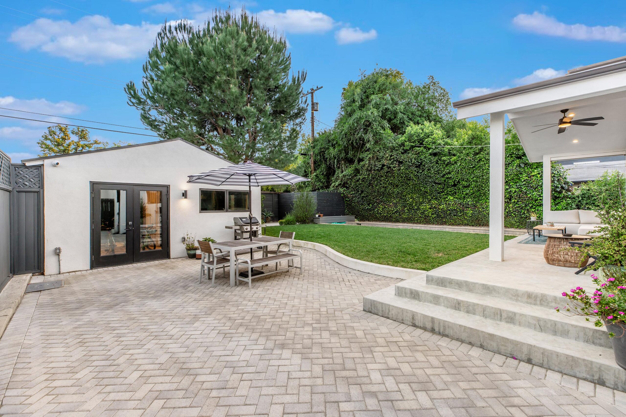 Step into this meticulously remodeled home in Valley Village showcasing luxury, sophistication, and timeless character. Spanning 3BD/3.5BA plus a fully permitted ADU, every finish has been thoughtfully curated from rich Zia tile featured in each ensuite bath to integrated smart home features throughout. Upon entry, warm engineered wood floors, high ceilings, and striking accent walls create an inviting first impression. The stunning chef’s kitchen is outfitted with a huge center island, Thermador appliances, a built-in Miele coffee system, dolomite countertops, and a sleek backsplash crafted from handcrafted Clé tile. The living room has custom built-ins and expansive Western sliding doors open to the backyard, creating the perfect indoor-outdoor lifestyle. A stylish powder room just off the kitchen is ideal for guests. Down the hall, the primary suite features soaring ceilings, a walk-in closet, and a luxurious ensuite bath complete with a spacious shower with bench, dual vanity, durable slate tile flooring, and private water closet. Each secondary bedroom offers sliding closet space and its own ensuite bath featuring custom carpentry vanities. Outside, the backyard is designed for year-round entertaining with a heated and filtered pool, a large private lawn, covered patio, and multiple lounge areas. The fully detached ADU includes a kitchenette with stainless steel appliances, waterproof LVP flooring, and a well-appointed bathroom with a step-in shower, ideal for guests, extended family, or rental income. Additionally behind the ADU you’ll find a bonus room that’s perfect for a home office, gym, or storage room. The home also includes a laundry room with side-by-side washer and dryer, surround sound both indoors and outdoors, a four-camera hardwired security system, and value-enhancing and money-saving solar energy system. Conveniently located near the award-winning Colfax Charter Elementary school, Valley Village Park, and some of the valley’s best dining and shopping, this reimagined home offers elevated living with exceptional convenience.