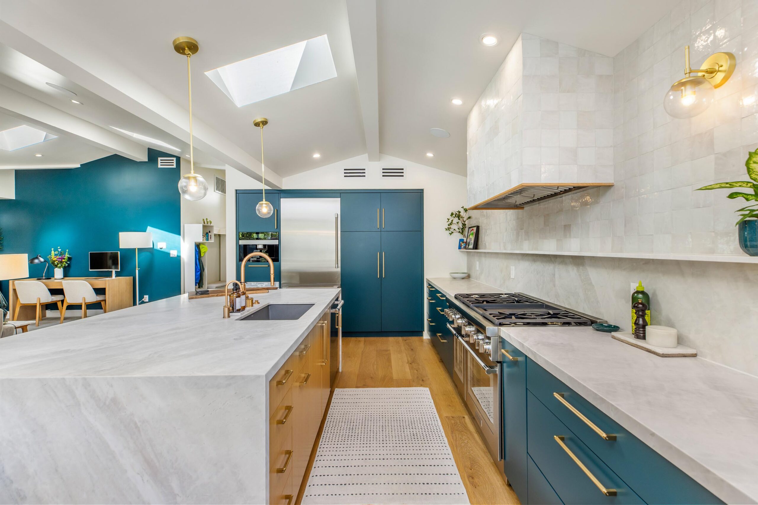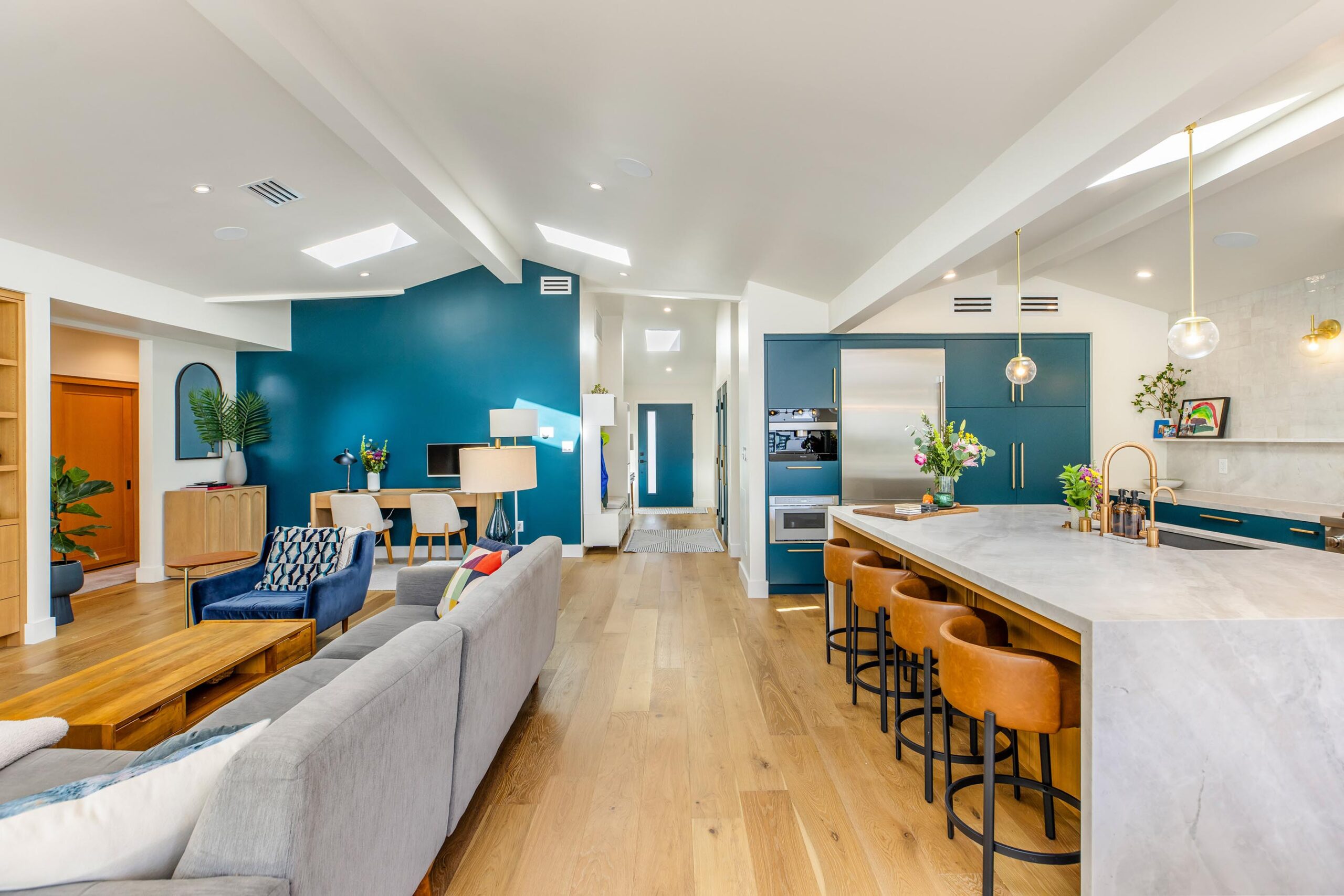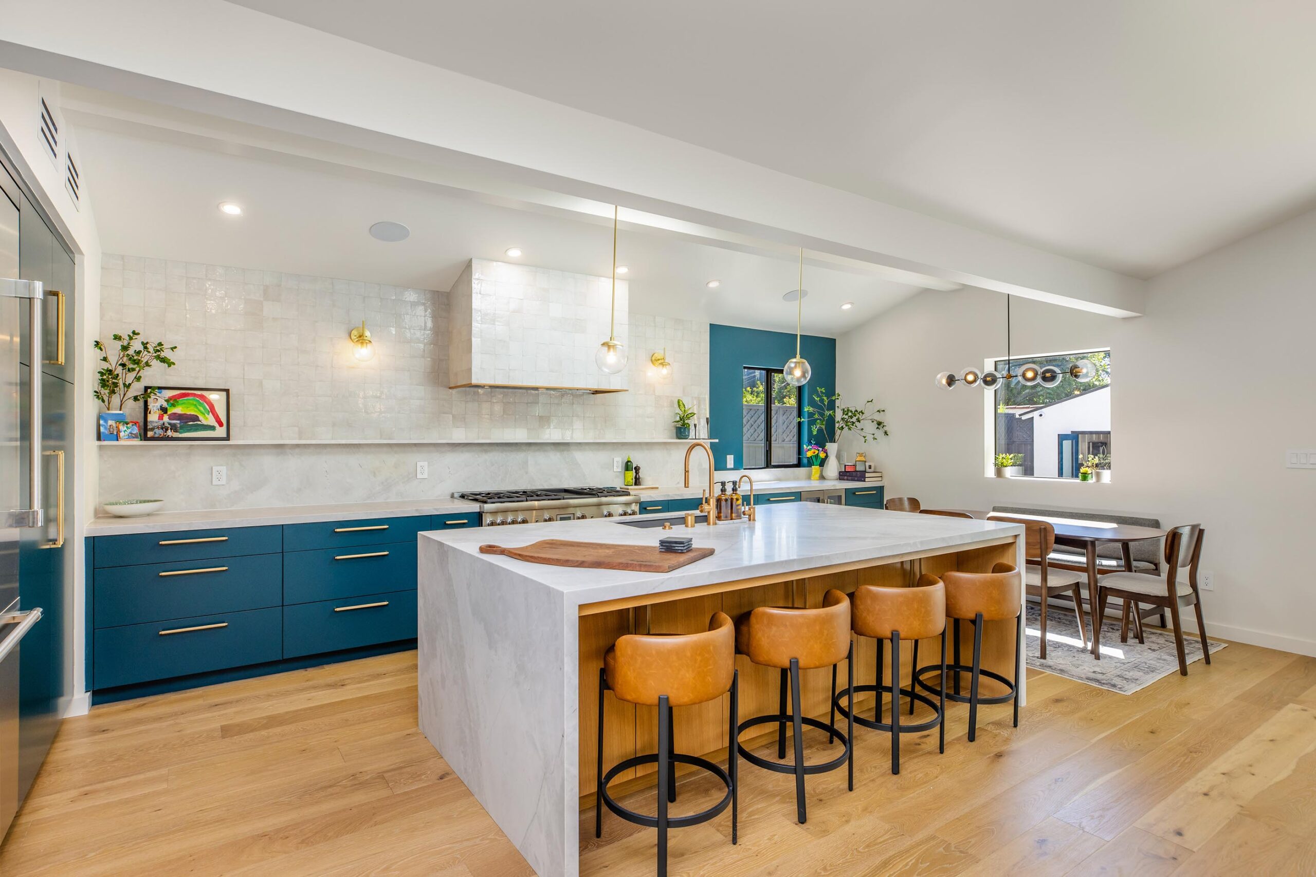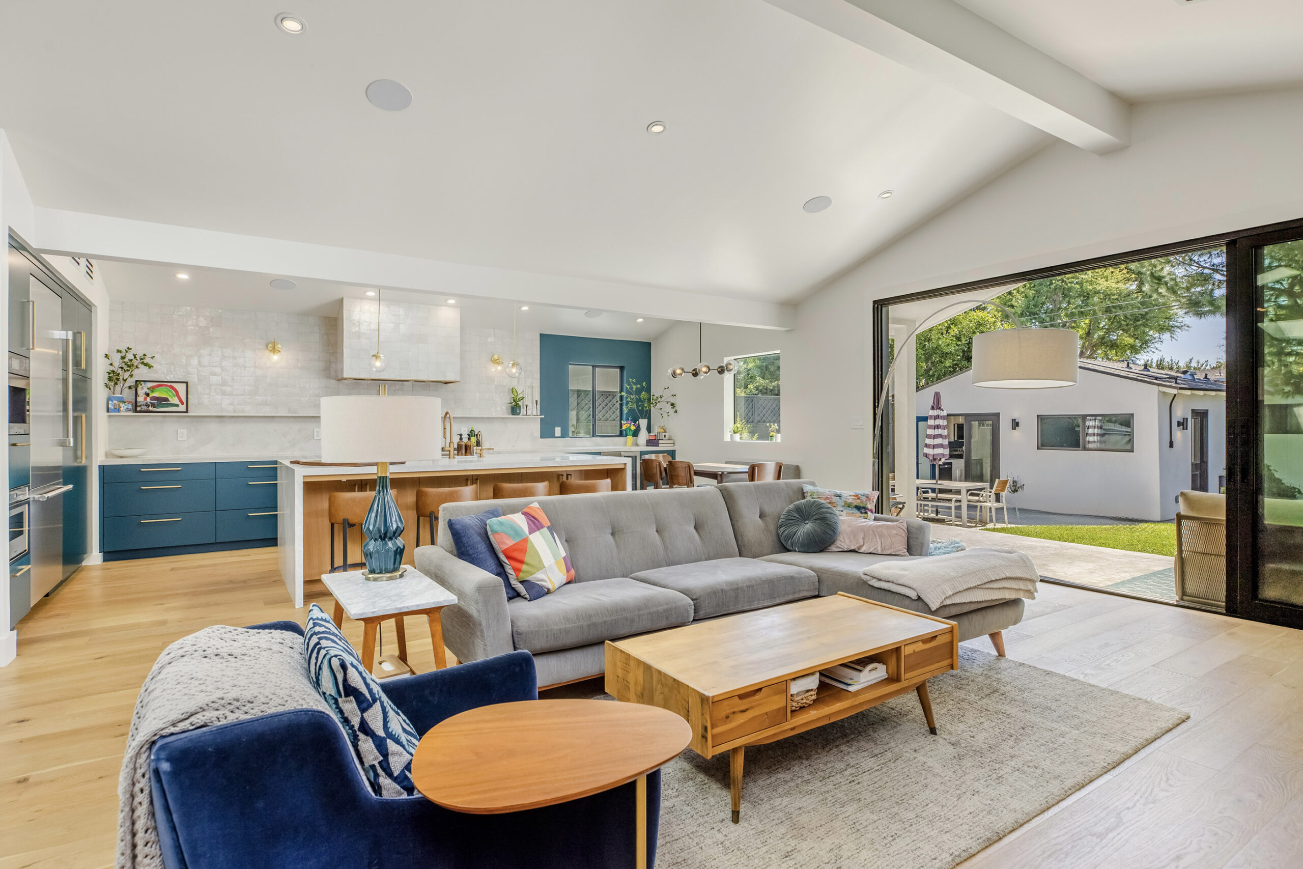 Step into this meticulously remodeled home in Valley Village showcasing luxury, sophistication, and timeless character. Spanning 3BD/3.5BA plus a fully permitted ADU, every finish has been thoughtfully curated from rich Zia tile featured in each ensuite bath to integrated smart home features throughout. Upon entry, warm engineered wood floors, high ceilings, and striking accent walls create an inviting first impression. The stunning chef’s kitchen is outfitted with a huge center island, Thermador appliances, a built-in Miele coffee system, dolomite countertops, and a sleek backsplash crafted from handcrafted Clé tile. The living room has custom built-ins and expansive Western sliding doors open to the backyard, creating the perfect indoor-outdoor lifestyle. A stylish powder room just off the kitchen is ideal for guests. Down the hall, the primary suite features soaring ceilings, a walk-in closet, and a luxurious ensuite bath complete with a spacious shower with bench, dual vanity, durable slate tile flooring, and private water closet. Each secondary bedroom offers sliding closet space and its own ensuite bath featuring custom carpentry vanities. Outside, the backyard is designed for year-round entertaining with a heated and filtered pool, a large private lawn, covered patio, and multiple lounge areas. The fully detached ADU includes a kitchenette with stainless steel appliances, waterproof LVP flooring, and a well-appointed bathroom with a step-in shower, ideal for guests, extended family, or rental income. Additionally behind the ADU you’ll find a bonus room that’s perfect for a home office, gym, or storage room. The home also includes a laundry room with side-by-side washer and dryer, surround sound both indoors and outdoors, a four-camera hardwired security system, and value-enhancing and money-saving solar energy system. Conveniently located near the award-winning Colfax Charter Elementary school, Valley Village Park, and some of the valley’s best dining and shopping, this reimagined home offers elevated living with exceptional convenience.