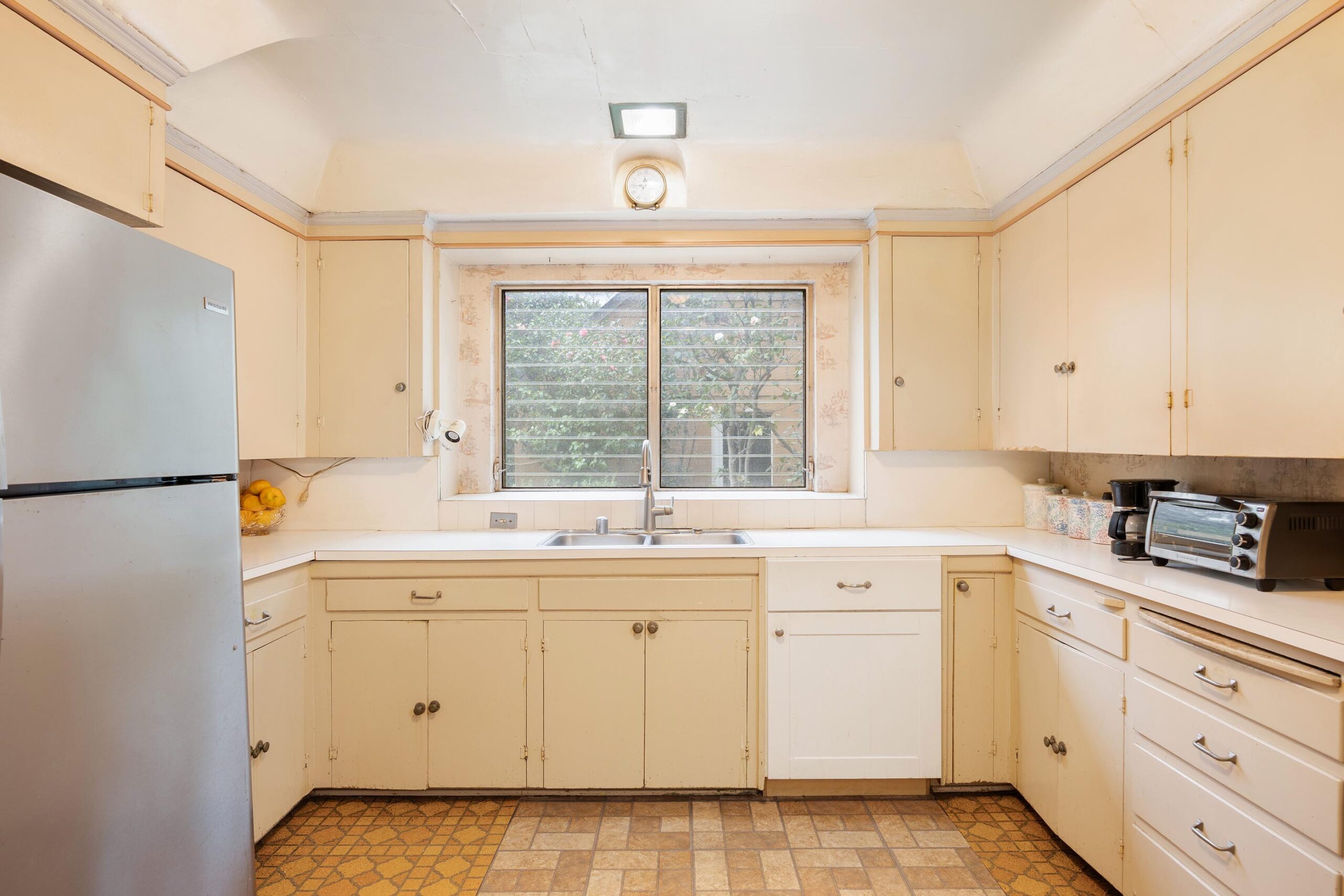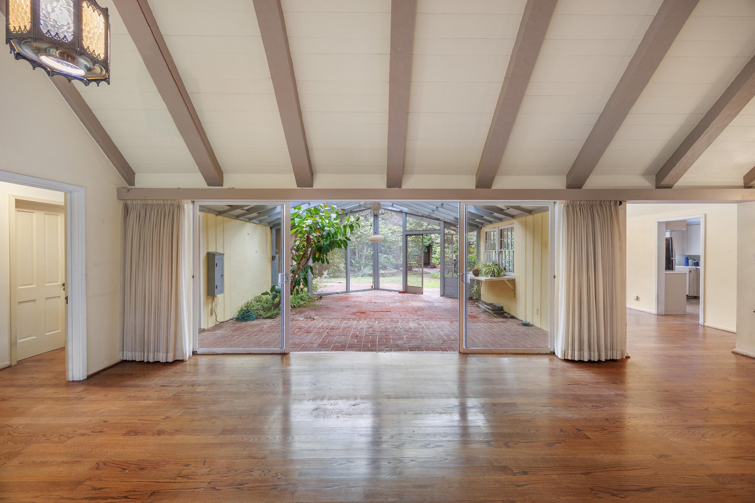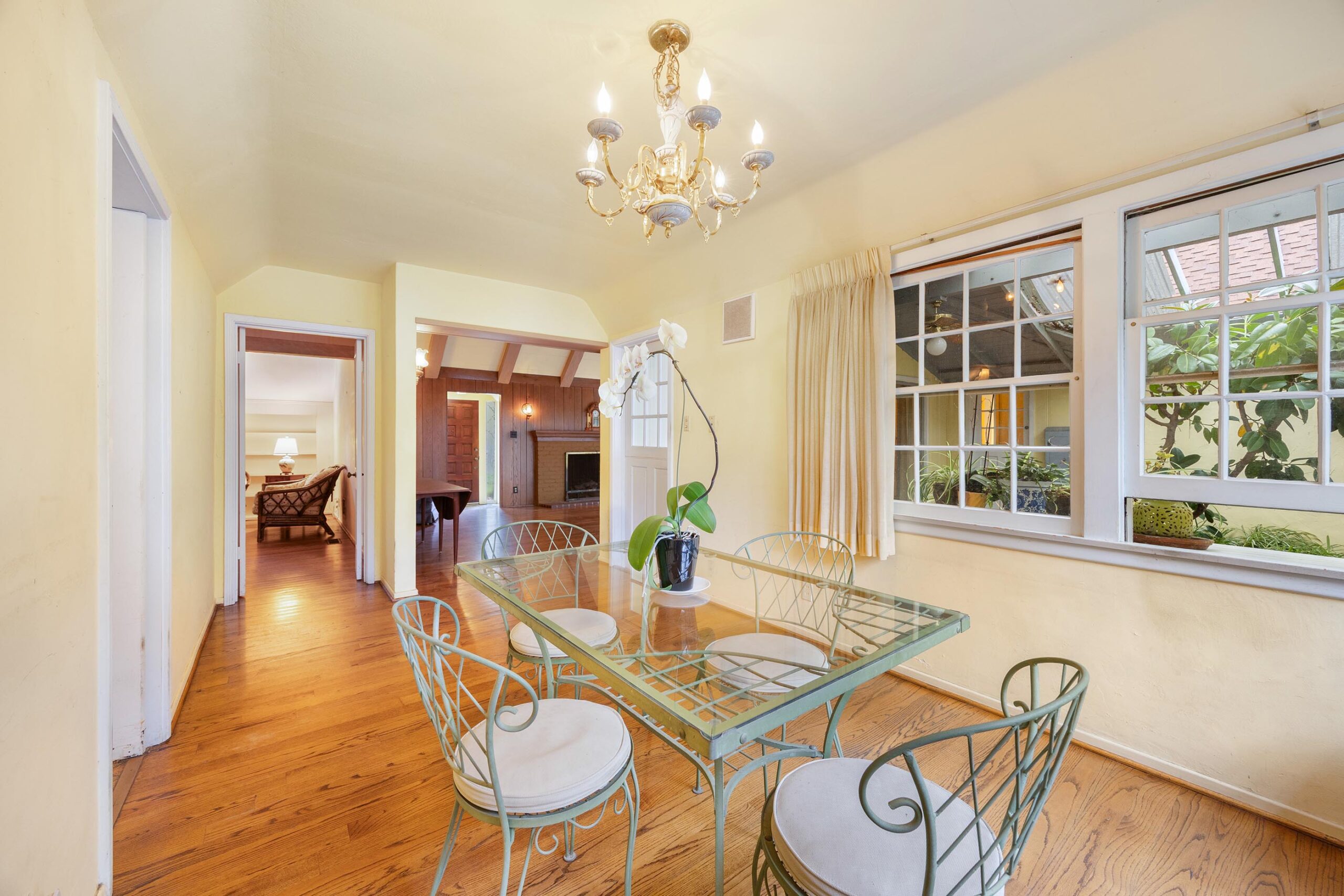 Set on an extraordinary 15,441 sqft corner lot in one of Valley Village’s most coveted neighborhoods, this rare offering presents a compelling blend of timeless character, expansive living spaces, and exceptional outdoor space. Held by the same owner for 64 years, the single-level 5BD/2.5BA residence rests on one of the largest lots in the area, offering a truly special opportunity for renovation or redevelopment. A charming, cottage-style entry welcomes you into interiors rich with warmth, featuring hardwood floors and a formal dining room that flows into the kitchen. The living room exudes character with its exposed wood-beamed ceilings, a classic fireplace, and sliding glass doors opening to a sunroom, creating a natural connection between indoor and outdoor living. An additional living area with a built-in bar, additional storage, and a second fireplace offers a versatile setting for entertaining or relaxed gatherings. All bedrooms provide ample closet space, including the spacious primary suite with direct access to the backyard through sliding glass doors. Step outside to a lush, park-like backyard framed by mature trees and anchored by an expansive deck, an idyllic canvas for creating a private outdoor retreat. Additional amenities include a laundry room, detached garage, and a connecting workshop space with strong ADU potential. Ideally located within the highly esteemed Colfax Charter School District and just moments from the shops and dining along Laurel Canyon, this property represents a rare chance to reimagine a legacy home on an oversized lot in a premier neighborhood. An exceptional opportunity for an end user to bring their vision to life.