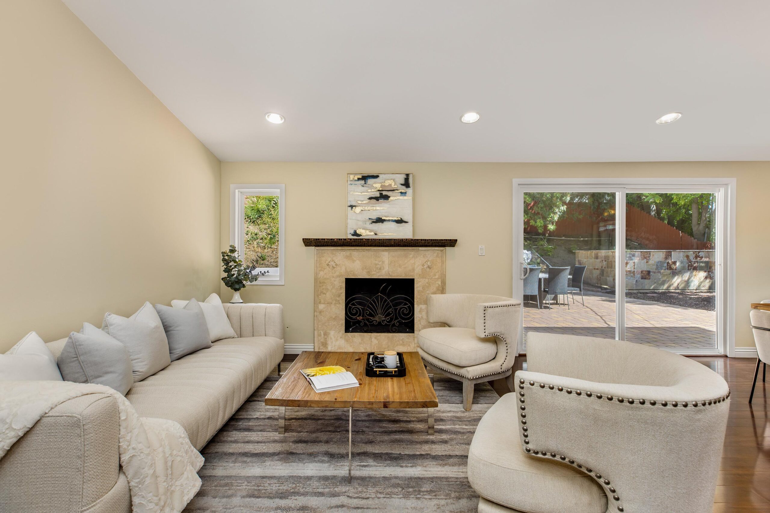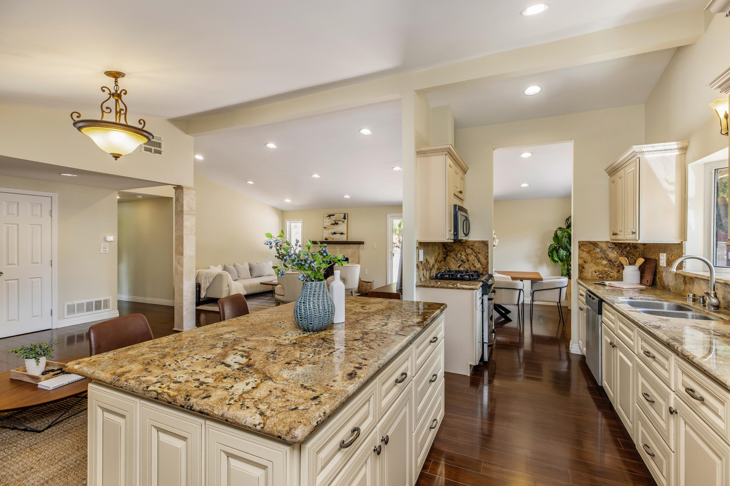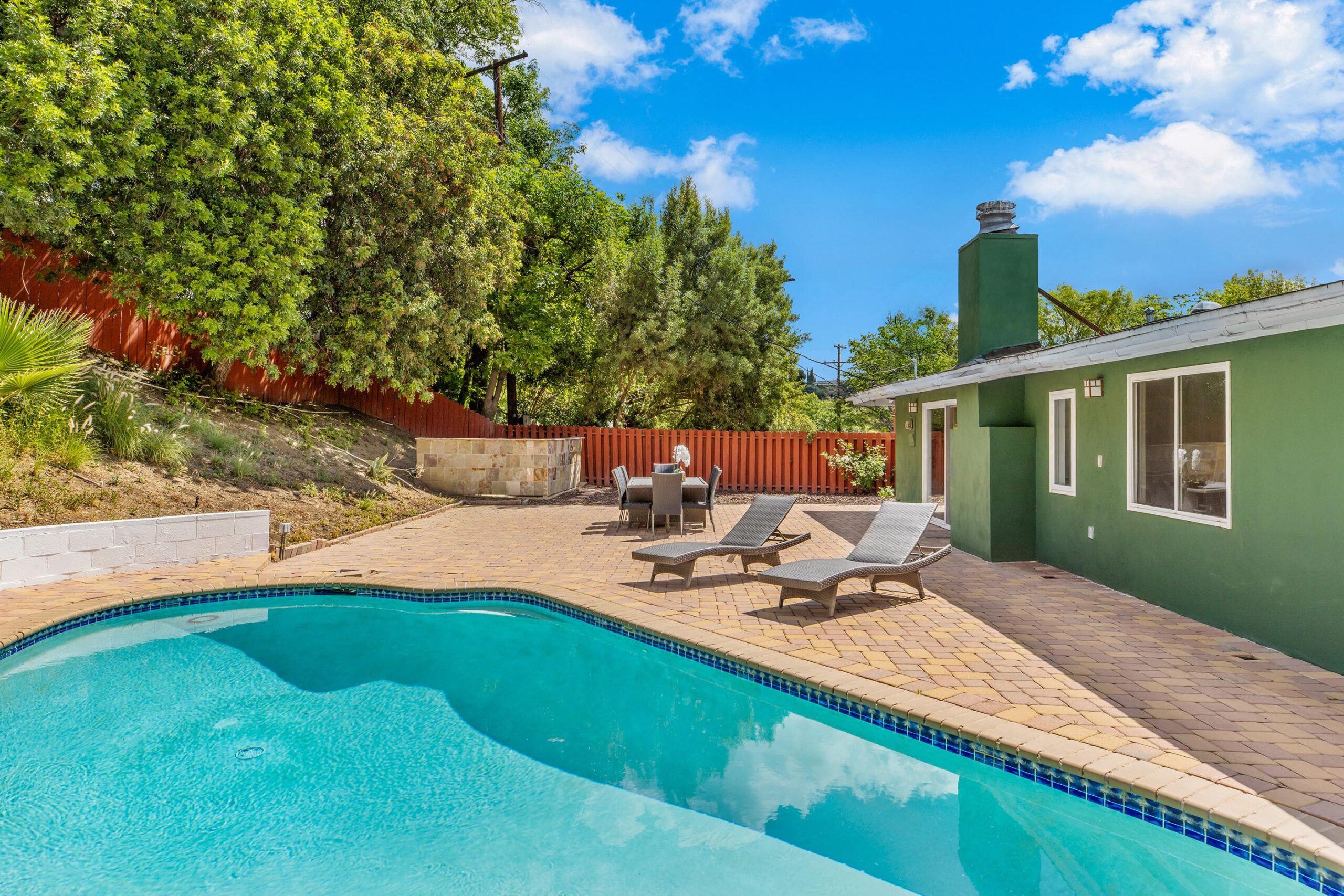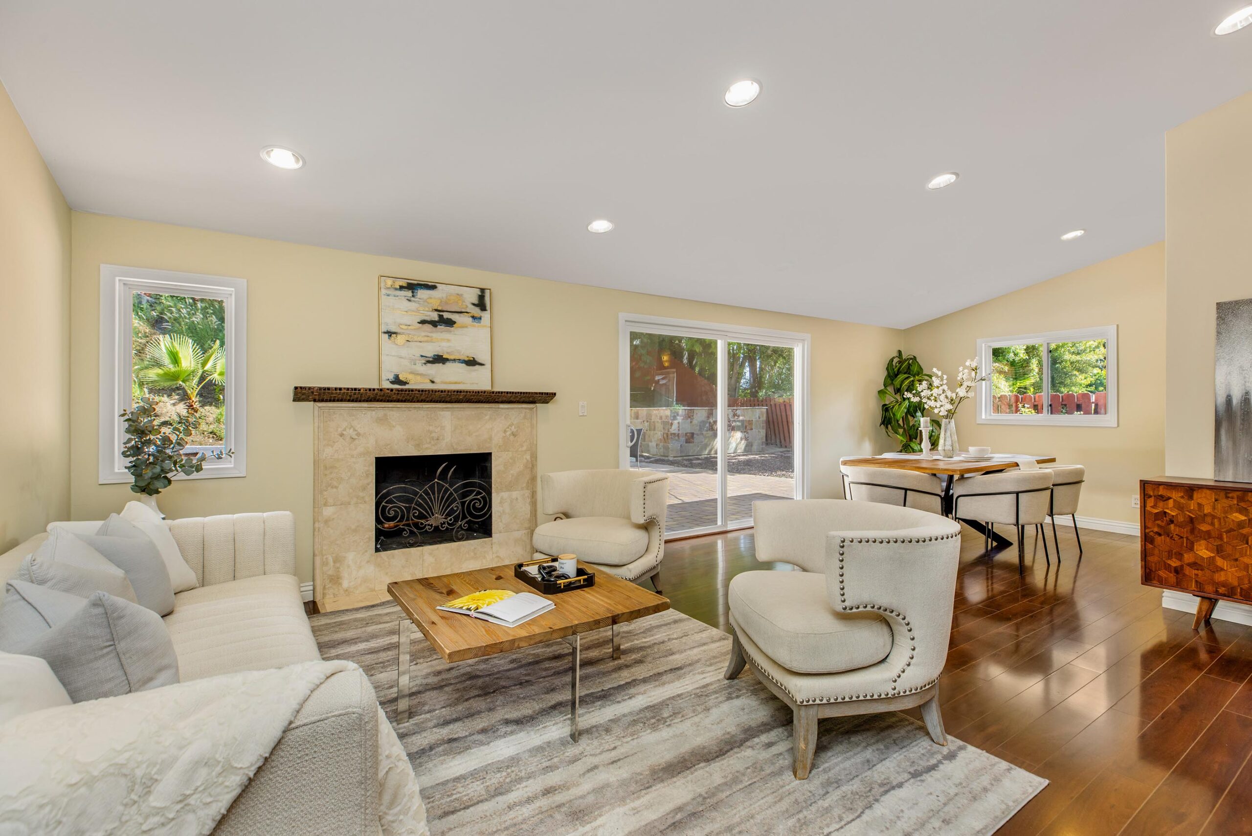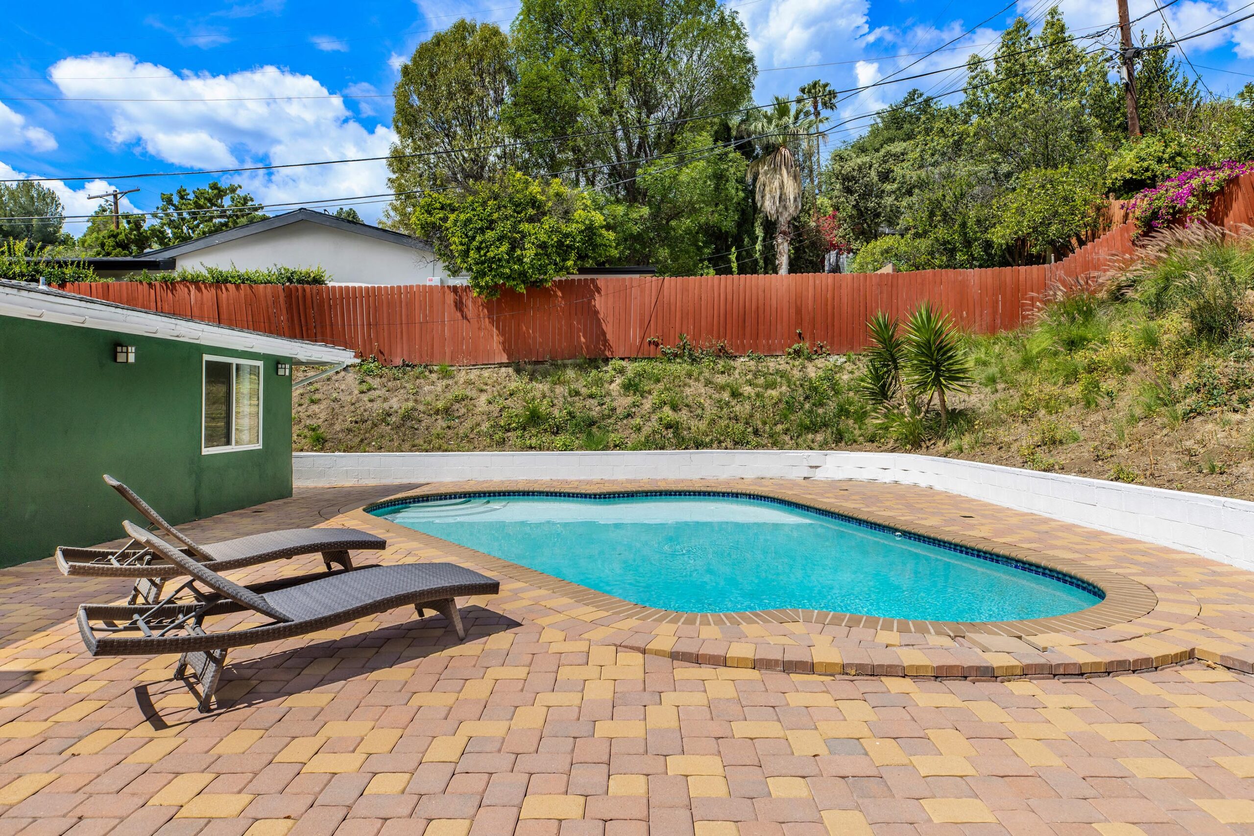 Set within the upscale Woodland Hills enclave of Carlton Terrace, this recently updated 3BD/2BA residence offers an ideal blend of comfort and style, highlighted by an open concept floor plan, vaulted ceilings, and a private, spacious backyard retreat. A peaceful street and inviting stone driveway lead into an airy interior, where recessed lighting, a cozy fireplace, and rich, high-quality laminate flooring create a warm, comfortable atmosphere. Sliding glass doors seamlessly extend the living space outdoors, enhancing the home's effortless indoor-outdoor flow. The living area opens naturally to the dining space with newer dual paned windows and a charming breakfast nook, and continues into the bright kitchen outfitted with custom cabinetry, premium granite countertops, stainless steel appliances, and an expansive island with bar seating ideal for gatherings. Just beyond the kitchen, a finished two-car garage offering additional storage and a separate laundry room with direct access add everyday convenience. The primary suite is both bright and well-appointed, featuring a walk-in closet and a newly remodeled en-suite bath with improved cabinetry and flooring. Two secondary bedrooms are thoughtfully positioned down the hallway and share an updated bathroom with a shower/tub combination. Outdoors, the spacious and private backyard retreat is designed for both relaxation and entertaining, showcasing a sparkling pool with a brand-new pump and filter, mature landscaping, and multiple areas for lounging and dining. Additional updates include fresh interior and exterior paint, new plumbing throughout, and enhanced perimeter fencing. Ideally located near the Westfield Topanga Mall & Topanga Village, Warner Center, and top-rated schools such as Pierce College and Taft Charter High School, this home presents a rare opportunity to enjoy modern upgrades in a highly desirable setting just minutes from the 101 freeway for easy commuting.