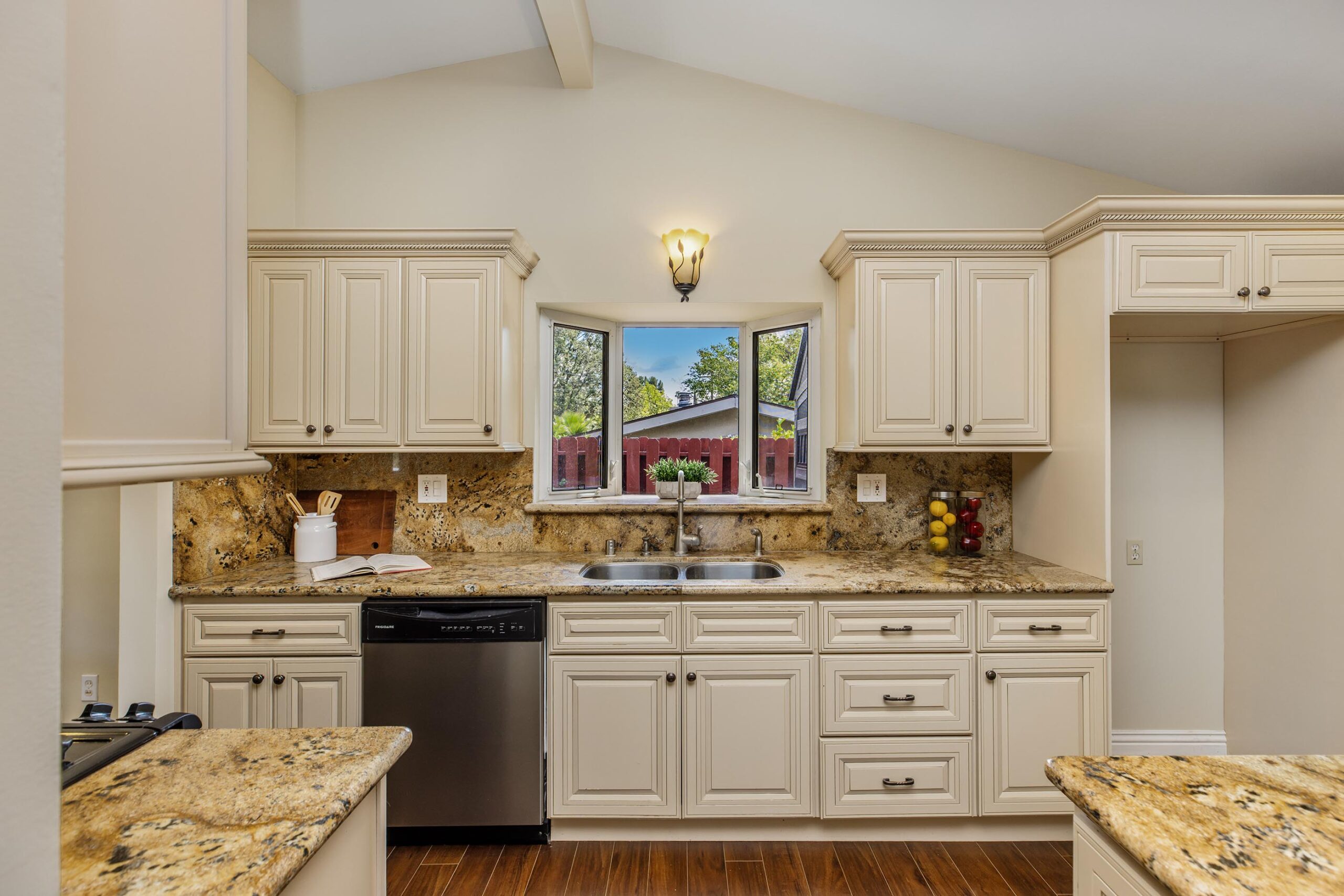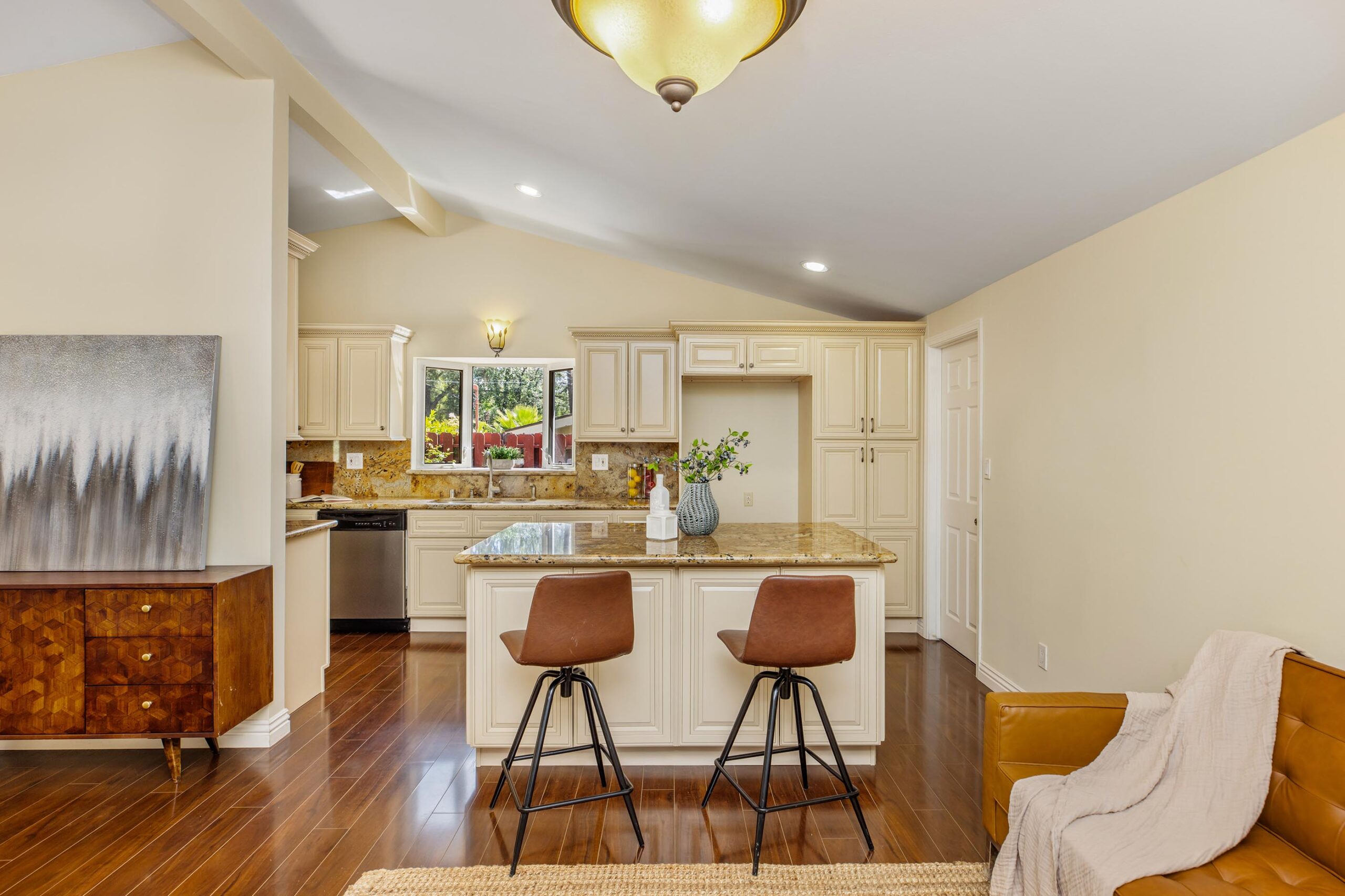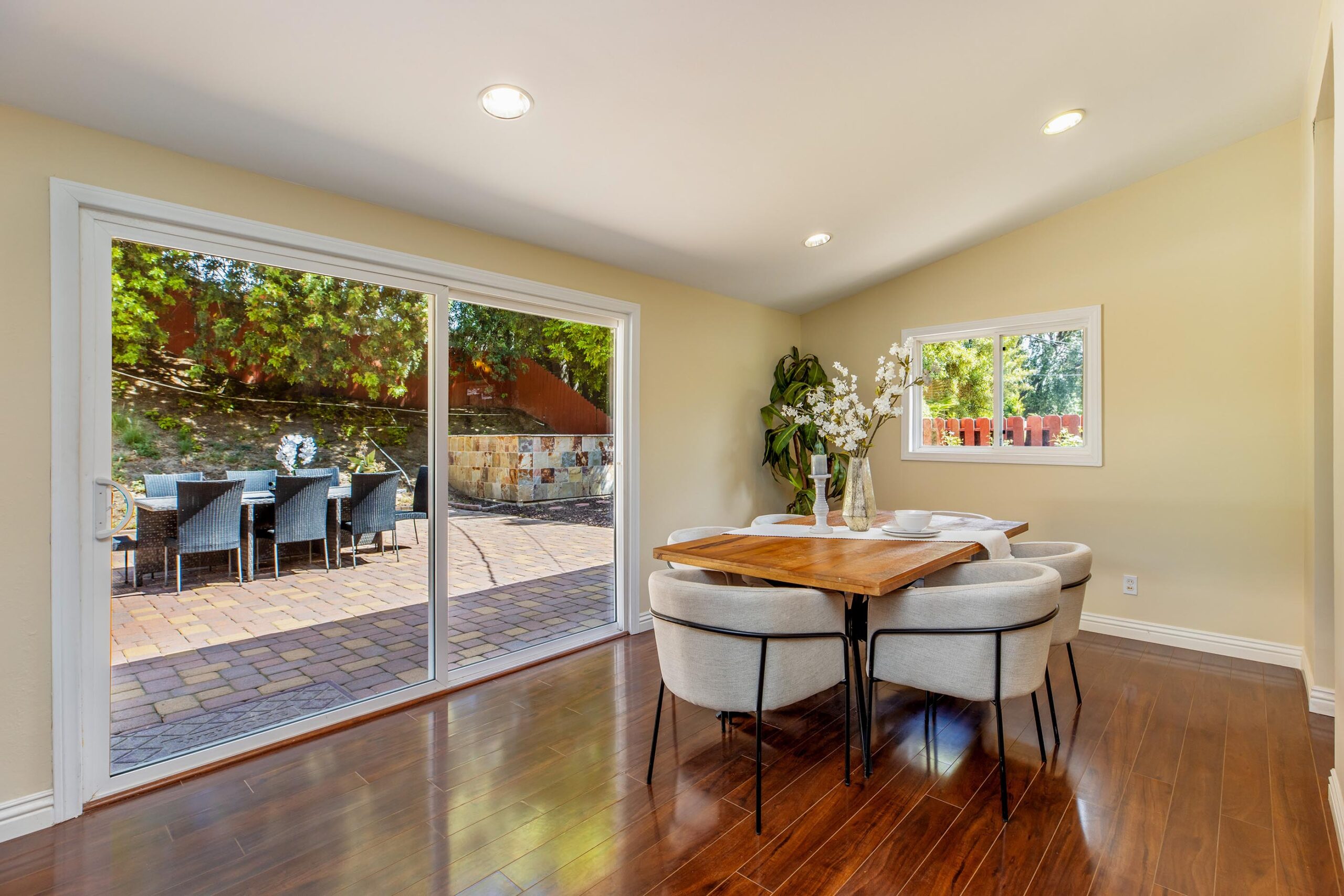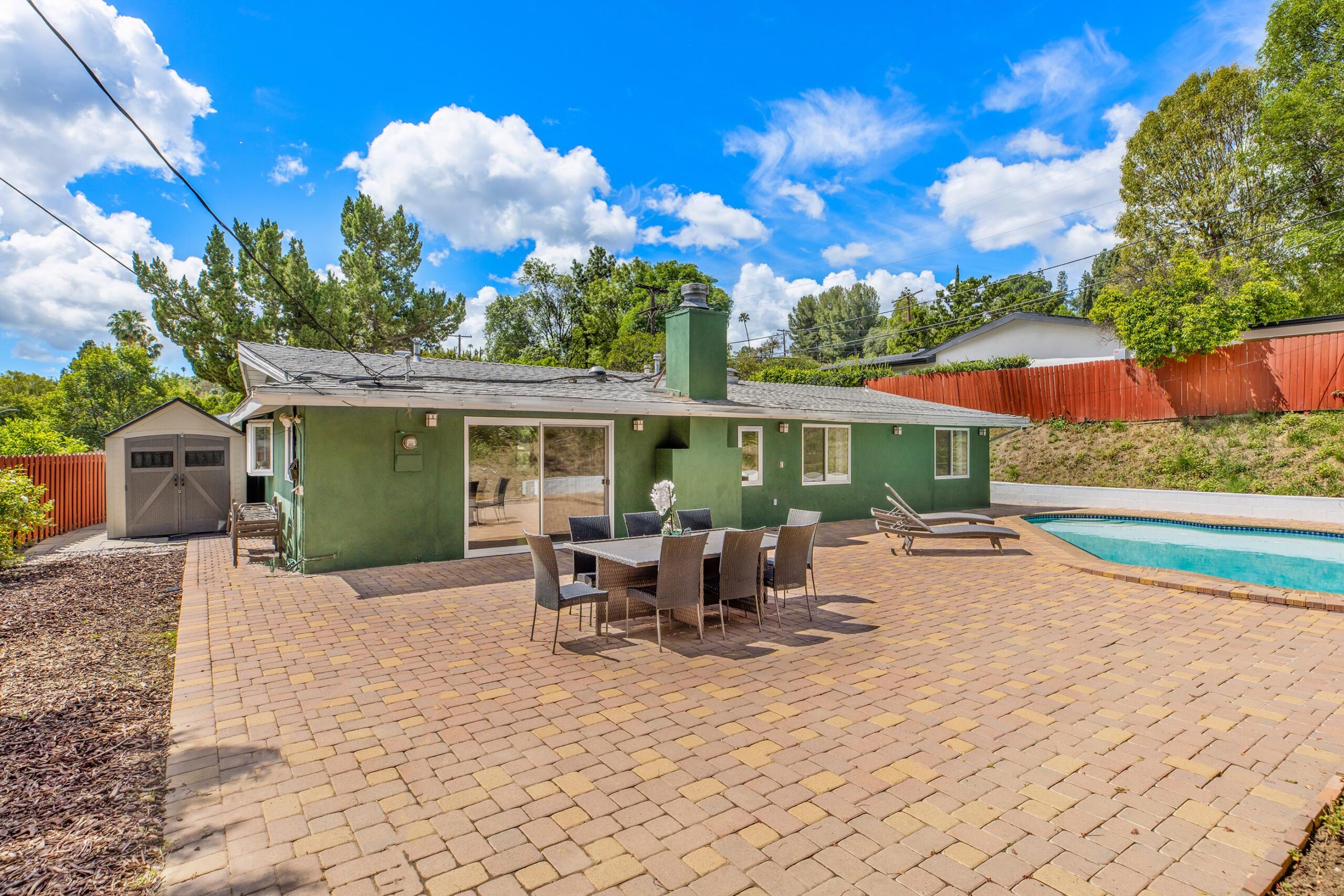 Set within the upscale Woodland Hills enclave of Carlton Terrace, this recently updated 3BD/2BA residence offers an ideal blend of comfort and style, highlighted by an open concept floor plan, vaulted ceilings, and a private, spacious backyard retreat. A peaceful street and inviting stone driveway lead into an airy interior, where recessed lighting, a cozy fireplace, and rich, high-quality laminate flooring create a warm, comfortable atmosphere. Sliding glass doors seamlessly extend the living space outdoors, enhancing the home's effortless indoor-outdoor flow. The living area opens naturally to the dining space with newer dual paned windows and a charming breakfast nook, and continues into the bright kitchen outfitted with custom cabinetry, premium granite countertops, stainless steel appliances, and an expansive island with bar seating ideal for gatherings. Just beyond the kitchen, a finished two-car garage offering additional storage and a separate laundry room with direct access add everyday convenience. The primary suite is both bright and well-appointed, featuring a walk-in closet and a newly remodeled en-suite bath with improved cabinetry and flooring. Two secondary bedrooms are thoughtfully positioned down the hallway and share an updated bathroom with a shower/tub combination. Outdoors, the spacious and private backyard retreat is designed for both relaxation and entertaining, showcasing a sparkling pool with a brand-new pump and filter, mature landscaping, and multiple areas for lounging and dining. Additional updates include fresh interior and exterior paint, new plumbing throughout, and enhanced perimeter fencing. Ideally located near the Westfield Topanga Mall & Topanga Village, Warner Center, and top-rated schools such as Pierce College and Taft Charter High School, this home presents a rare opportunity to enjoy modern upgrades in a highly desirable setting just minutes from the 101 freeway for easy commuting.