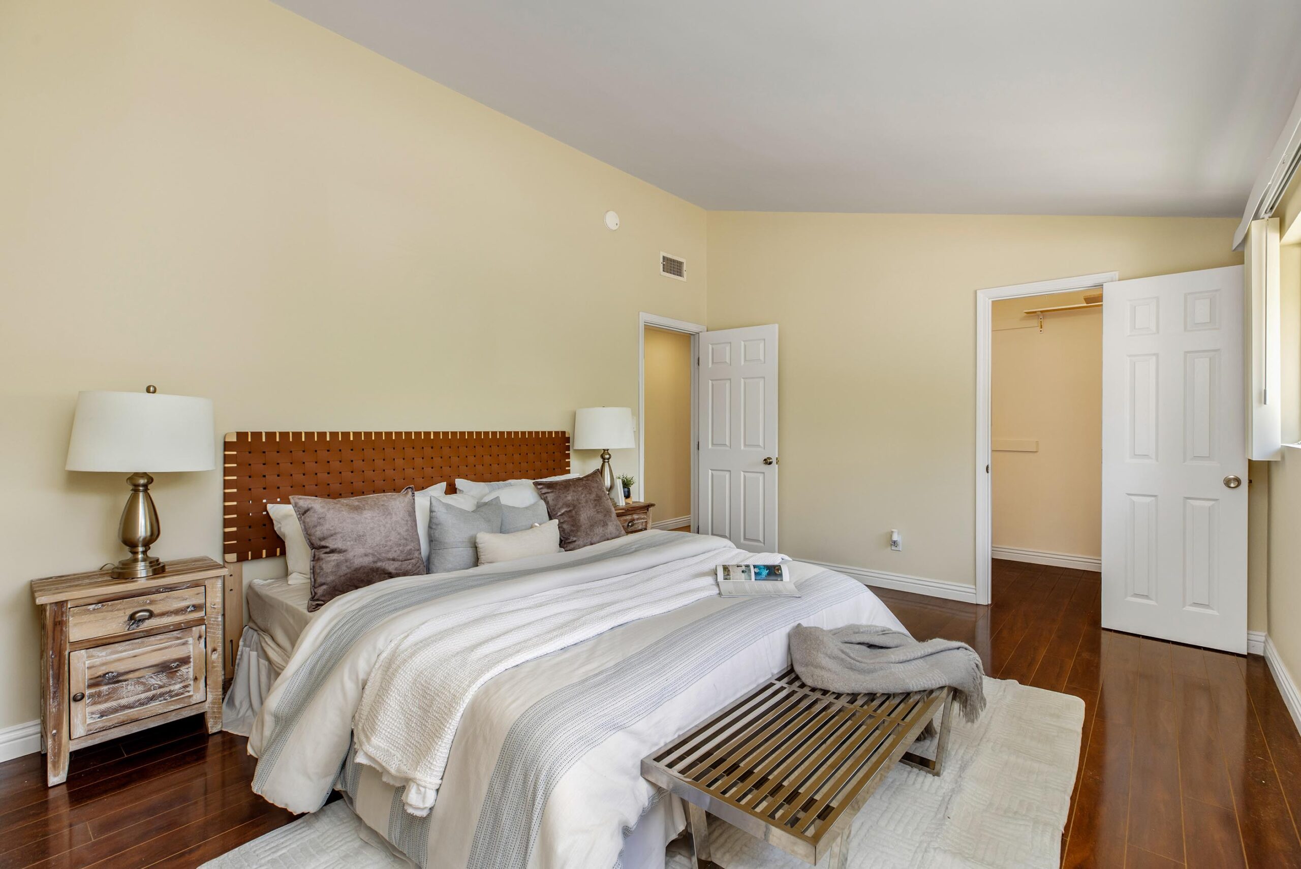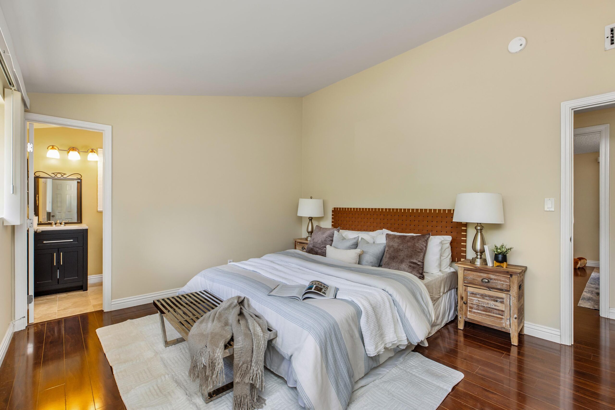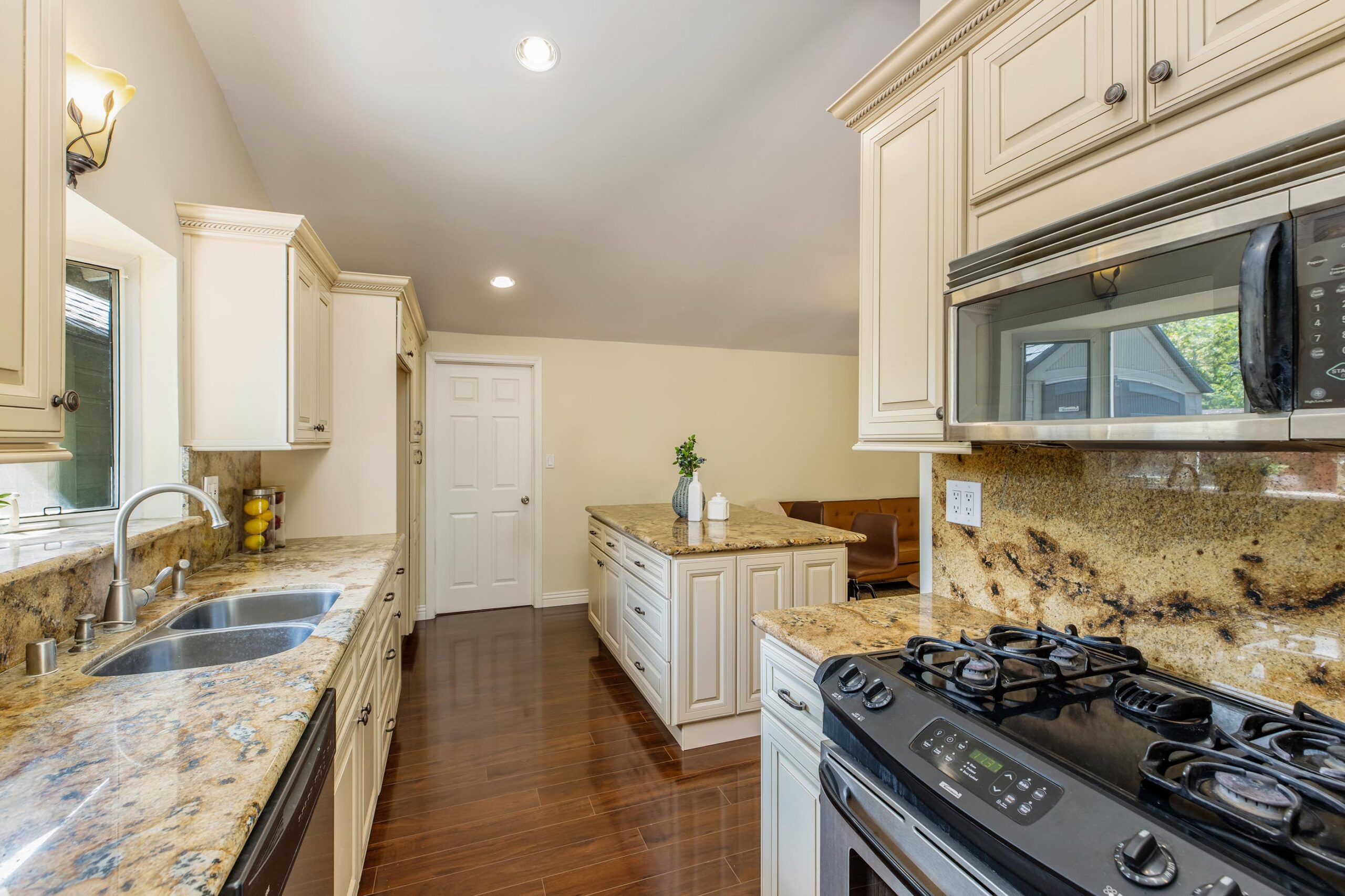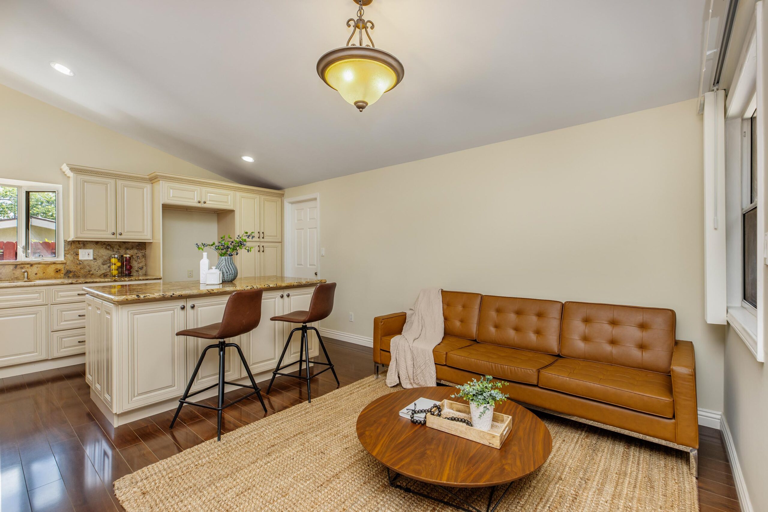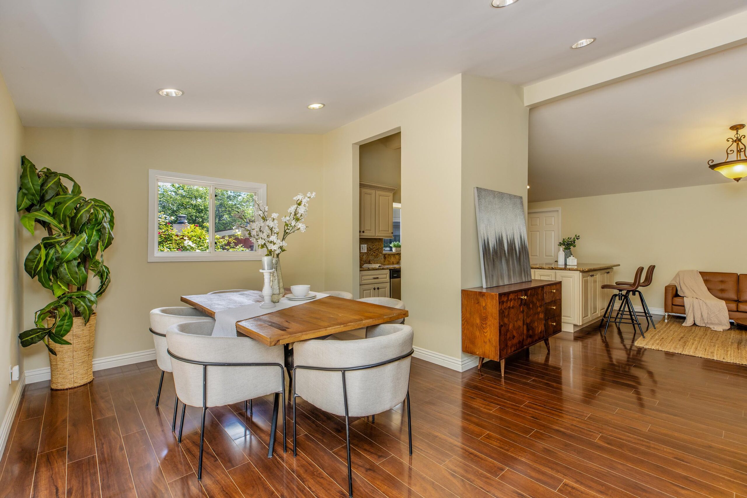 Set within the upscale Woodland Hills enclave of Carlton Terrace, this recently updated 3BD/2BA residence offers an ideal blend of comfort and style, highlighted by an open concept floor plan, vaulted ceilings, and a private, spacious backyard retreat. A peaceful street and inviting stone driveway lead into an airy interior, where recessed lighting, a cozy fireplace, and rich, high-quality laminate flooring create a warm, comfortable atmosphere. Sliding glass doors seamlessly extend the living space outdoors, enhancing the home's effortless indoor-outdoor flow. The living area opens naturally to the dining space with newer dual paned windows and a charming breakfast nook, and continues into the bright kitchen outfitted with custom cabinetry, premium granite countertops, stainless steel appliances, and an expansive island with bar seating ideal for gatherings. Just beyond the kitchen, a finished two-car garage offering additional storage and a separate laundry room with direct access add everyday convenience. The primary suite is both bright and well-appointed, featuring a walk-in closet and a newly remodeled en-suite bath with improved cabinetry and flooring. Two secondary bedrooms are thoughtfully positioned down the hallway and share an updated bathroom with a shower/tub combination. Outdoors, the spacious and private backyard retreat is designed for both relaxation and entertaining, showcasing a sparkling pool with a brand-new pump and filter, mature landscaping, and multiple areas for lounging and dining. Additional updates include fresh interior and exterior paint, new plumbing throughout, and enhanced perimeter fencing. Ideally located near the Westfield Topanga Mall & Topanga Village, Warner Center, and top-rated schools such as Pierce College and Taft Charter High School, this home presents a rare opportunity to enjoy modern upgrades in a highly desirable setting just minutes from the 101 freeway for easy commuting.