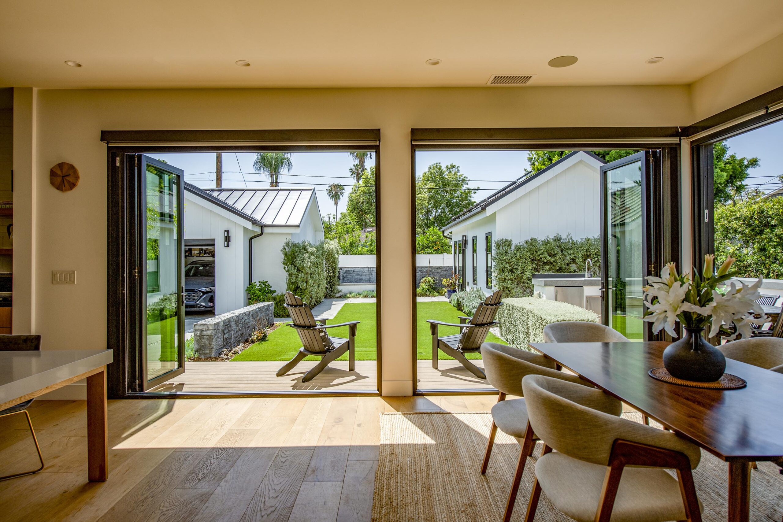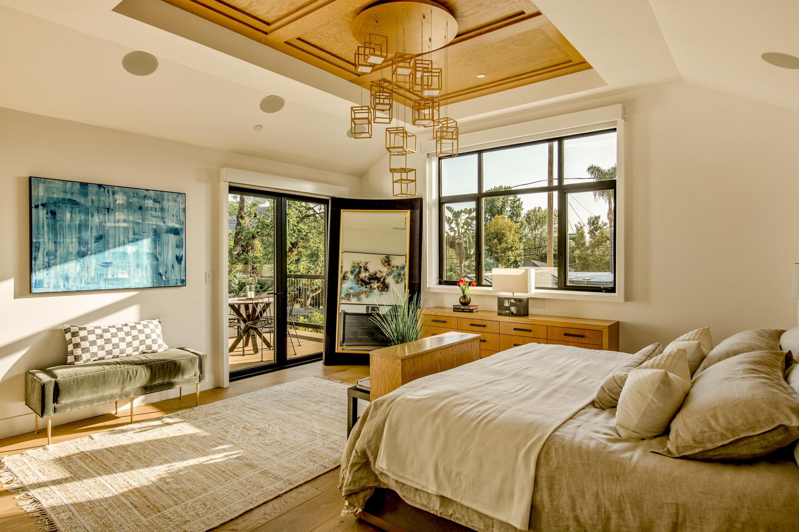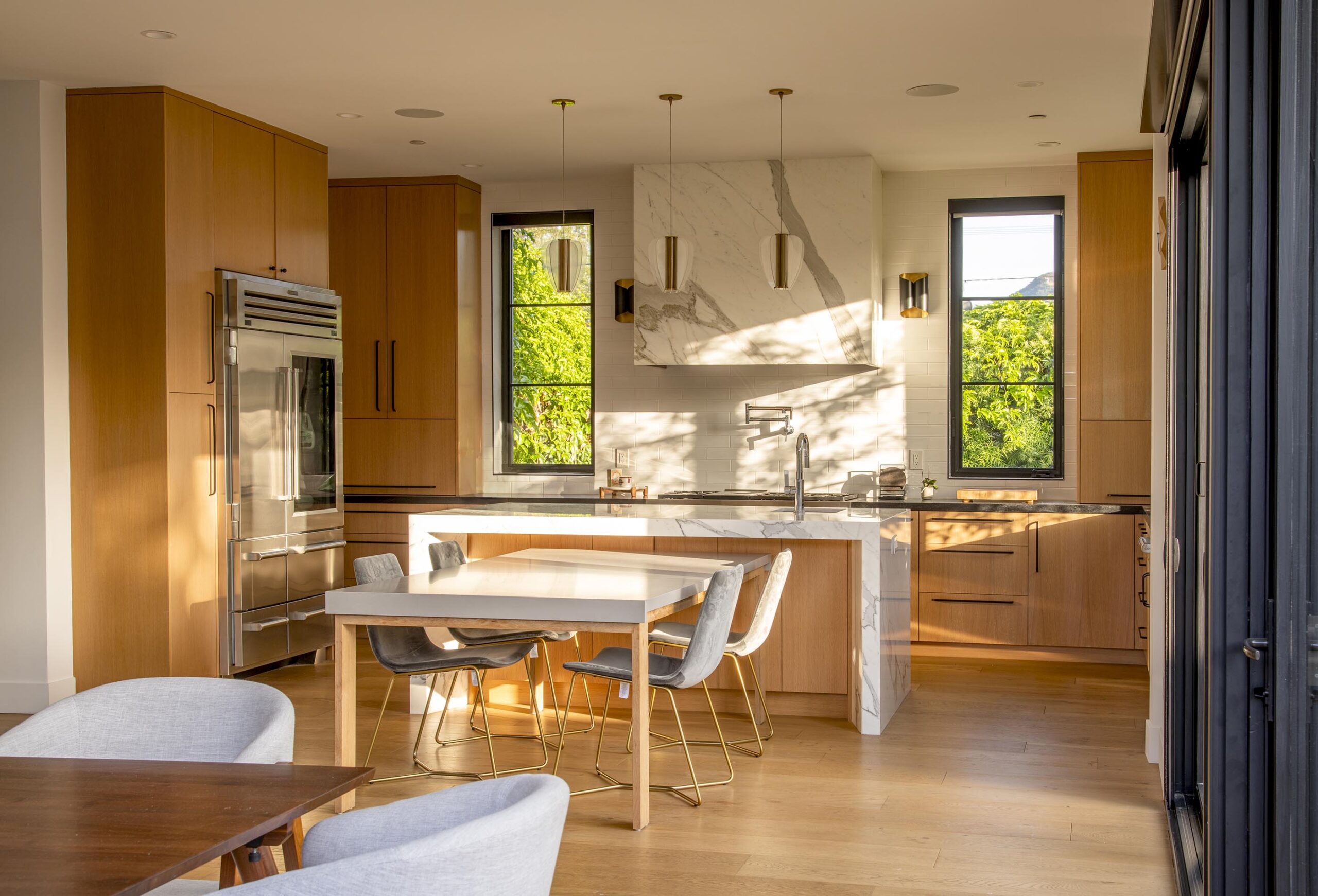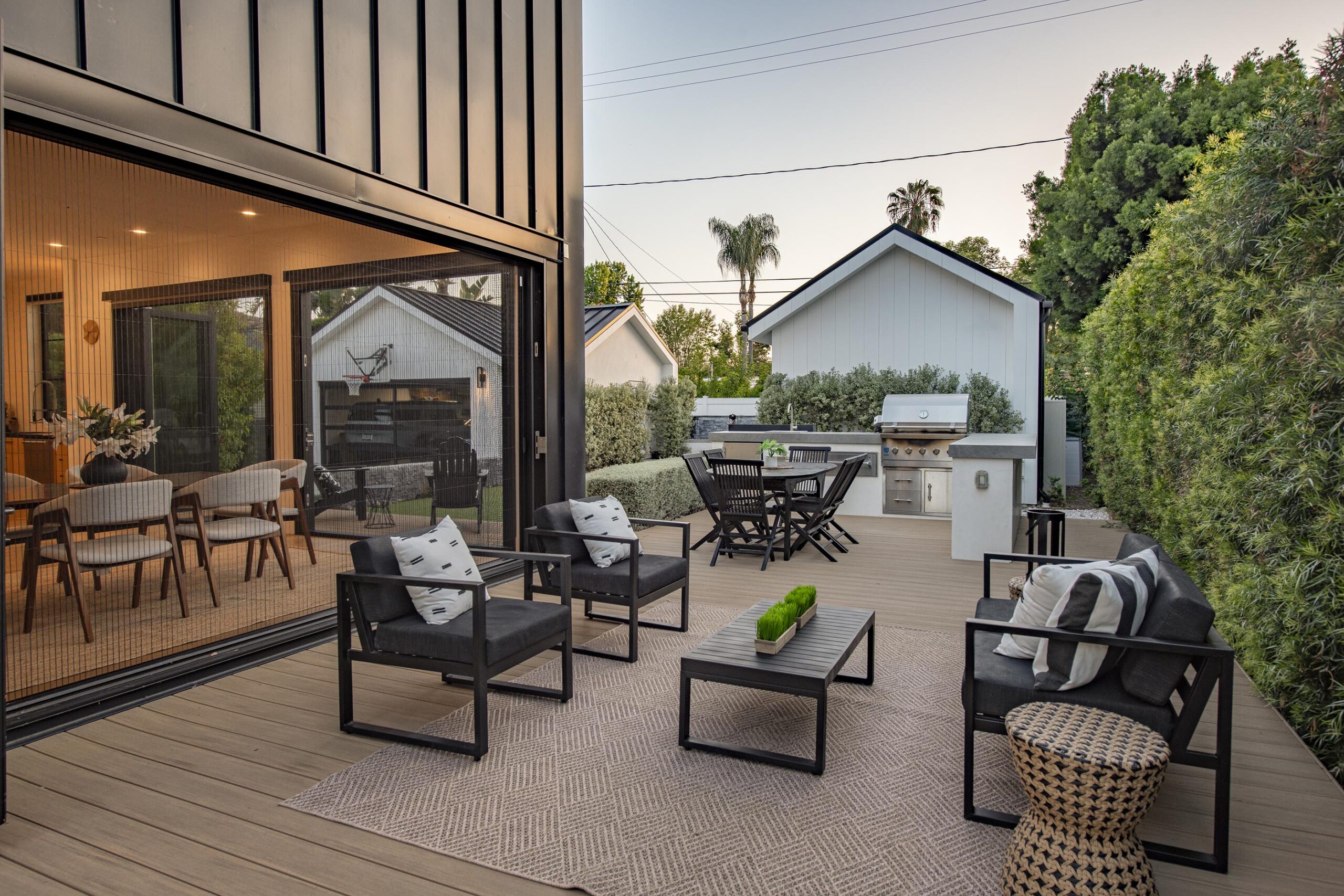 Set on a quiet one-way street in Burbank’s highly coveted Rancho Adjacent neighborhood, this exceptional custom-built new construction offers three levels of meticulously curated design, seamlessly blending refined finishes, advanced smart home technology, and effortless indoor-outdoor living. Spanning 3BD/3.5BA, plus a fully finished basement, two-car garage, and a detached 1BD/1BA ADU, the residence is thoughtfully designed for elevated modern living in a premier location. Beyond the gated driveway a sophisticated entry unfolds into an expansive open-concept main level, where light wood flooring, fluted architectural detailing, and designer lighting establish a warm yet contemporary aesthetic. A built-in office nook and a versatile bonus space, wrapped in distinctive floral wallpaper imported from Sweden, offer a stylish setting for work or creative retreat, all flowing into a grand living room anchored by a sleek bar and a gas fireplace adorned with hand-painted tile. The chef’s kitchen features Sub-Zero appliances, a Wolf range, Statuario Extra marble countertops with waterfall edge, a walk-in pantry, and extensive custom cabinetry. The adjoining dining area is framed by floor-to-ceiling La Cantina sliding doors, creating a seamless transition to the outdoors and an ideal setting for entertaining. A beautifully appointed powder room off of the living room completes the main level. Upstairs, three ensuite bedrooms provide comfort and privacy, including a stunning primary suite featuring a walk-in closet, custom built-ins, and a private balcony with serene backyard views. The spa-inspired primary bath is outfitted with heated floors, soaking tub, Rubinet fixtures, a smart mirror, and Calacatta Bluette marble surfaces. Just off the primary suite, a secondary bedroom offers a built-in hamper, a solar tube that enhances natural light, and an ensuite bath with a double vanity and shower/tub combination. The final bedroom includes a private balcony and a beautifully appointed ensuite with hand-painted tile and a shower/tub combination. All ensuite bedrooms feature high-end bathroom finishes, including Japanese-style smart toilets. The basement is designed for both wellness and leisure, offering a gym, wall-to-wall floor length mirrors, an environmentally controlled wine room, Finnish sauna, and direct access to the backyard. Outdoors, the private grounds are thoughtfully designed for entertaining and relaxation, complete with an outdoor kitchen, expansive deck, lush landscaping with drip irrigation, multiple lounge areas, and a dedicated play space. Enhancing both versatility and value, the detached ADU (233 S Orchard Dr) features a sleek kitchenette with a charming breakfast nook, bedroom and full bathroom, all ideal for guests or rental income. Additional highlights include a two-car garage with dual EV chargers, fully owned solar system, standing seam metal roof, integrated surround sound on the main level and in the primary suite, two Tesla Powerwalls, whole home AprilAire humidifier, top-of-the-line HVAC system, and a comprehensive water filtration system with UV purification. Ideally located near top rated schools, shopping, dining, parks, the studios, Burbank Airport, St Joseph's Hospital, and energy of downtown Burbank, this residence offers a rare combination of architectural sophistication, modern comfort, and exceptional convenience, welcome!