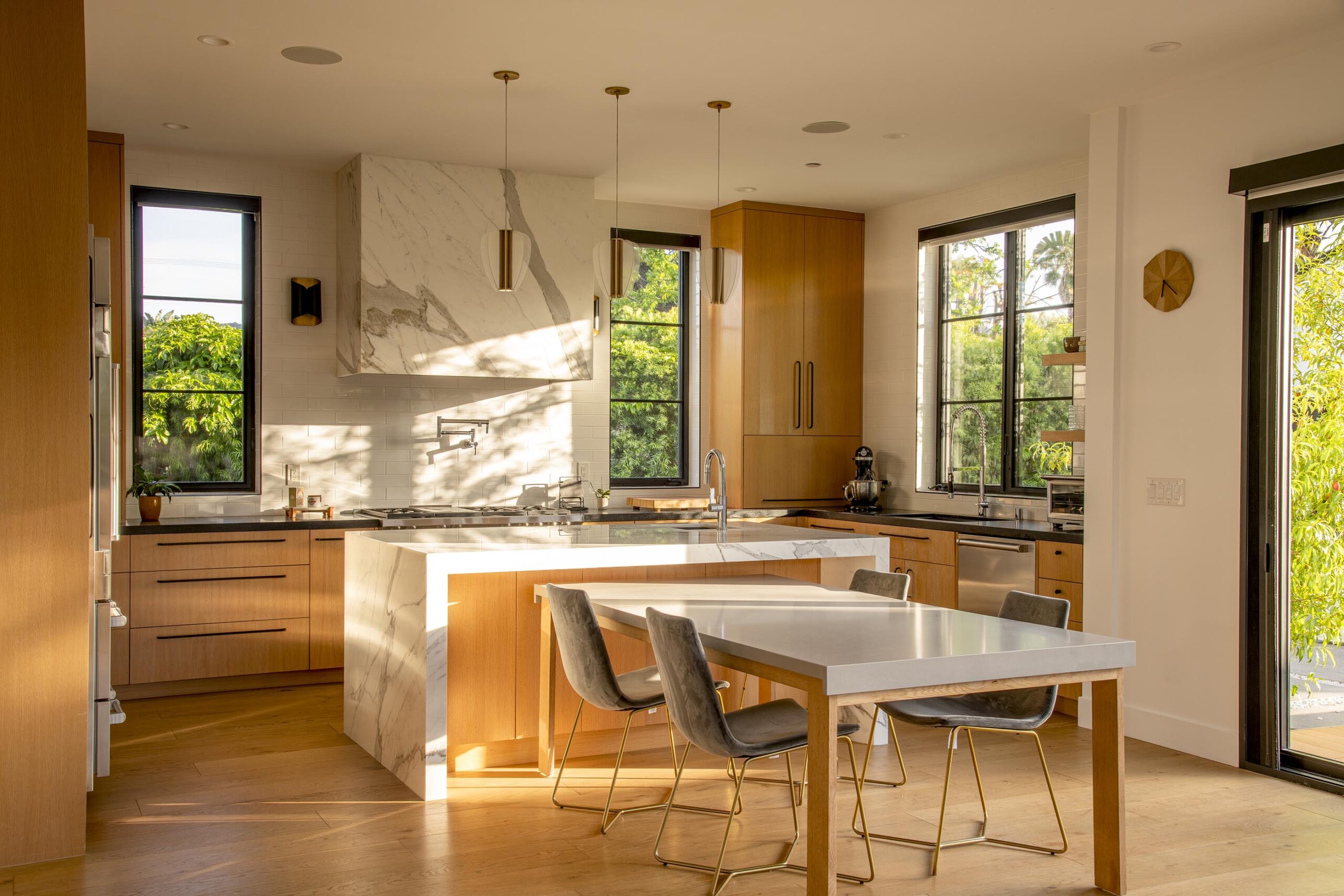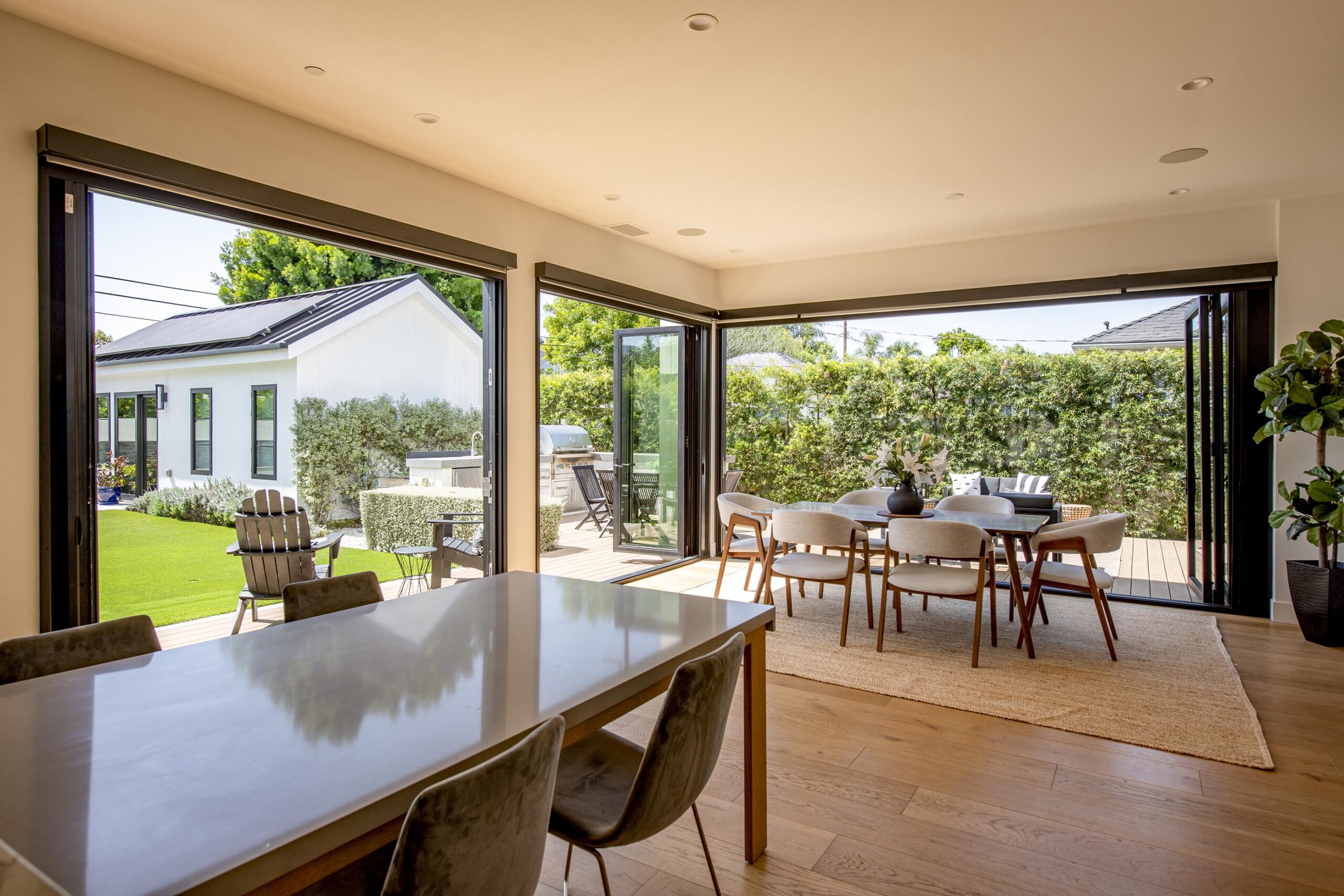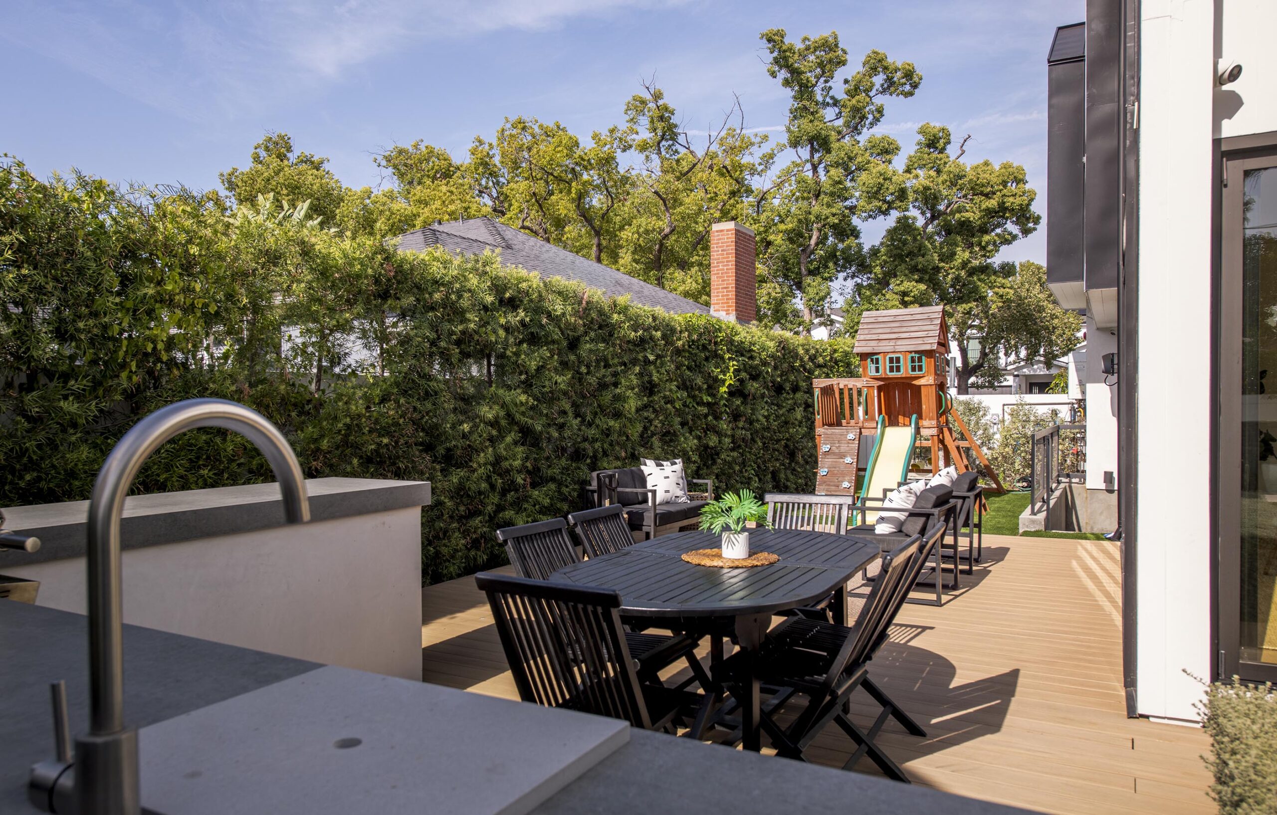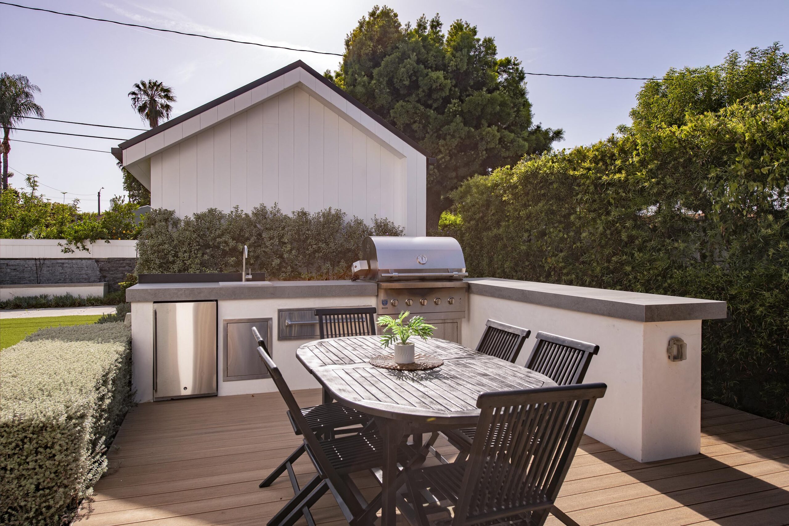 Set on a quiet one-way street in Burbank’s highly coveted Rancho Adjacent neighborhood, this exceptional custom-built new construction offers three levels of meticulously curated design, seamlessly blending refined finishes, advanced smart home technology, and effortless indoor-outdoor living. Spanning 3BD/3.5BA, plus a fully finished basement, two-car garage, and a detached 1BD/1BA ADU, the residence is thoughtfully designed for elevated modern living in a premier location. Beyond the gated driveway a sophisticated entry unfolds into an expansive open-concept main level, where light wood flooring, fluted architectural detailing, and designer lighting establish a warm yet contemporary aesthetic. A built-in office nook and a versatile bonus space, wrapped in distinctive floral wallpaper imported from Sweden, offer a stylish setting for work or creative retreat, all flowing into a grand living room anchored by a sleek bar and a gas fireplace adorned with hand-painted tile. The chef’s kitchen features Sub-Zero appliances, a Wolf range, Statuario Extra marble countertops with waterfall edge, a walk-in pantry, and extensive custom cabinetry. The adjoining dining area is framed by floor-to-ceiling La Cantina sliding doors, creating a seamless transition to the outdoors and an ideal setting for entertaining. A beautifully appointed powder room off of the living room completes the main level. Upstairs, three ensuite bedrooms provide comfort and privacy, including a stunning primary suite featuring a walk-in closet, custom built-ins, and a private balcony with serene backyard views. The spa-inspired primary bath is outfitted with heated floors, soaking tub, Rubinet fixtures, a smart mirror, and Calacatta Bluette marble surfaces. Just off the primary suite, a secondary bedroom offers a built-in hamper, a solar tube that enhances natural light, and an ensuite bath with a double vanity and shower/tub combination. The final bedroom includes a private balcony and a beautifully appointed ensuite with hand-painted tile and a shower/tub combination. All ensuite bedrooms feature high-end bathroom finishes, including Japanese-style smart toilets. The basement is designed for both wellness and leisure, offering a gym, wall-to-wall floor length mirrors, an environmentally controlled wine room, Finnish sauna, and direct access to the backyard. Outdoors, the private grounds are thoughtfully designed for entertaining and relaxation, complete with an outdoor kitchen, expansive deck, lush landscaping with drip irrigation, multiple lounge areas, and a dedicated play space. Enhancing both versatility and value, the detached ADU (233 S Orchard Dr) features a sleek kitchenette with a charming breakfast nook, bedroom and full bathroom, all ideal for guests or rental income. Additional highlights include a two-car garage with dual EV chargers, fully owned solar system, standing seam metal roof, integrated surround sound on the main level and in the primary suite, two Tesla Powerwalls, whole home AprilAire humidifier, top-of-the-line HVAC system, and a comprehensive water filtration system with UV purification. Ideally located near top rated schools, shopping, dining, parks, the studios, Burbank Airport, St Joseph's Hospital, and energy of downtown Burbank, this residence offers a rare combination of architectural sophistication, modern comfort, and exceptional convenience, welcome!