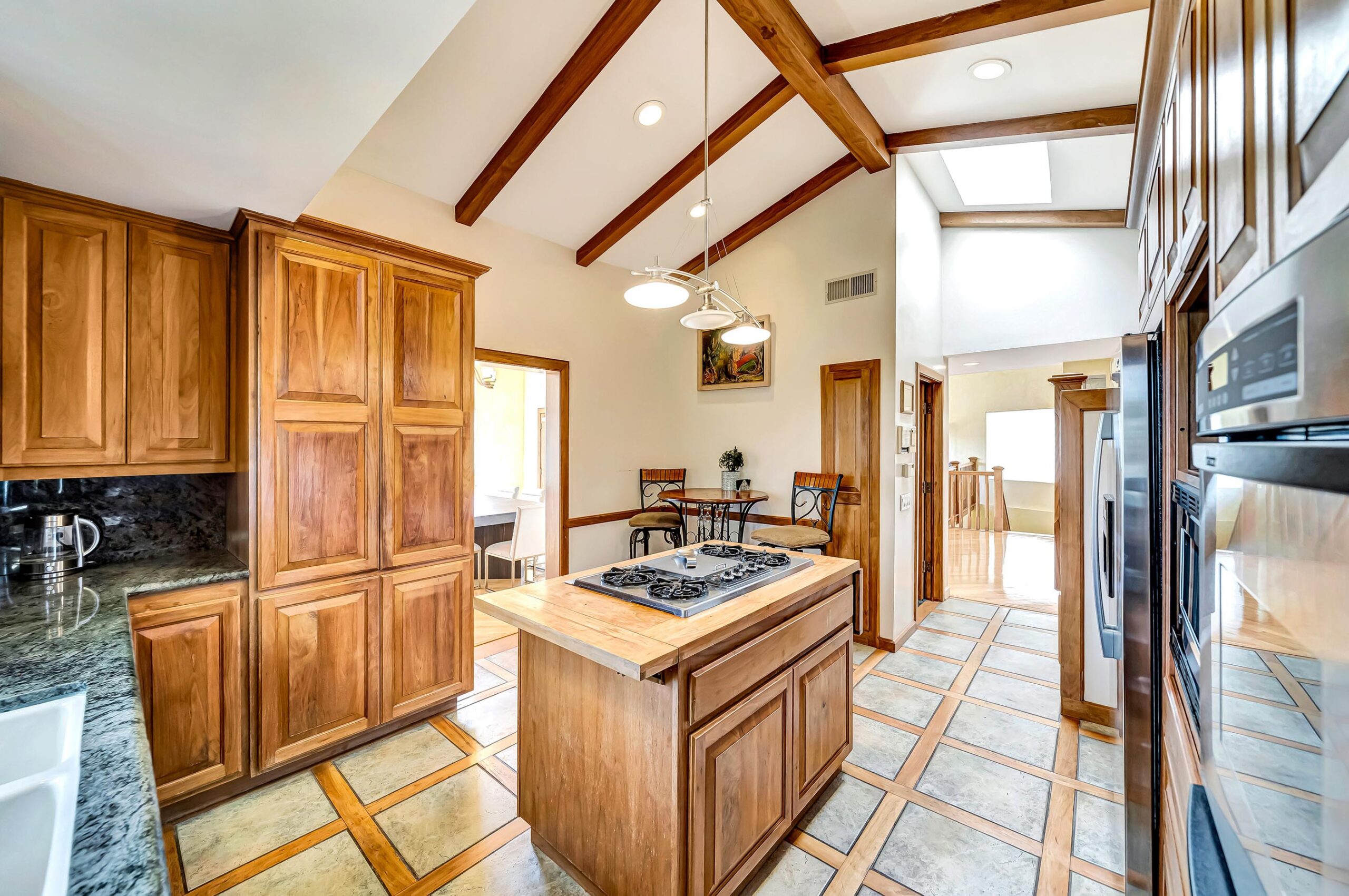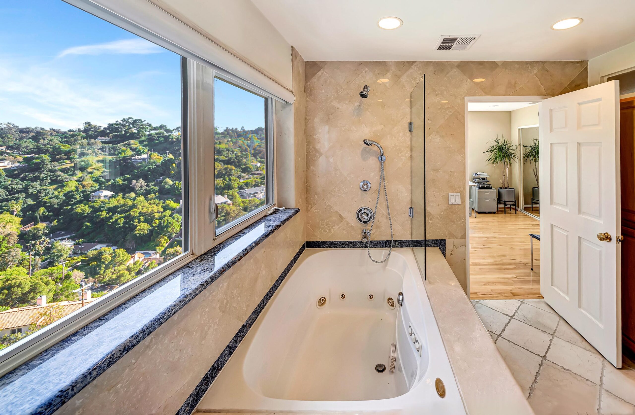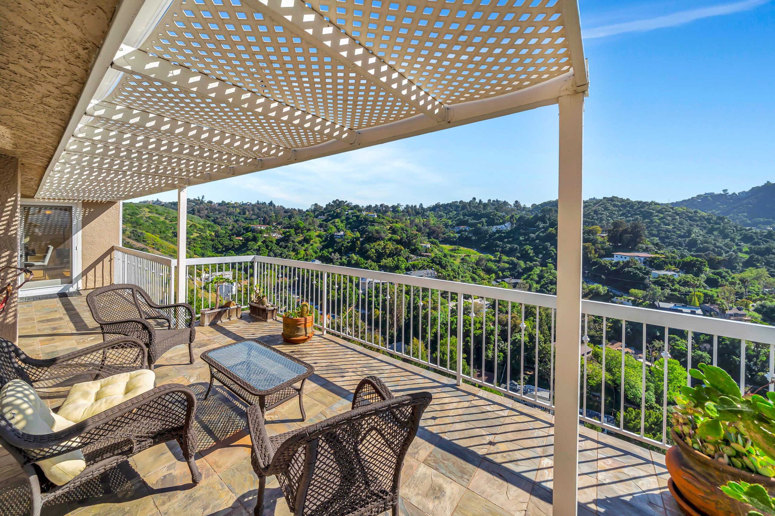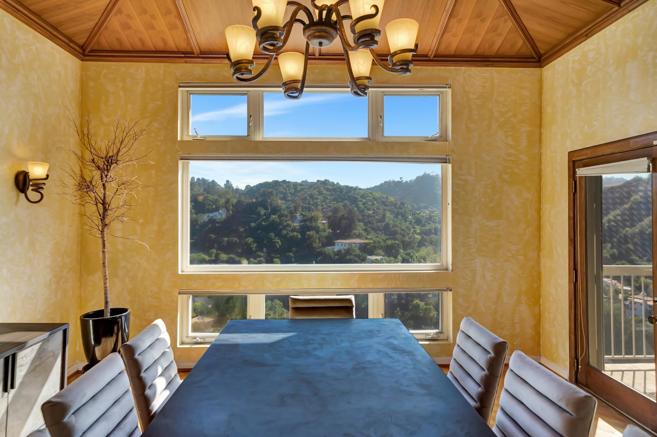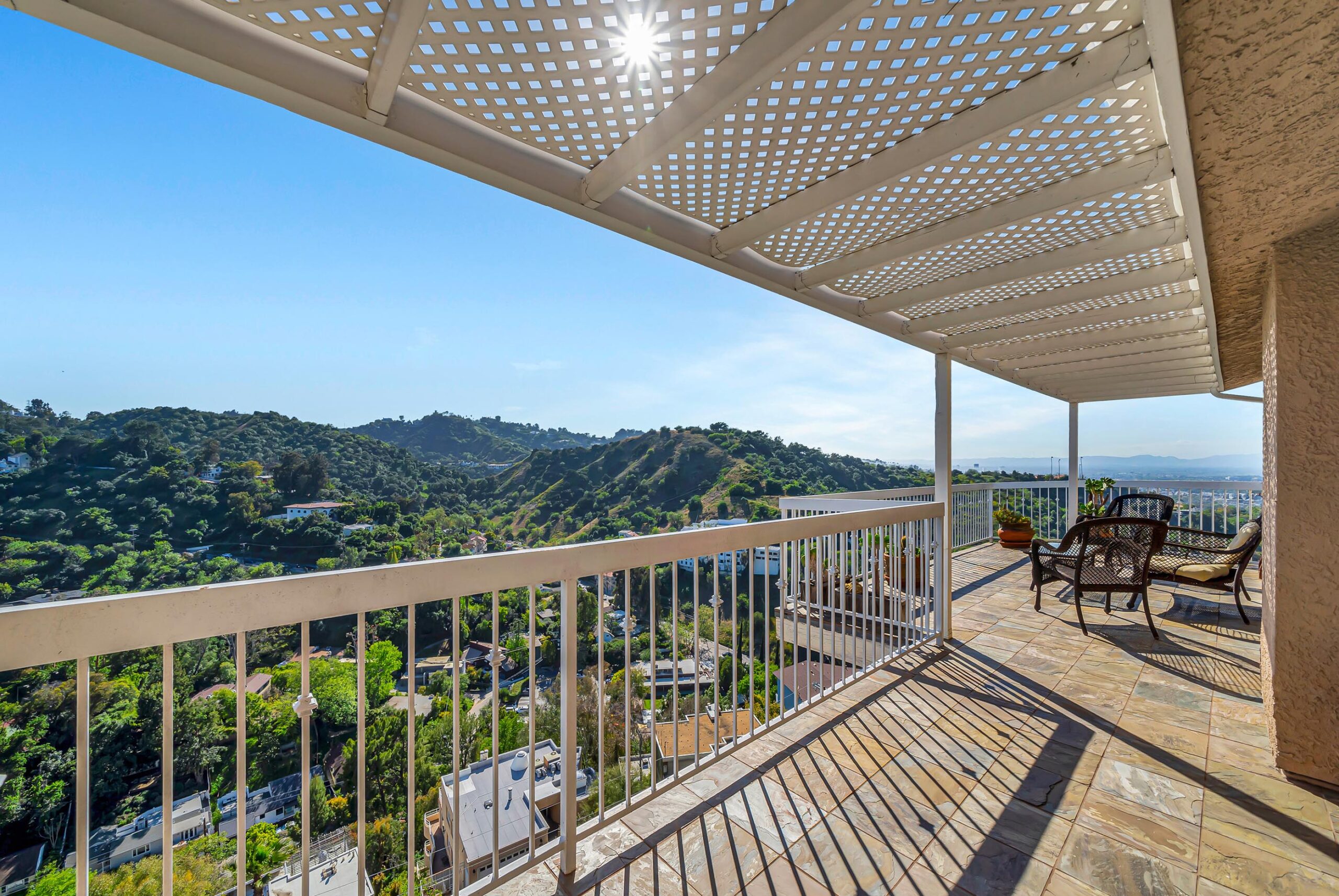 Perched above Ventura Boulevard in the heart of Studio City, this exceptional 4BD/4.5BA residence offers unobstructed panoramic views and a prime location just minutes from the Shops at Sportsmen's Lodge and Beverly Hills. The main level is designed for entertaining, featuring expansive living spaces, a large balcony, game room, and a formal dining area accented by stunning wood detailing. The chef's kitchen is equipped with high-end appliances, custom cabinetry and a large center island. The primary suite is a true retreat, complete with a spacious soaking tub framed by a picture window that captures the breathtaking views. Throughout the home maple wood floors add warmth and sophistication, while balconies on every level provide seamless indoor-outdoor living. The third level functions as a private guest suite, complete with its own kitchenette, bathroom, bedroom, balcony, and separate entrance, ideal for guests, extended family, or added flexibility. Situated within the Dixie Canyon Community school district, this remarkable property delivers the perfect blend of peaceful hillside living and effortless access to the best of Los Angeles.