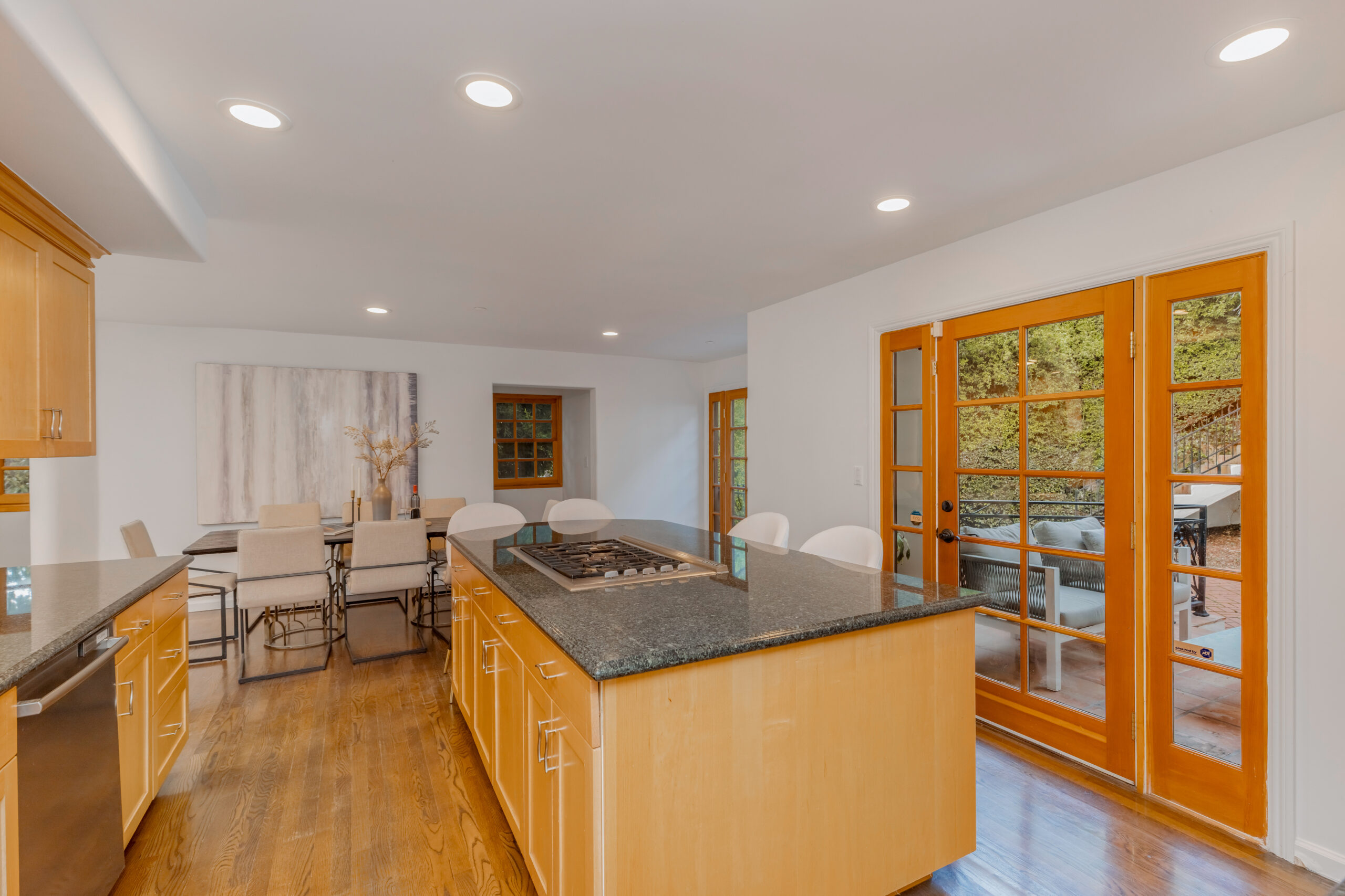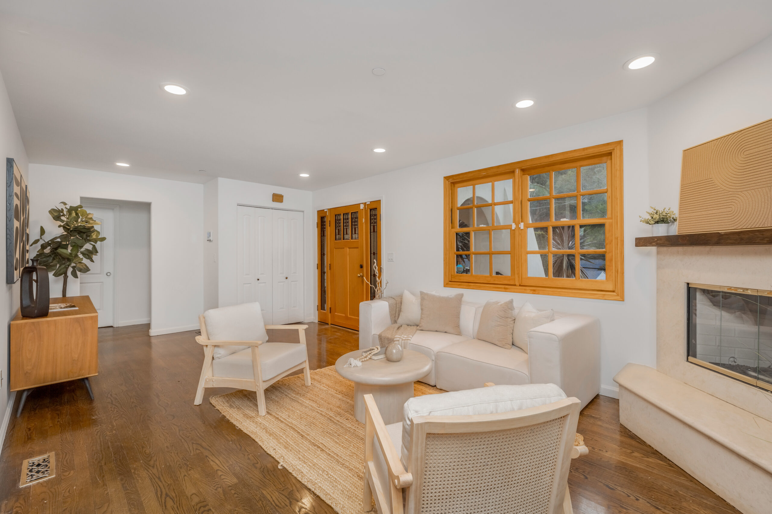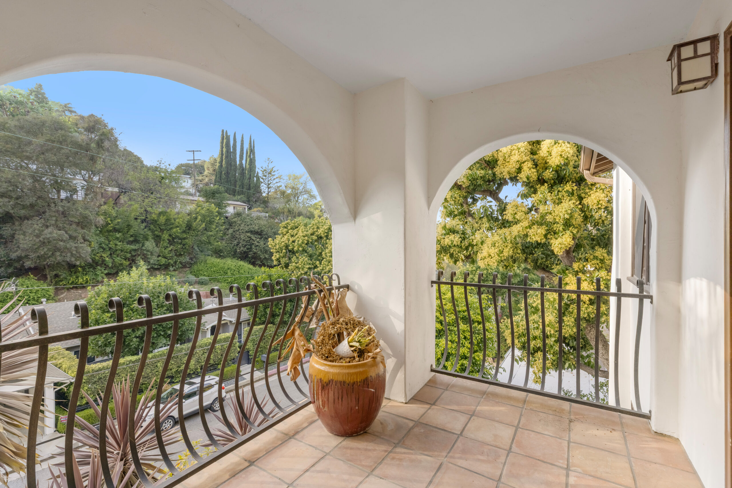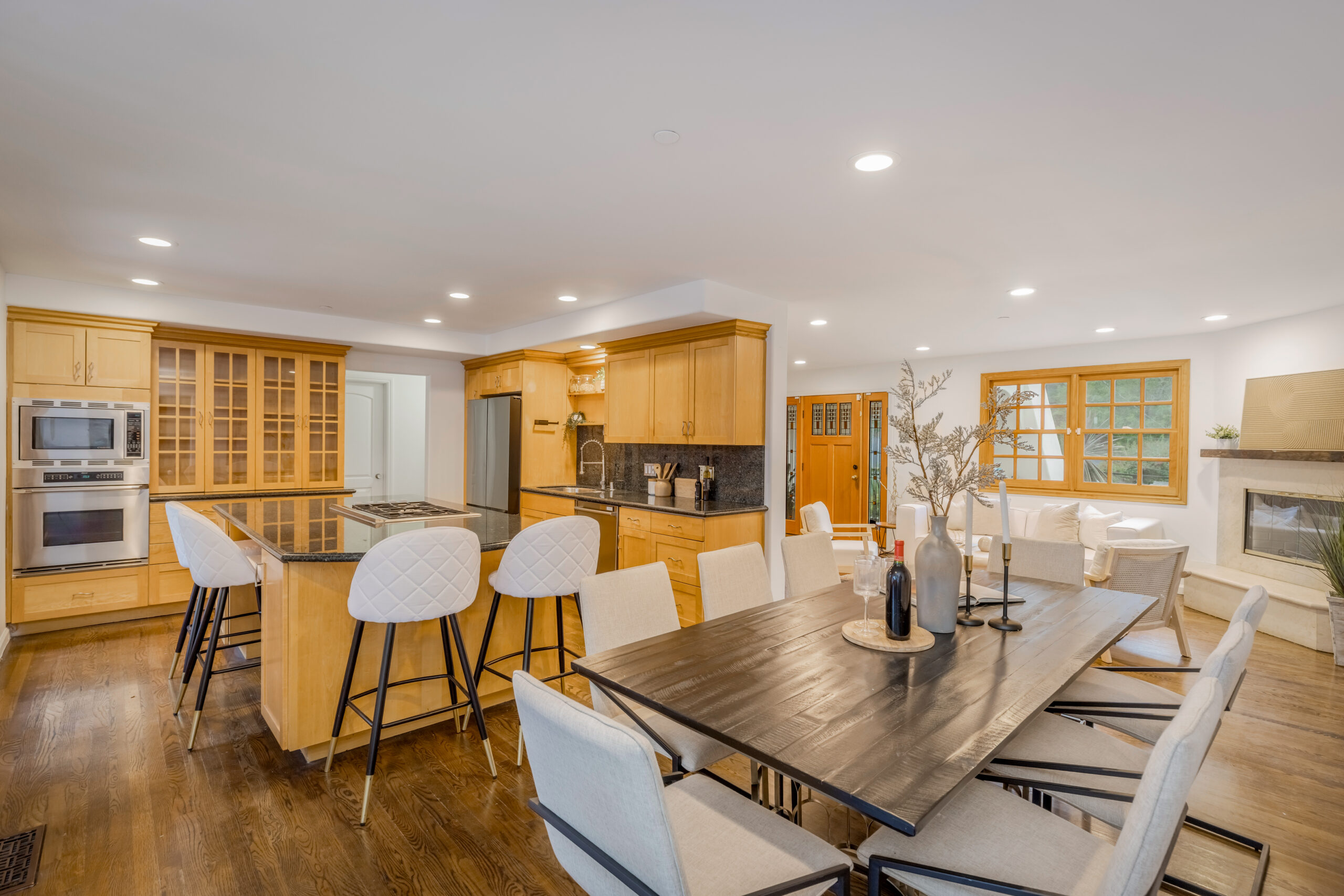 Introducing a striking 4BD/5BA residence with a detached 1BD/1BA guest house, ideally located South of the Boulevard in Sherman Oaks. Spanning over 3,100 square feet of living space, this entertainer's home features seamlessly connected living areas, beautiful treetop views, and a thoughtfully designed layout. A double-door entry with craftsman-style windows opens to a sunlit living room with a corner fireplace, flowing seamlessly into the dining area, perfect for entertaining. The chef's kitchen is equipped with a generous center island with a breakfast bar, sparkling countertops, glass-front cabinetry, and direct backyard access for effortless indoor-outdoor living. The main level includes two spacious bedrooms and two baths each with an enclosed step-in shower. Upstairs, the primary suite offers a private retreat with a fireplace, balcony, walk-in closet, and spa-inspired ensuite featuring an oversized soaking tub, expansive glass shower, and dual vanities. An additional bedroom with an ensuite bath completes the upper level. A detached one-bedroom guest house with a private bath adds flexibility for a home office, creative space, or in-law suite. Additional highlights include a bonus room with a separate entrance, ideal as an entertainment room or additional guest suite, as well as multiple outdoor terraces and large balconies ideal for entertaining. Situated within the highly sought-after Dixie Canyon Elementary School district and moments from the shopping and dining along Ventura Boulevard, this exceptional home offers elevated living in a prime location.