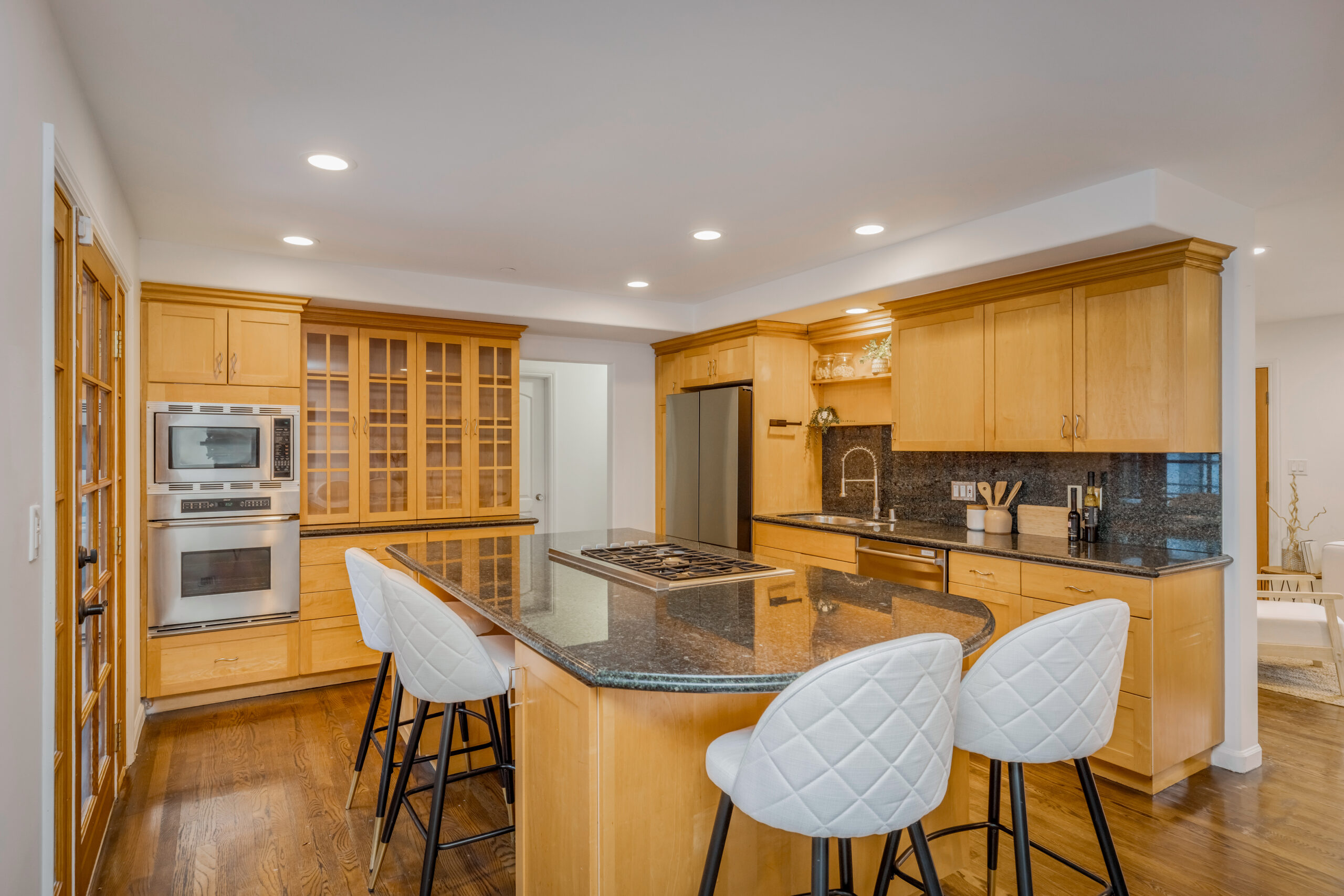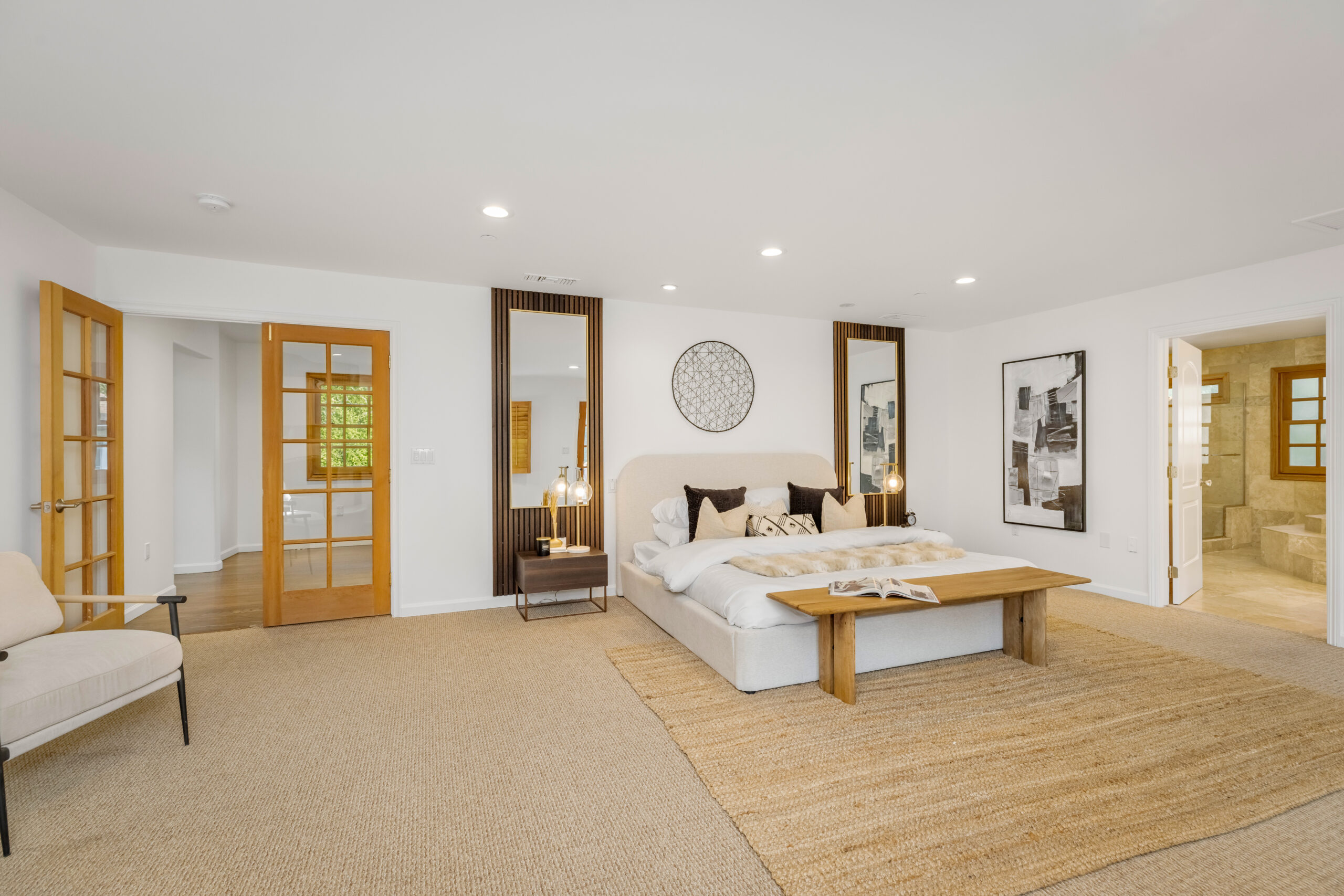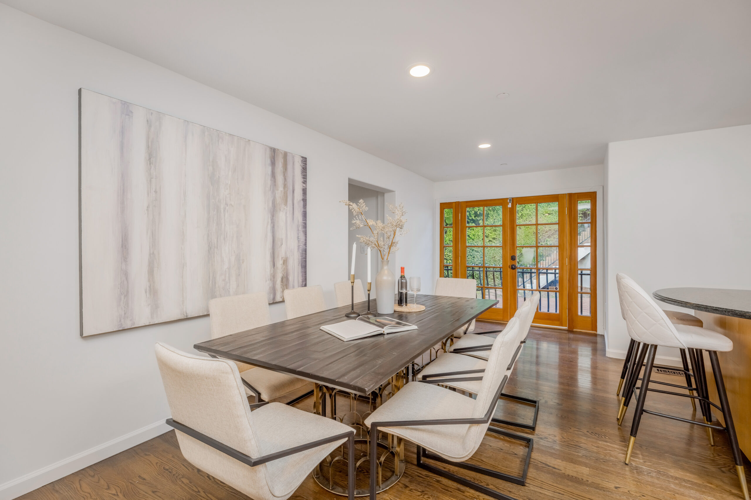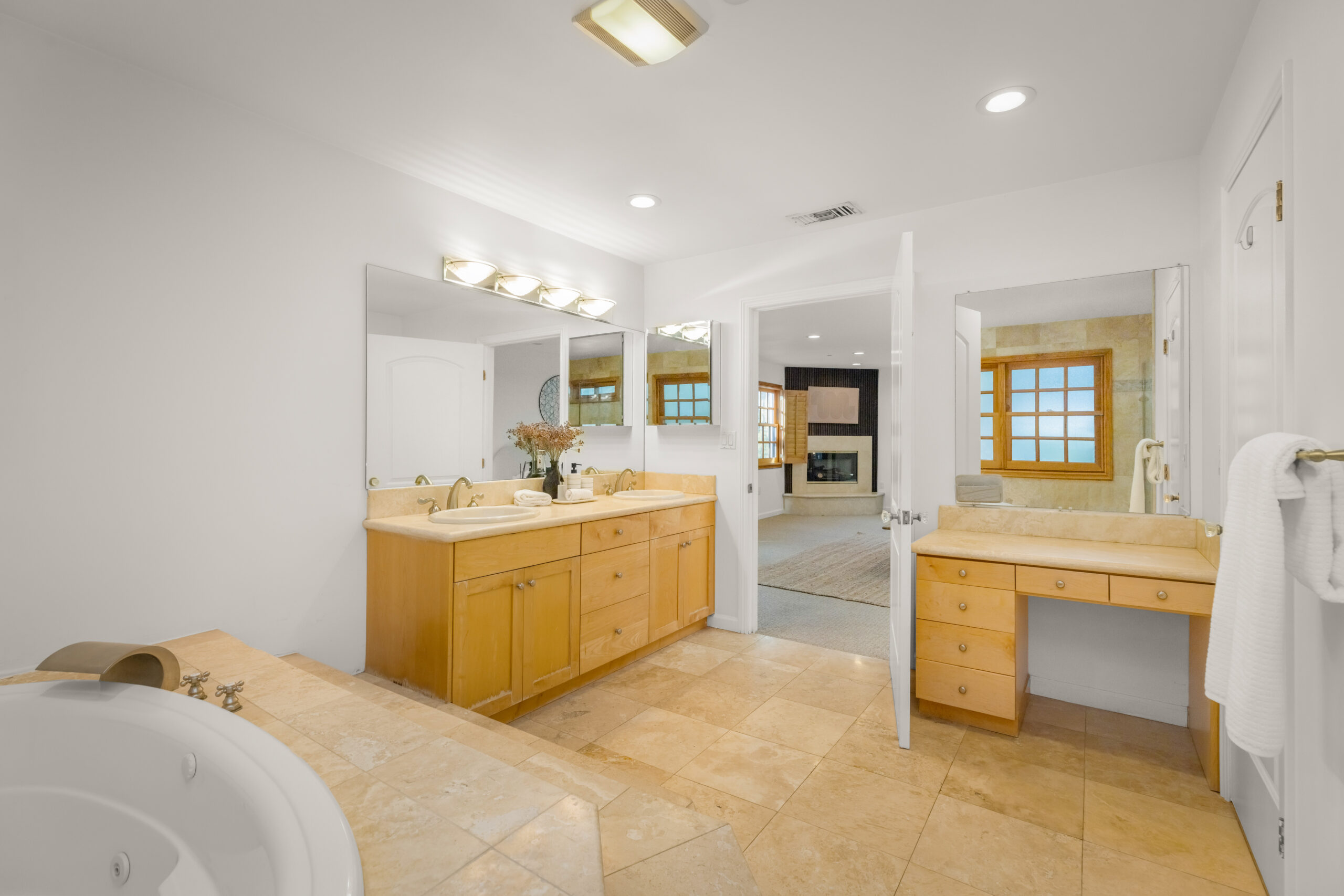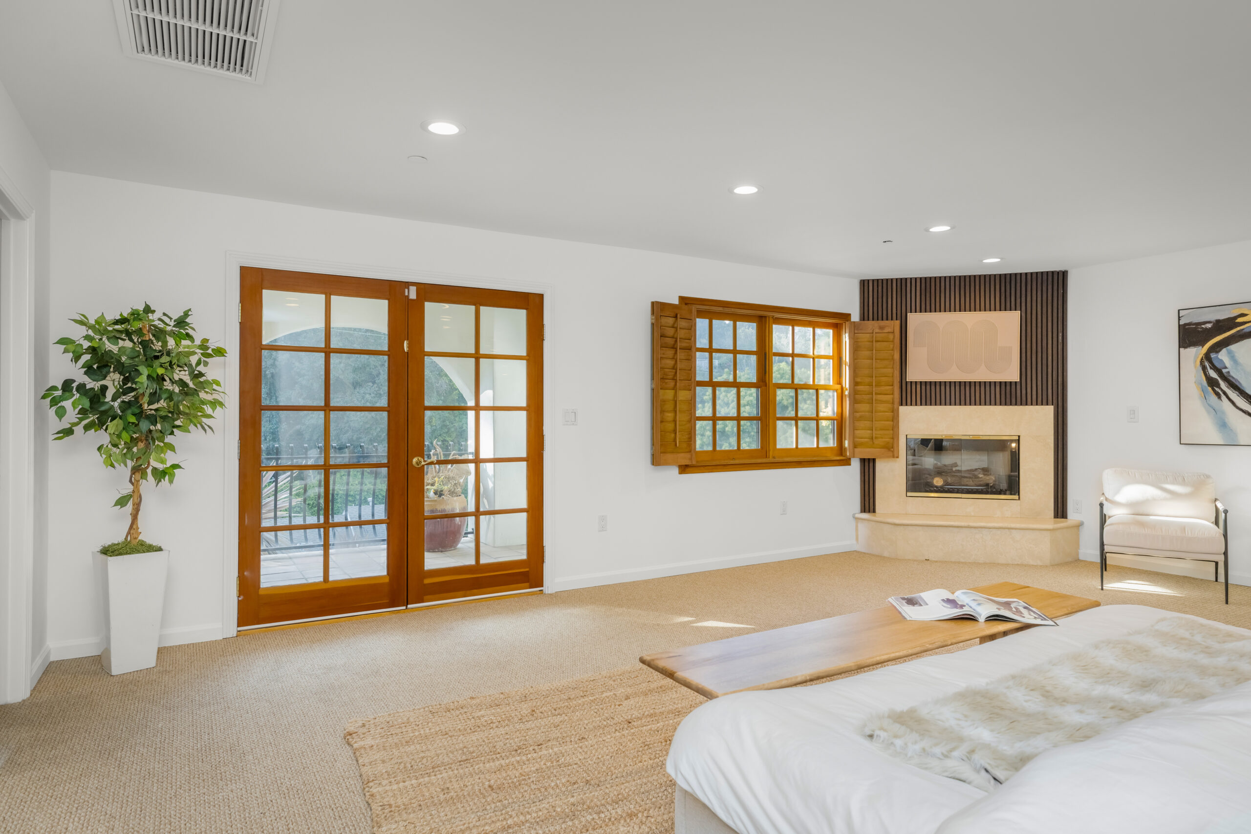 Introducing a striking 4BD/5BA residence with a detached 1BD/1BA guest house, ideally located South of the Boulevard in Sherman Oaks. Spanning over 3,100 square feet of living space, this entertainer's home features seamlessly connected living areas, beautiful treetop views, and a thoughtfully designed layout. A double-door entry with craftsman-style windows opens to a sunlit living room with a corner fireplace, flowing seamlessly into the dining area, perfect for entertaining. The chef's kitchen is equipped with a generous center island with a breakfast bar, sparkling countertops, glass-front cabinetry, and direct backyard access for effortless indoor-outdoor living. The main level includes two spacious bedrooms and two baths each with an enclosed step-in shower. Upstairs, the primary suite offers a private retreat with a fireplace, balcony, walk-in closet, and spa-inspired ensuite featuring an oversized soaking tub, expansive glass shower, and dual vanities. An additional bedroom with an ensuite bath completes the upper level. A detached one-bedroom guest house with a private bath adds flexibility for a home office, creative space, or in-law suite. Additional highlights include a bonus room with a separate entrance, ideal as an entertainment room or additional guest suite, as well as multiple outdoor terraces and large balconies ideal for entertaining. Situated within the highly sought-after Dixie Canyon Elementary School district and moments from the shopping and dining along Ventura Boulevard, this exceptional home offers elevated living in a prime location.