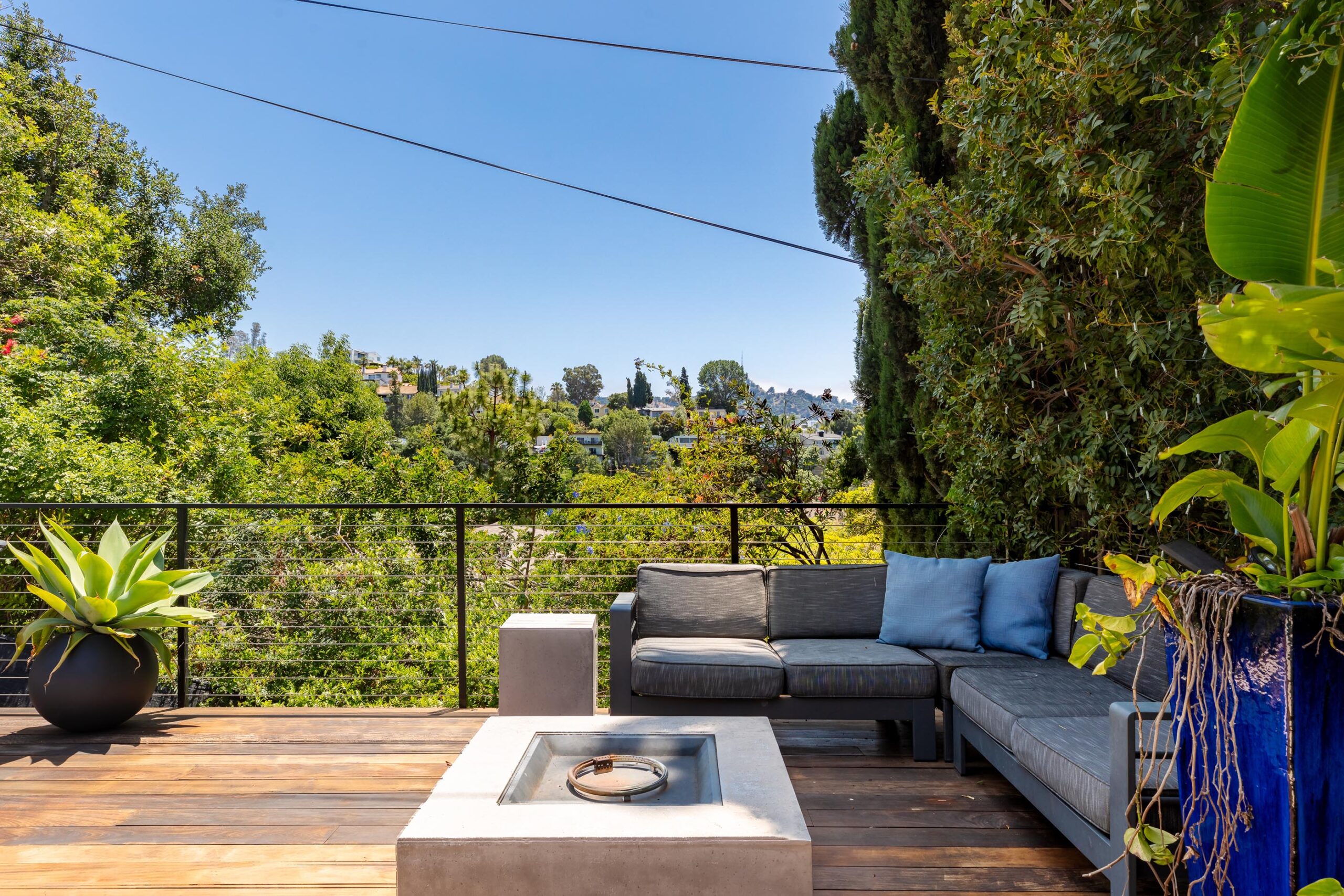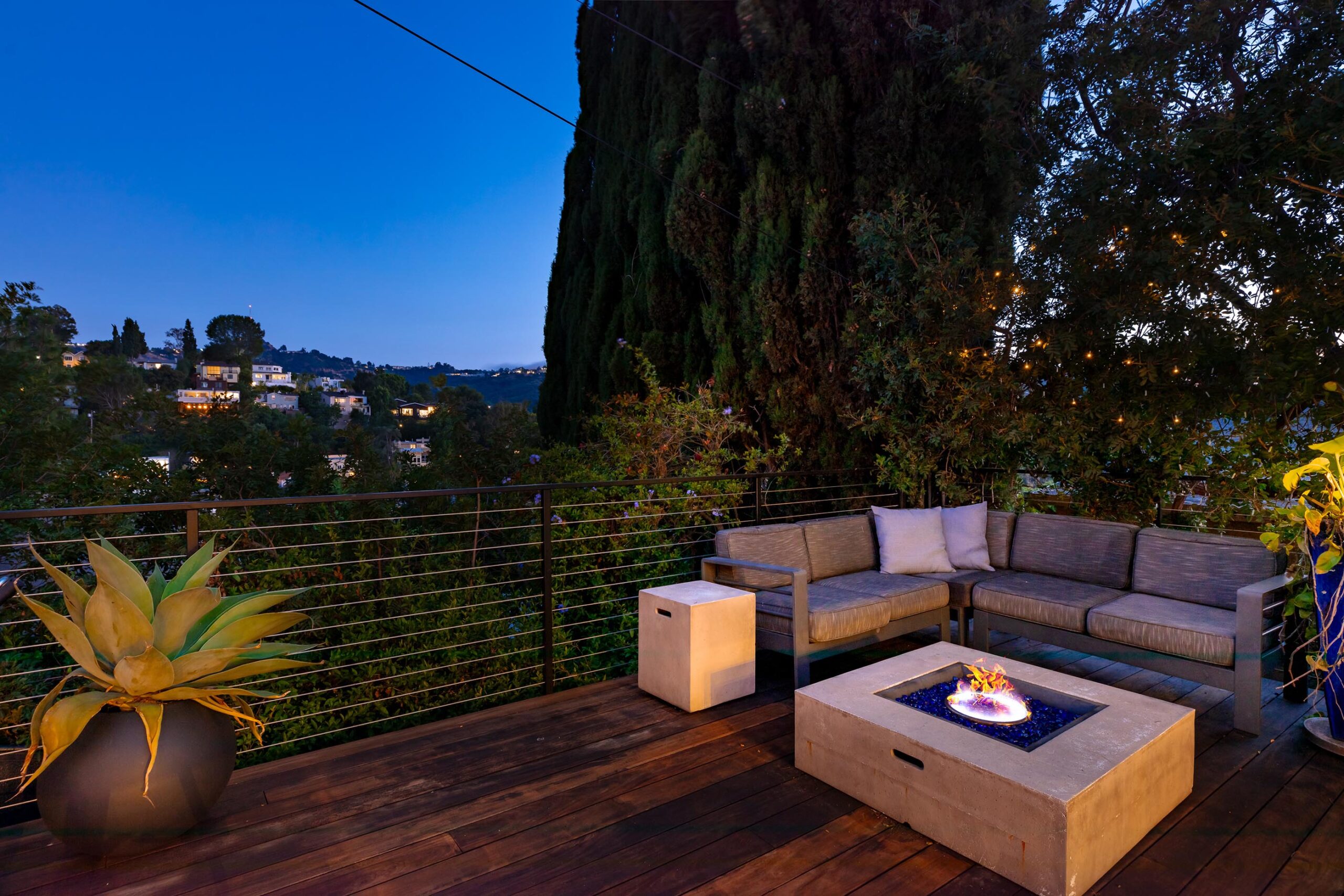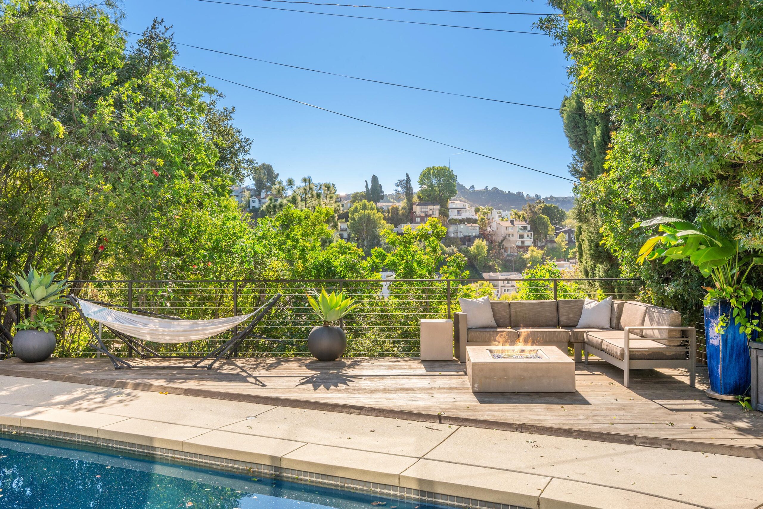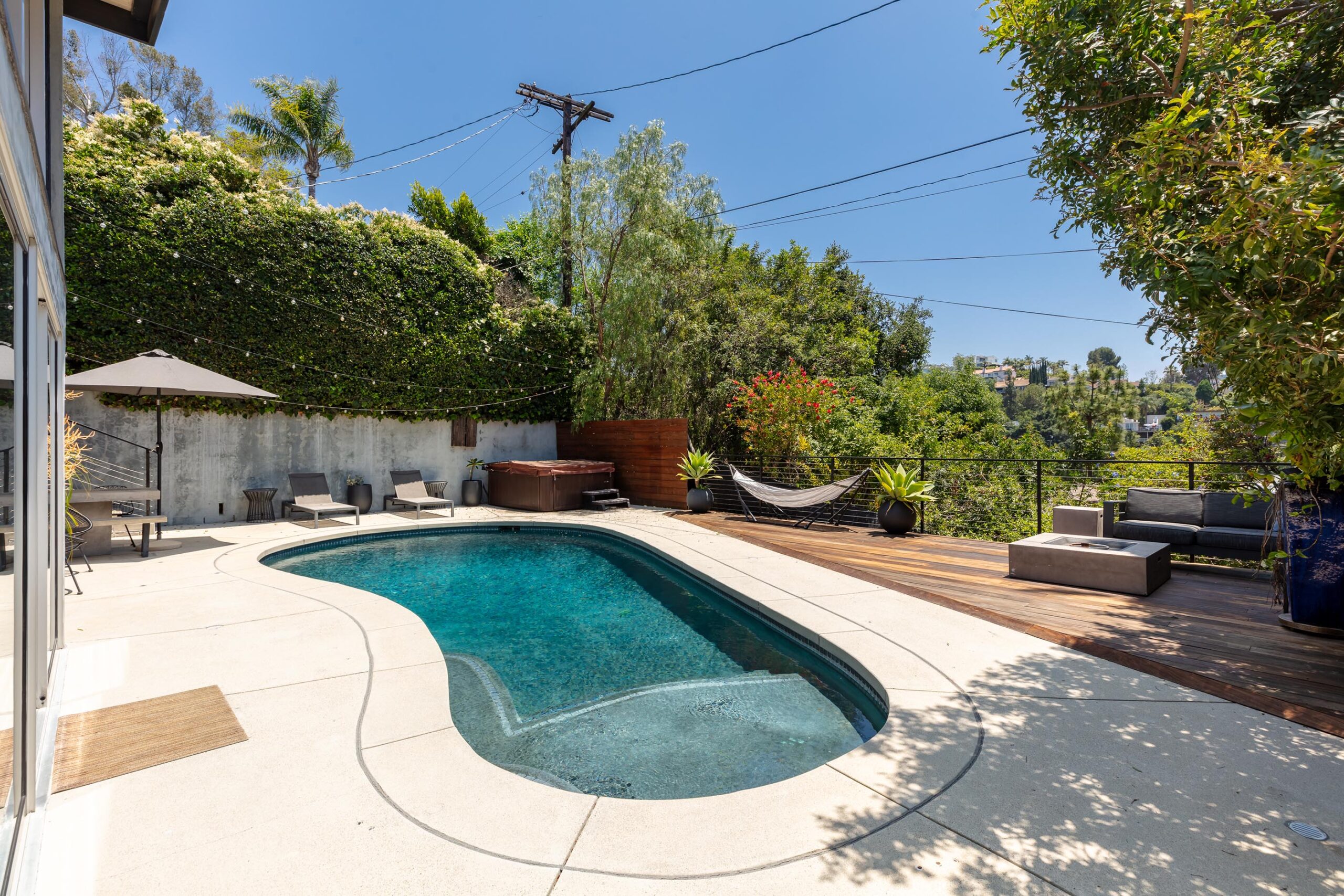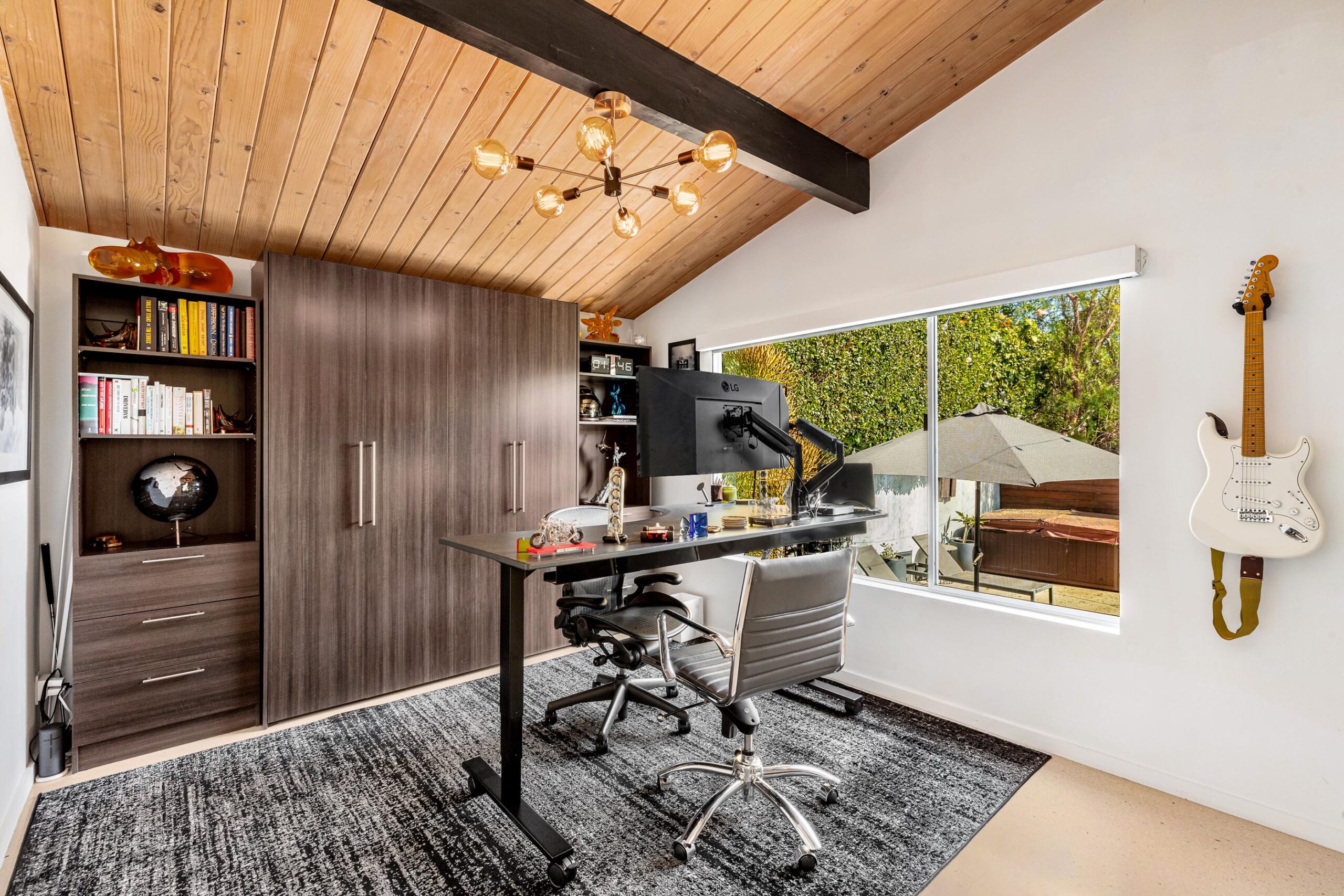 Introducing a mid-century modern residence nestled in the hills above Studio City, offering breathtaking vistas of the mountains and valley. This home is expertly crafted to provide the ultimate luxury living experience. Enter through the grand double door entry to find an open-concept floor plan with natural light pouring in from every angle.Custom poured terrazzo floors and 19-foot exposed beam ceilings add to the home's charm. The living room, with its floor-to-ceiling windows, perfectly frames the incredible views. The spacious dining room featuring a dual-sided fireplace, is ideal for gatherings of friends and family. The custom Pedini kitchen is a chef's dream, complete with high-end Jenn-Air appliances and a large quartz center island, seamlessly connecting to the family room, which also features floor-to-ceiling windows and a sliding door leading to the backyard patio perfect for al fresco dining. The primary suite is a true masterpiece, featuring an oversized picture window, a TV that disappears into the ceiling, blackout blinds, a custom closet, and a spa-like bath with a steam shower, stone soaking tub, and a Toto smart toilet. The two additional bedrooms also have true blackout blinds within-wall channels for complete darkness, custom closets, and share the second full bathroom. The entertainer's backyard is outfitted with a heated salt-water pool, jacuzzi, and fire pit, all while offering captivating views. Designed with integrated smart home technology, the residence includes a Lutron Caseta voice-controlled lighting system, Sonos sound system, Ring security system, whole-home Pelican water softening system, and a fully owned solar energy system for value enhancement and cost savings. Situated just moments from all the dining and shopping along Ventura Blvd and located in the esteemed Carpenter Elementary school district, this home offers a lifestyle you've always dreamed of. Don't miss the opportunity to make it yours.