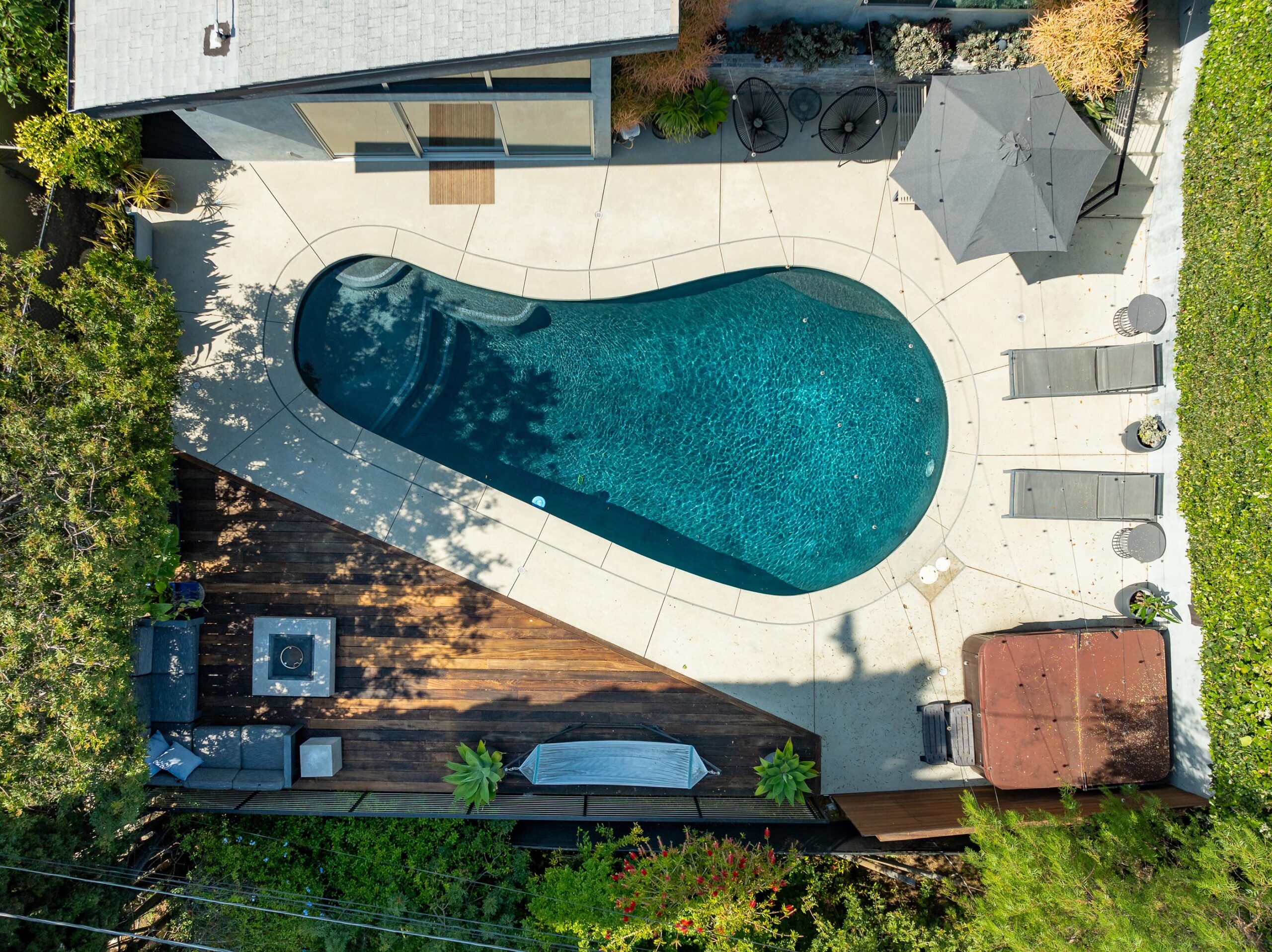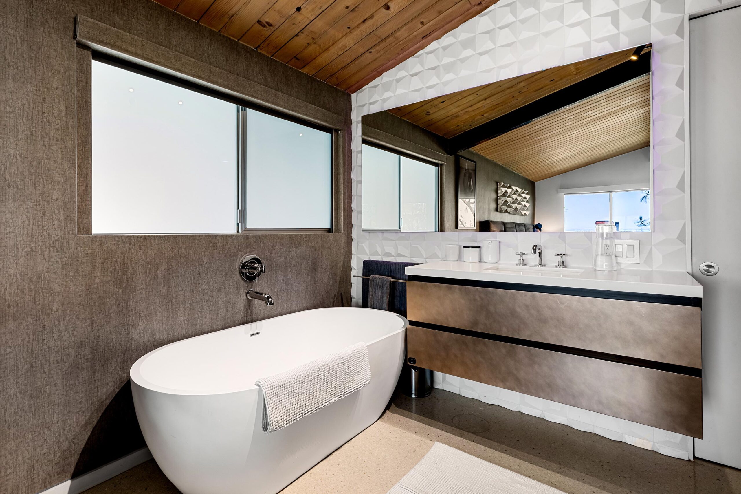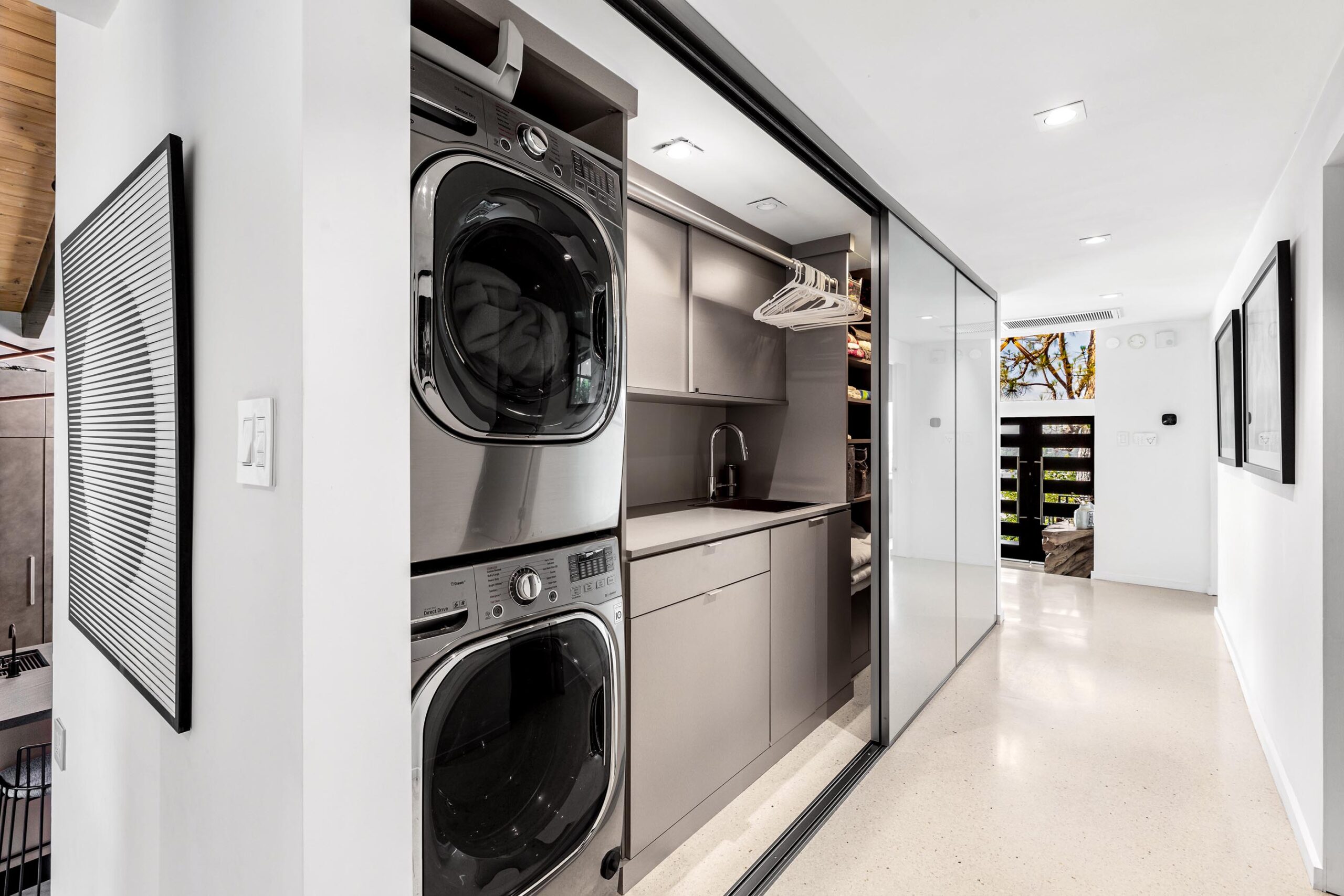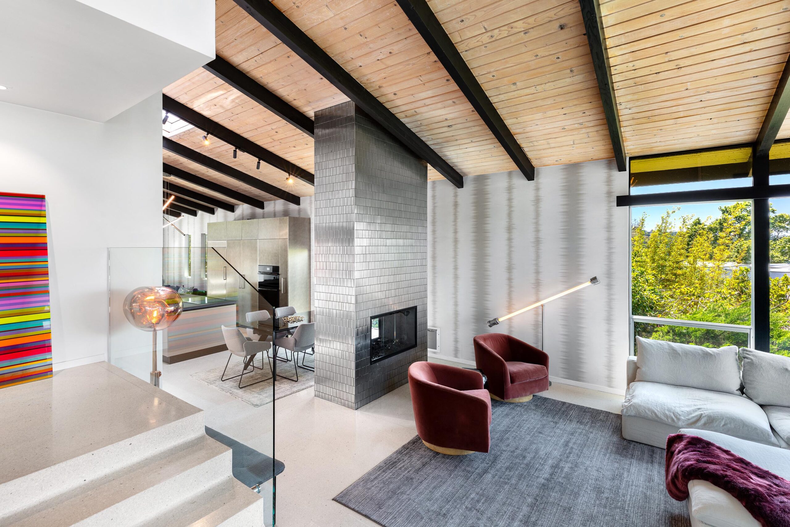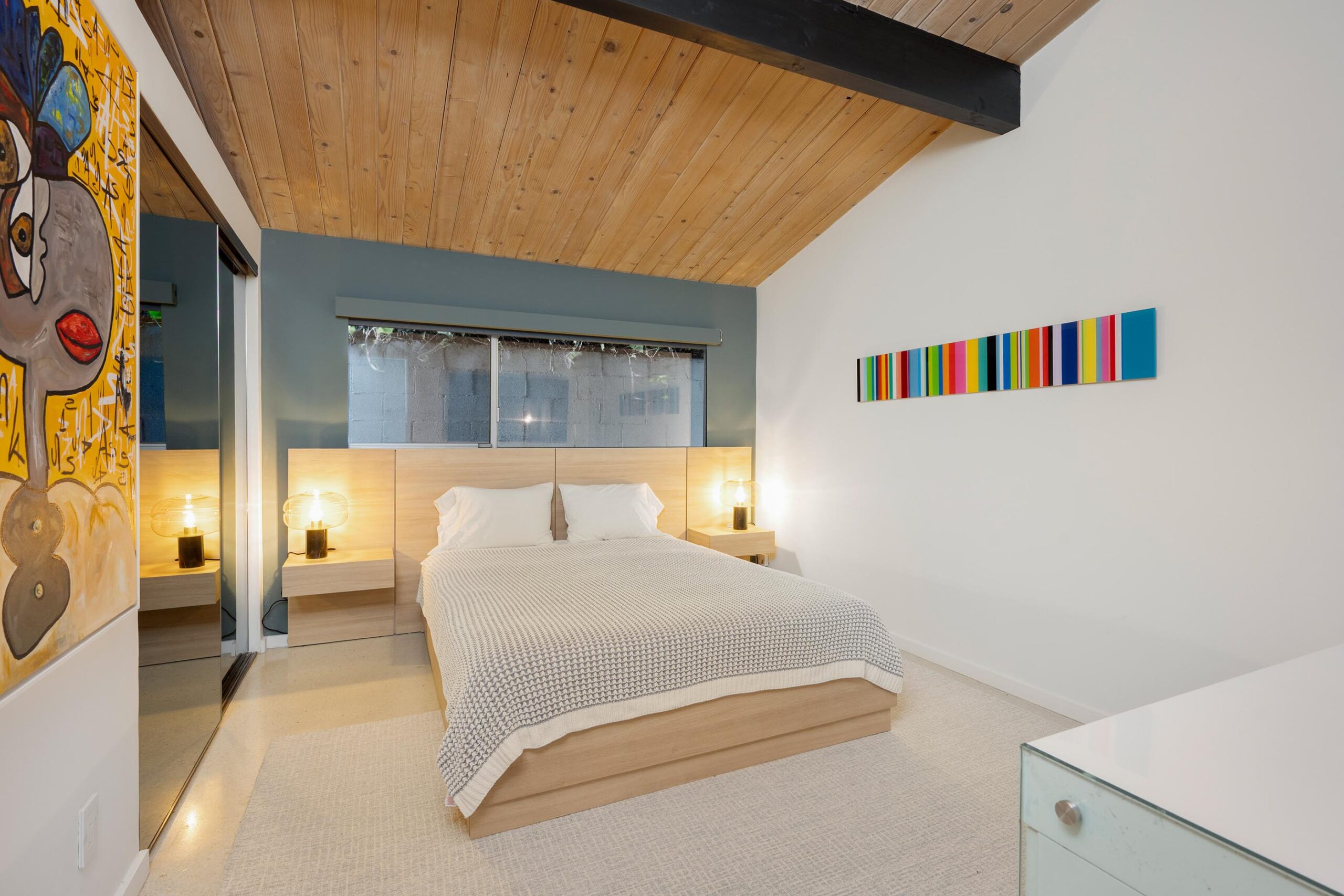 Introducing a mid-century modern residence nestled in the hills above Studio City, offering breathtaking vistas of the mountains and valley. This home is expertly crafted to provide the ultimate luxury living experience. Enter through the grand double door entry to find an open-concept floor plan with natural light pouring in from every angle.Custom poured terrazzo floors and 19-foot exposed beam ceilings add to the home's charm. The living room, with its floor-to-ceiling windows, perfectly frames the incredible views. The spacious dining room featuring a dual-sided fireplace, is ideal for gatherings of friends and family. The custom Pedini kitchen is a chef's dream, complete with high-end Jenn-Air appliances and a large quartz center island, seamlessly connecting to the family room, which also features floor-to-ceiling windows and a sliding door leading to the backyard patio perfect for al fresco dining. The primary suite is a true masterpiece, featuring an oversized picture window, a TV that disappears into the ceiling, blackout blinds, a custom closet, and a spa-like bath with a steam shower, stone soaking tub, and a Toto smart toilet. The two additional bedrooms also have true blackout blinds within-wall channels for complete darkness, custom closets, and share the second full bathroom. The entertainer's backyard is outfitted with a heated salt-water pool, jacuzzi, and fire pit, all while offering captivating views. Designed with integrated smart home technology, the residence includes a Lutron Caseta voice-controlled lighting system, Sonos sound system, Ring security system, whole-home Pelican water softening system, and a fully owned solar energy system for value enhancement and cost savings. Situated just moments from all the dining and shopping along Ventura Blvd and located in the esteemed Carpenter Elementary school district, this home offers a lifestyle you've always dreamed of. Don't miss the opportunity to make it yours.