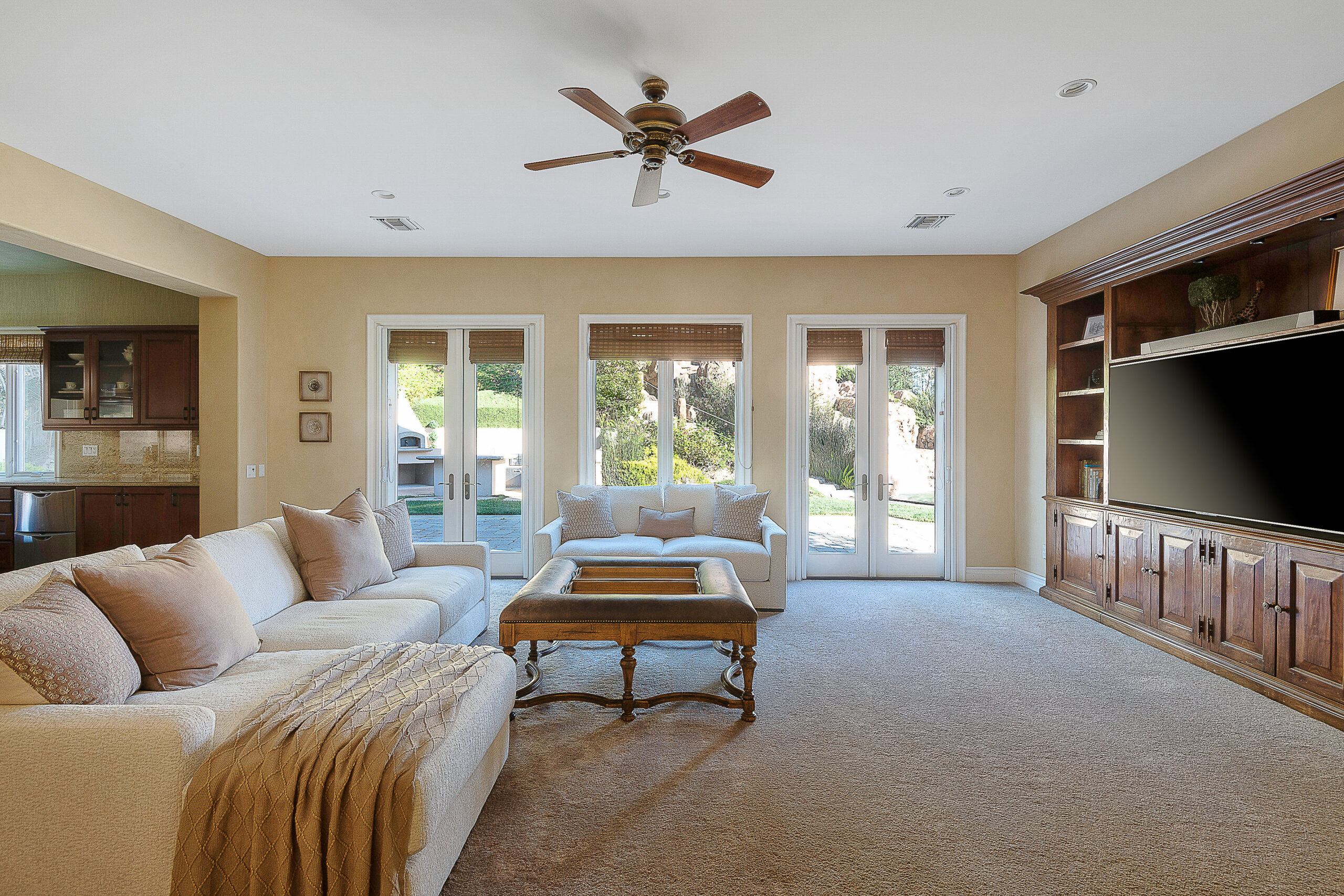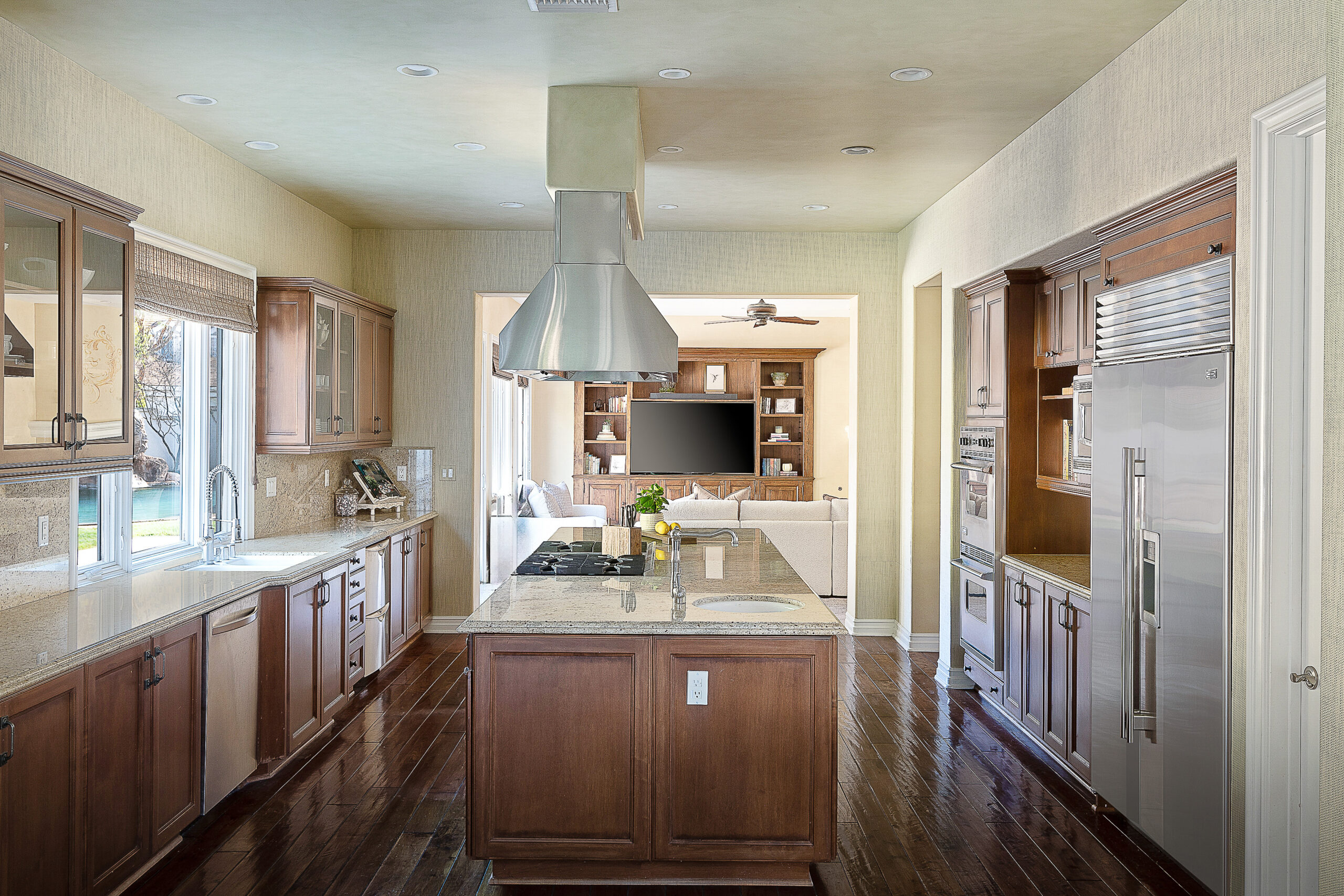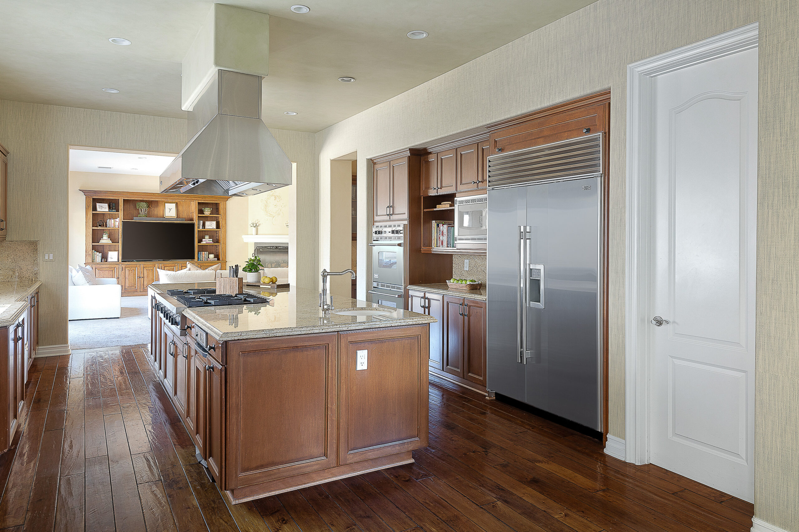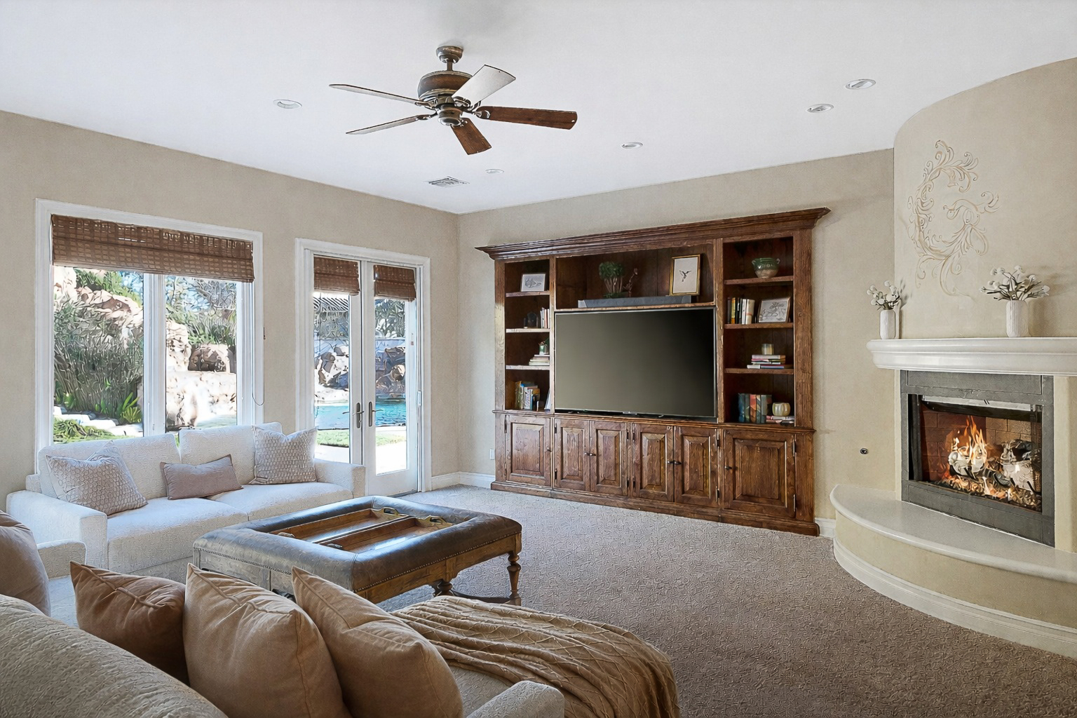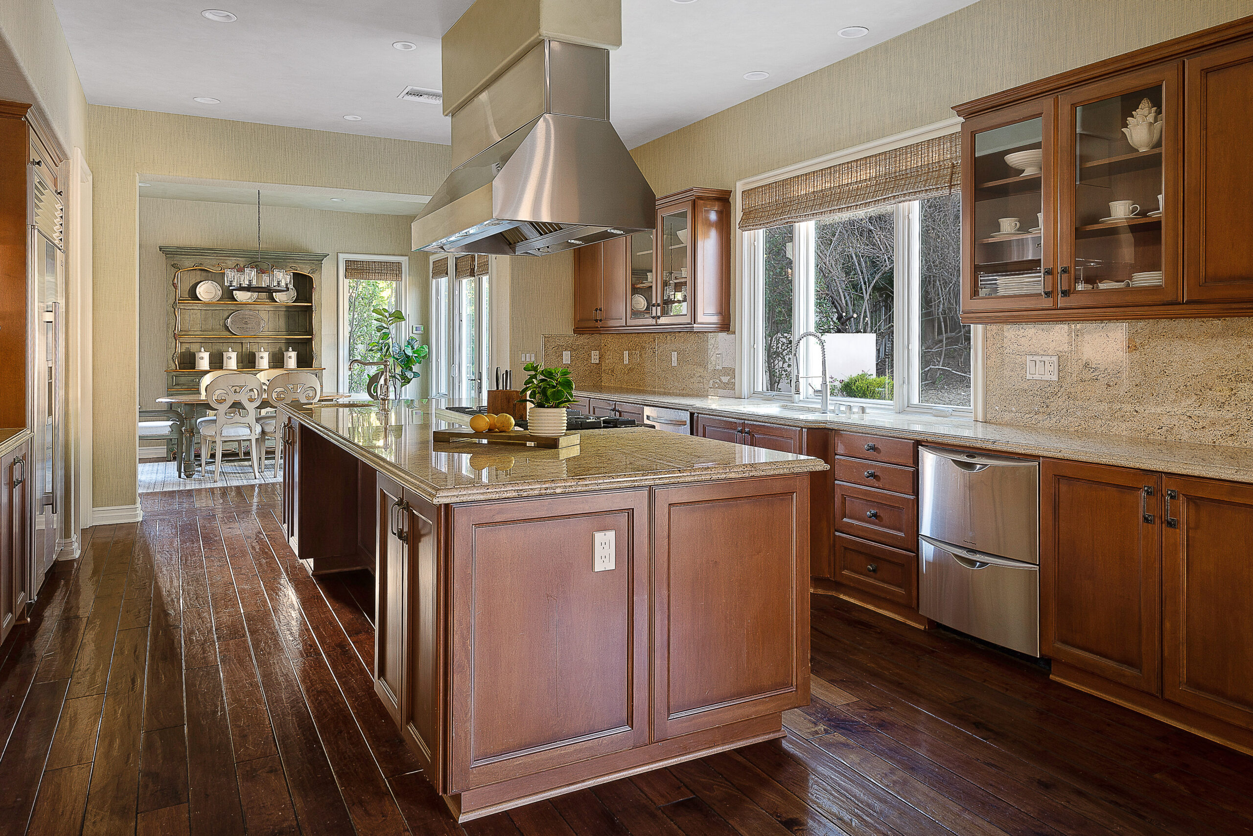 Located behind the iconic guard gates of The Oaks of Calabasas, this estate sits on a rare double cul-de-sac on an approximately 20,000 sq ft corner lot, offering exceptional seclusion. The residence spans approximately 6,255 sq ft and is designed for seamless indoor-outdoor living. The home features a grand foyer with soaring ceilings, solid hardwood floors, and a sweeping staircase. Multiple formal and informal living spaces flow around a private interior courtyard, creating an efficient and functional layout for everyday living, entertaining and relaxing. The residence offers 5 en-suite bedrooms, 4 upstairs and 1 downstairs. The primary suite was designed as a luxurious private sanctuary complimented by a spa-inspired his-and-her bathroom featuring separate toilets and a bidet, dual vanities, oversized soaking spa tub, walk-in closet, private gym, enclosed office space, and peaceful views. Additionally Upstairs, 3 en-suite bedrooms surround a large bonus room ideal for children's own play space or movie watching with friends. At the heart of the home is the chef's kitchen and breakfast nook opening directly to the family room to serve as the central gathering place. This open-concept design features professional-grade Viking appliances, a Sub-Zero refrigerator with ice and water dispenser, 3 dishwashers, custom cabinetry, a butler's pantry, 2 walk-in pantries, and an oversized island with vegetable sink. The backyard is a true showpiece. Designed for resort-style enjoyment the grounds feature a built-in BBQ, stovetop burners, a real wood-burning pizza oven imported from Italy, dramatic rockscape, beach-entry pool and spa with cascading waterfalls and waterslide, expansive patio areas, and lush landscaping. Completing the estate include two garages, rooftop solar panel system, EV-charger, tankless water heater, 4 independent A/C units, whole-house central vacuum system, French doors with Phantom screens and plantation shutters. Residents enjoy exclusive 24-hour guard-gated security and access to The Oaks' amenities, including a clubhouse, fitness center, tennis and pickleball courts, sport courts for basketball, and an Olympic-size community pool. The home is minutes from The Commons at Calabasas offering premier dining and shopping, top-rated schools and scenic & hiking trails.