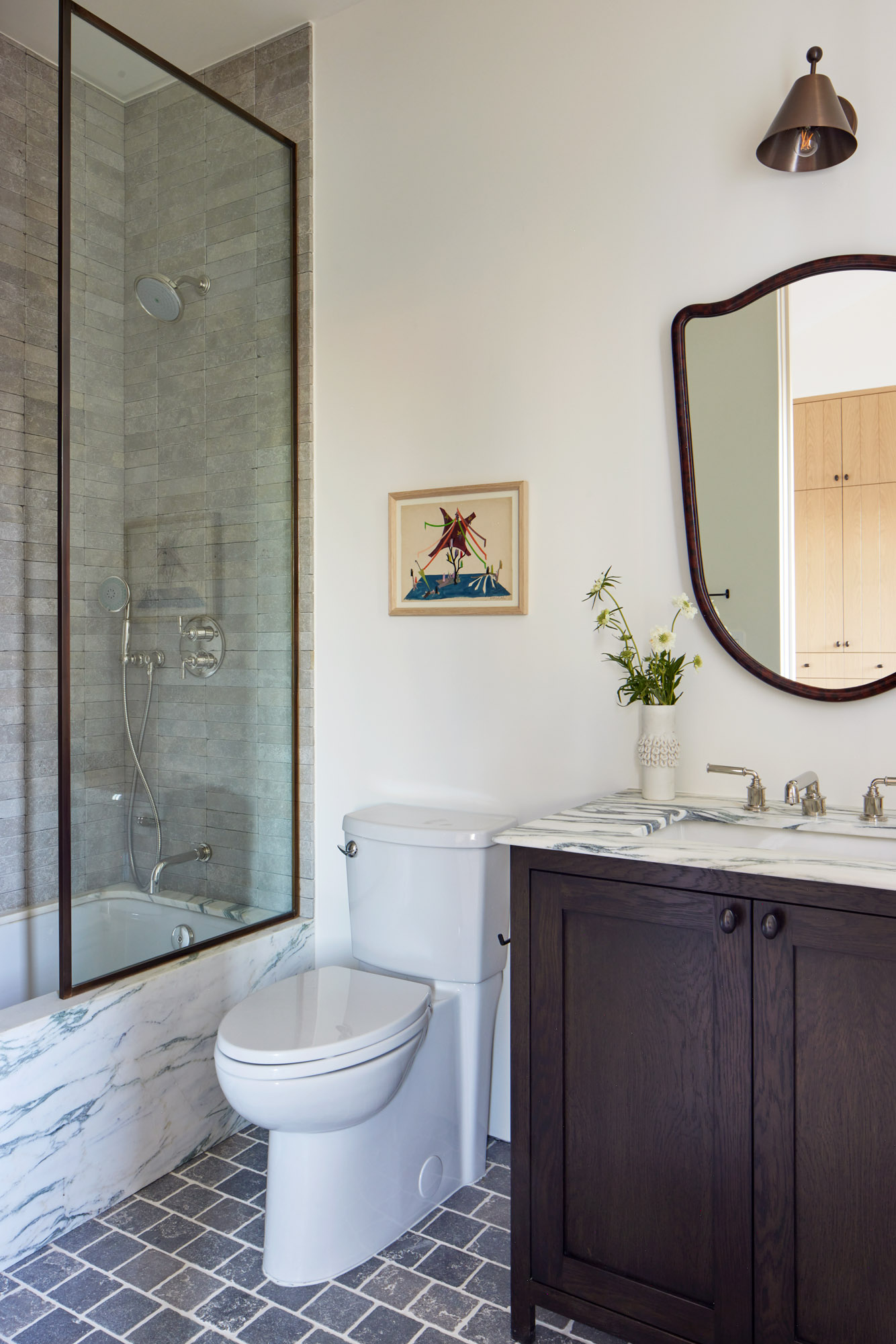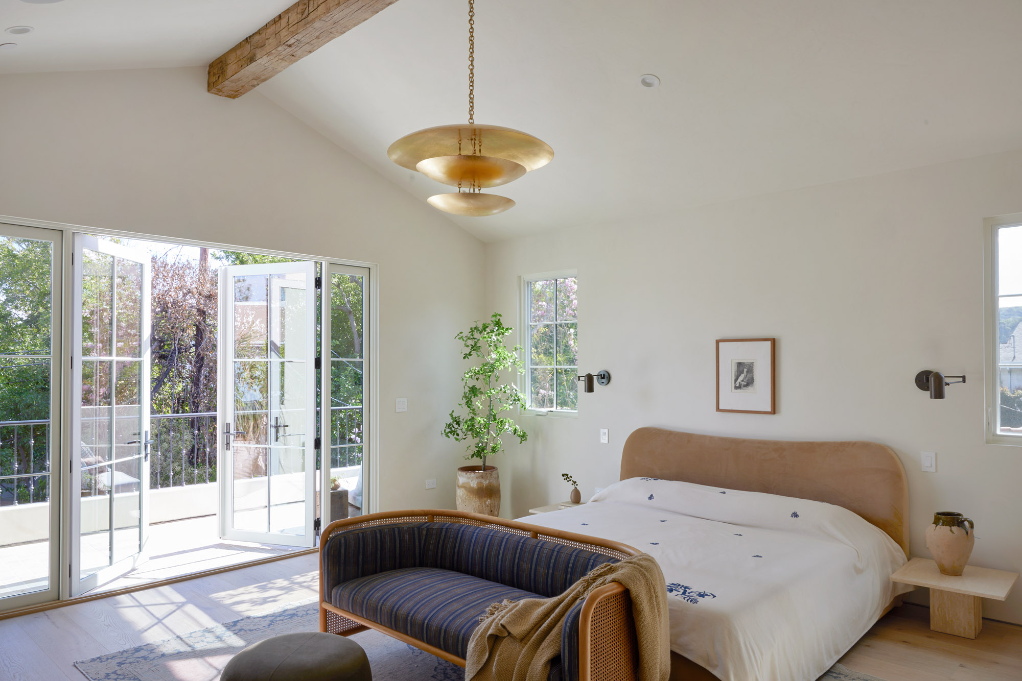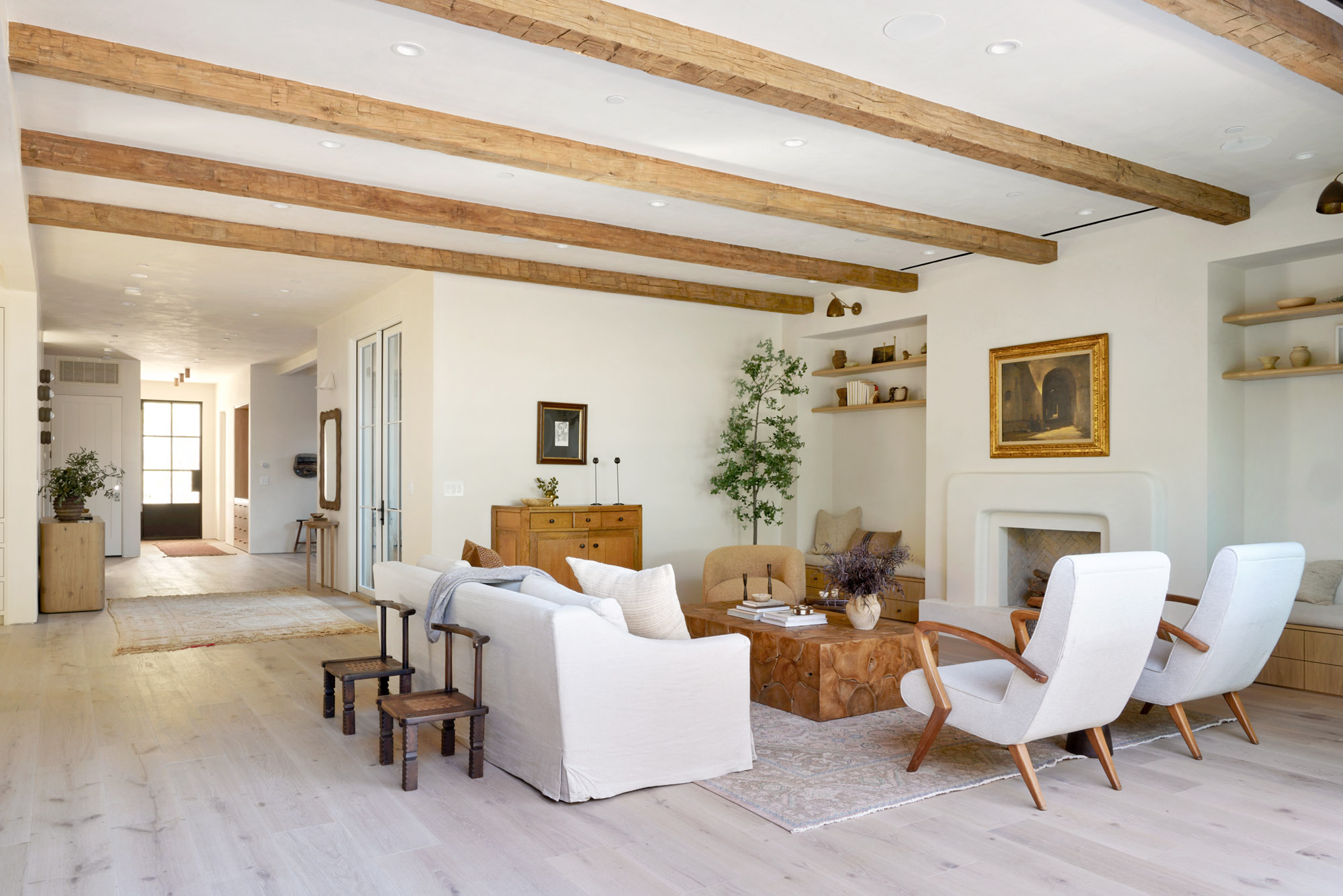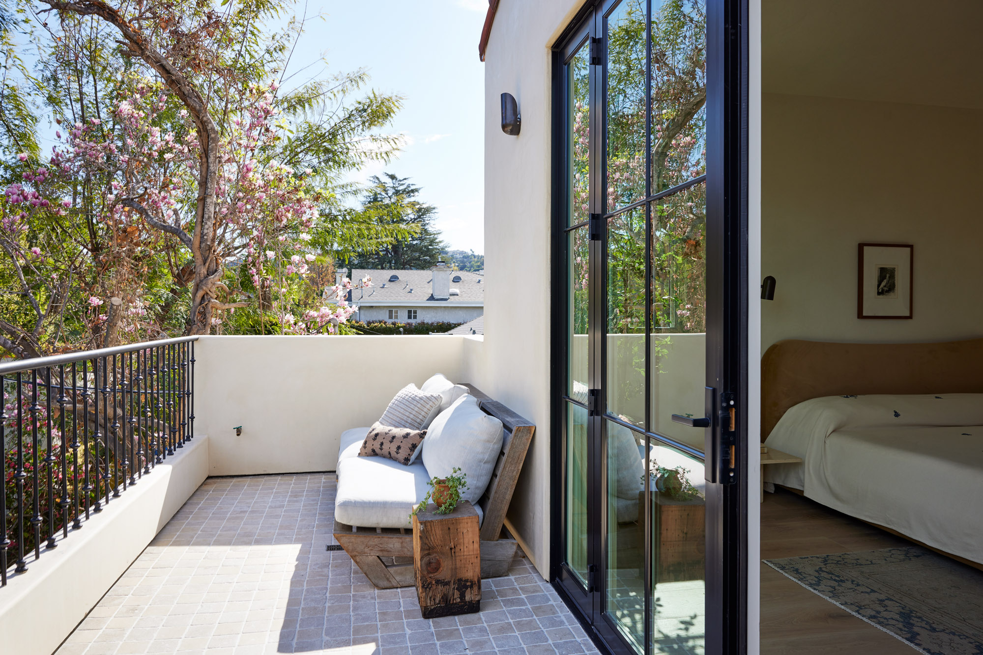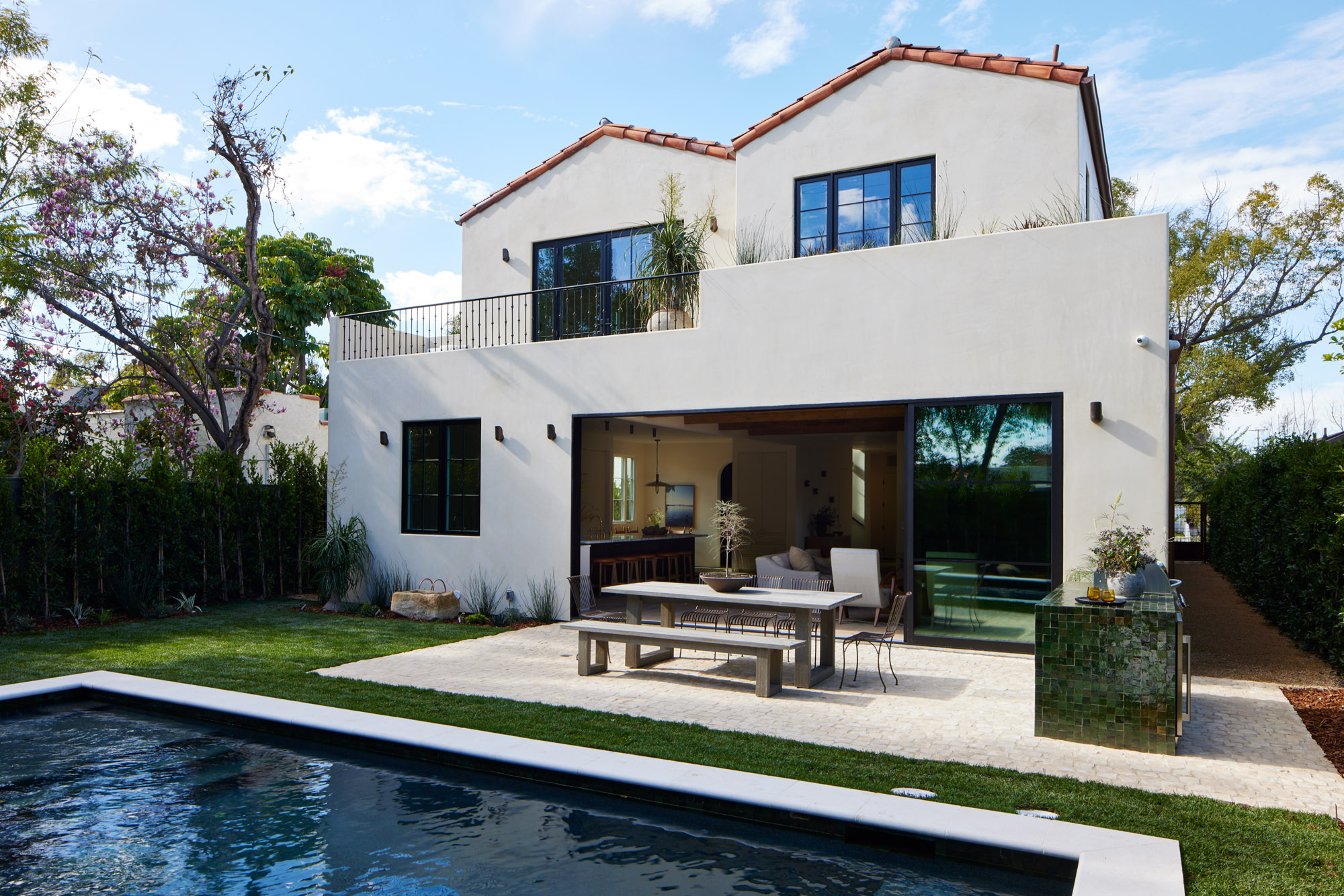 Behind a gated entry in Studio City’s coveted Footbridge Square, 4338 Rhodes Avenue unfolds as a soulful, Spanish-inspired new construction where timeless design meets modern luxury. Thoughtfully crafted with exquisite attention to detail, this 5BD/5.5BA residence offers a rare sense of privacy just moments from the heart of the city. White oak floors guide you through sun-drenched interiors designed for both quiet moments and grand gatherings. The formal dining room is anchored by an elegant wet bar with custom storage and a beverage refrigerator, while the chef’s kitchen is a work of art, featuring JennAir appliances, dual dishwashers, dramatic marble countertops and backsplashes, custom cabinetry, and an expansive island with barstool seating. A charming breakfast nook and walk-in pantry add warmth and ease. Exposed beam ceilings crown the living room, where a sculptural ethanol fireplace and sliding glass doors invite the outdoors in. Lincoln doors in between the living and dining areas open to a tranquil courtyard warmed by built-in heaters, further blurring the lines between inside and out. A main-level bedroom with a refined ensuite bath and a stylish powder room off of the entry complete the lower level. Upstairs, four ensuite bedrooms provide private retreats, including a serene primary suite with its own balcony, walk-in closet, fireplace, and spa-like bath with soaking tub, dual vanities, water closet, and double shower. Throughout the home, marble surfaces, Waterworks fixtures, and Ashley Norton hardware create a cohesive rhythm of understated elegance. Outside, a lush backyard framed with Eco Outdoor tile showcases resort-style living, where a sparkling pool and spa decked in green Zia tile pair beautifully with a built-in grill to create the perfect setting for entertaining. With a dedicated laundry room upstairs, integrated audio throughout, three AC units, security cameras, and close proximity to Carpenter Community Charter School, the Studio City Farmers Market, and Ventura Boulevard’s world-class dining and shops, this brand-new home offers a life of beauty, balance, and effortless California living.