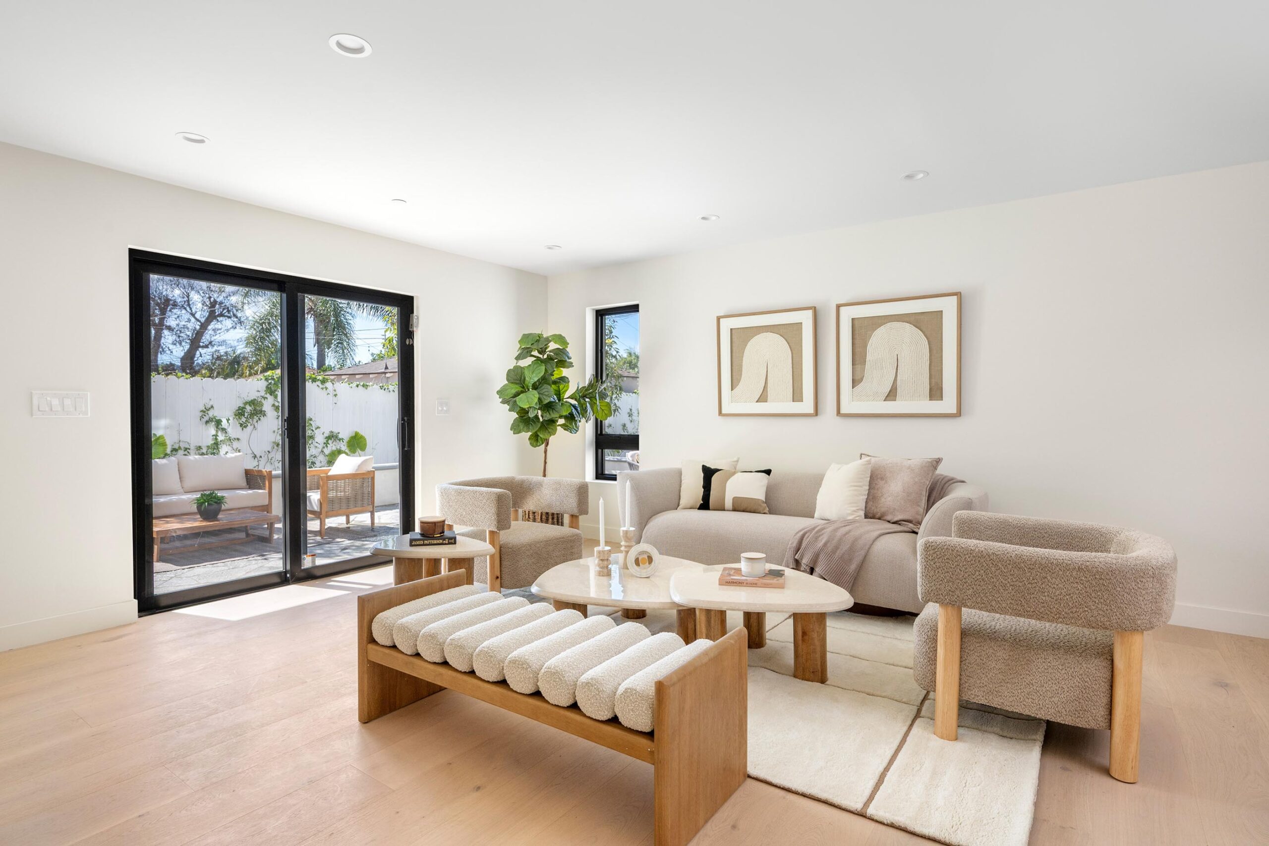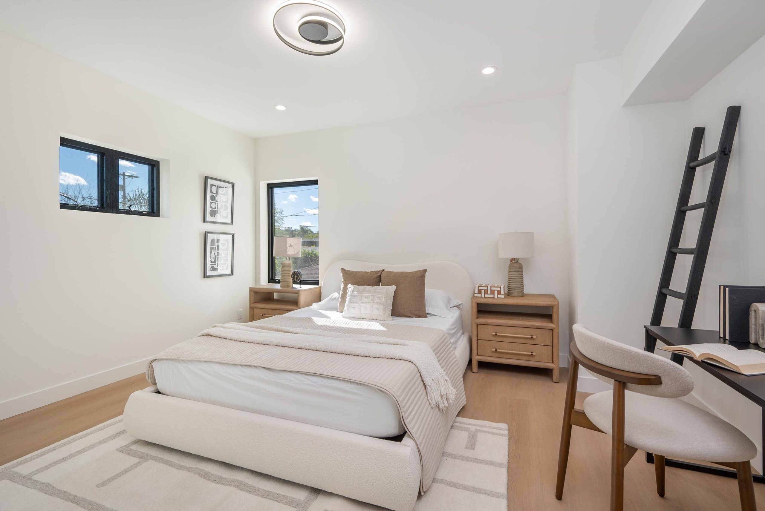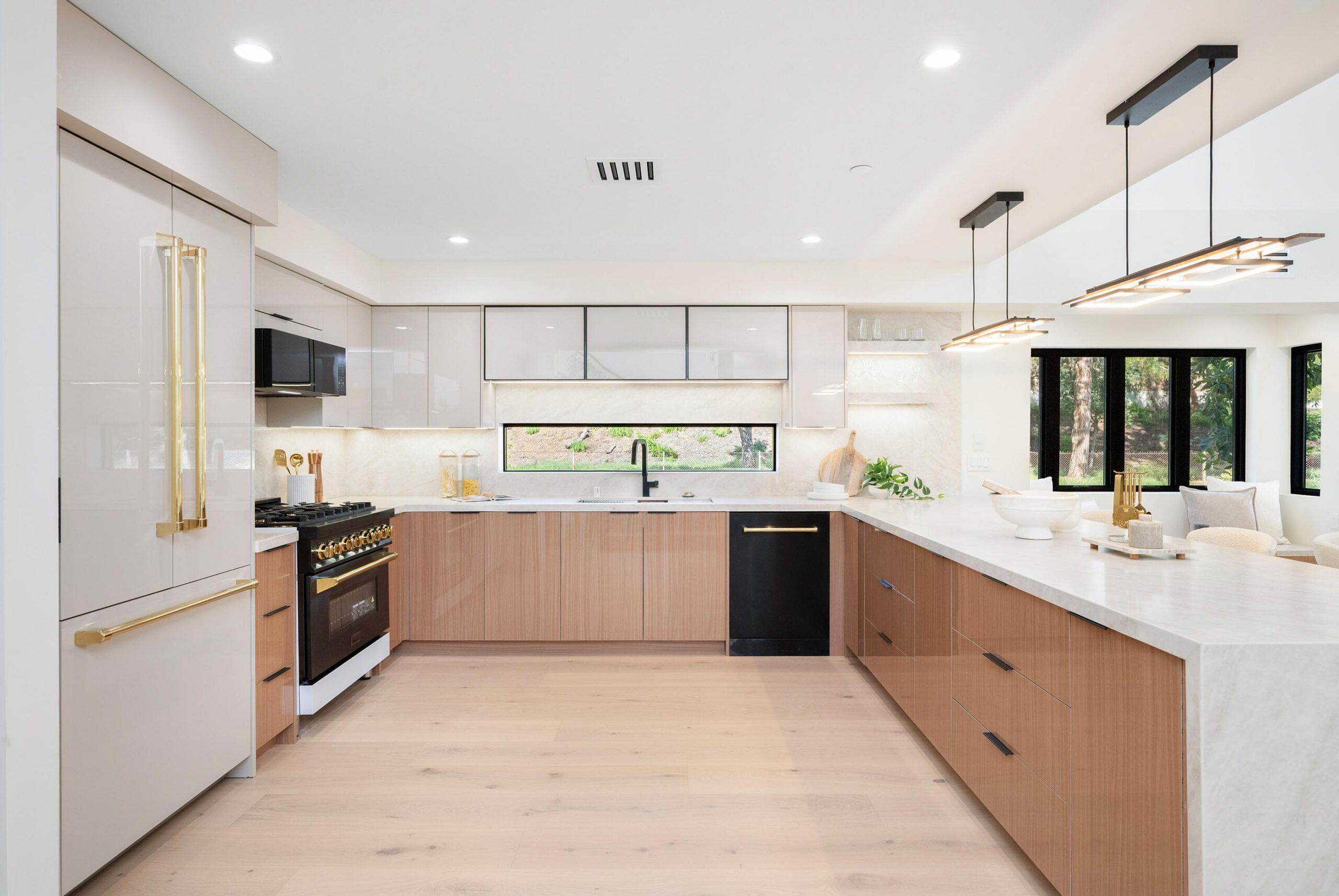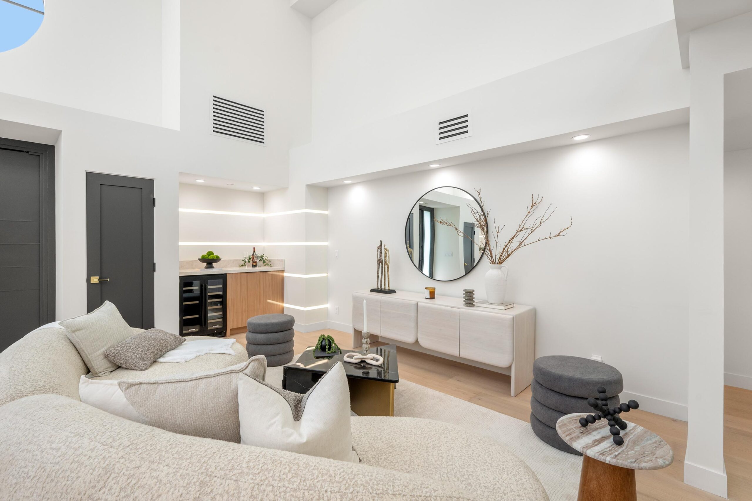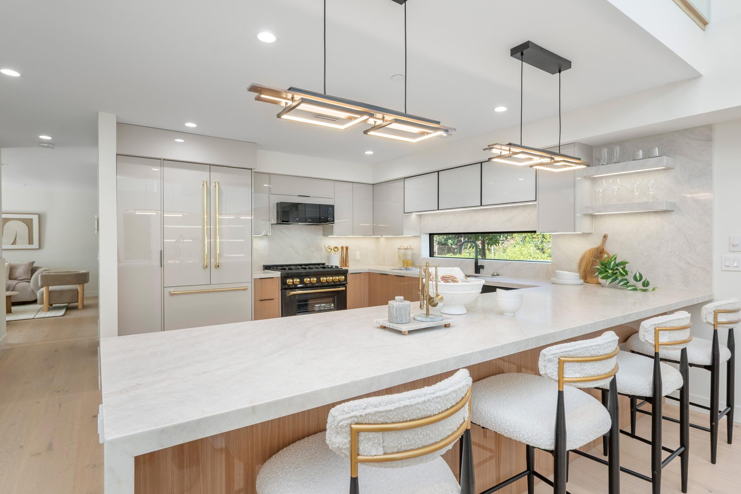 Presenting a newly remodeled corner-lot residence in Studio City filled with multiple living areas and generous outdoor space, designed for an elevated lifestyle. Thoughtfully reimagined with an open floor plan, soaring ceilings, and a clean contemporary aesthetic, this 4BD/4BA home plus office blends style and functionality at every turn. Warm flooring guides you through the main living and dining spaces, which flow seamlessly together and are enhanced by built-in storage and a custom minibar complete with wine cooler, ideal for entertaining. The sleek kitchen is outfitted with brand-new ZLINE appliances, including a six-burner range, complemented by striking countertops and bar seating perfect for casual gatherings. The main level features a light-filled bedroom with a full bath just off the hallway, along with a versatile bonus room well suited for a home office. Adjacent to the kitchen, an additional living area with a modern fireplace and sliding glass doors opens effortlessly to the backyard. A stylish powder bath nearby provides convenience for guests. Upstairs, three additional bedrooms await, including a luxurious primary suite occupying its own private wing. This retreat boasts two custom walk-in closets, a stunning fireplace, and an en-suite bath with an enclosed step-in shower, soaking tub, dual floating vanities, and a water closet with an automatic toilet. Two secondary bedrooms offer ample storage and share a beautifully appointed bathroom with dual vanities and a spa-like shower. Overlooking the main living spaces, a cozy upstairs loft further enhances the home’s airy, open feel. Outdoors, the entertainer’s backyard invites year-round enjoyment with a sparkling pool and spa, an expansive turf area with fire pit, and multiple gathering spaces for relaxing or hosting. Additional highlights include a three-car garage with direct interior access, abundant storage throughout, and a dedicated laundry room with sink. Ideally located moments from Tujunga Village and Studio City’s favorite boutiques and cafés, this thoughtfully redesigned home captures the essence of elevated California living.