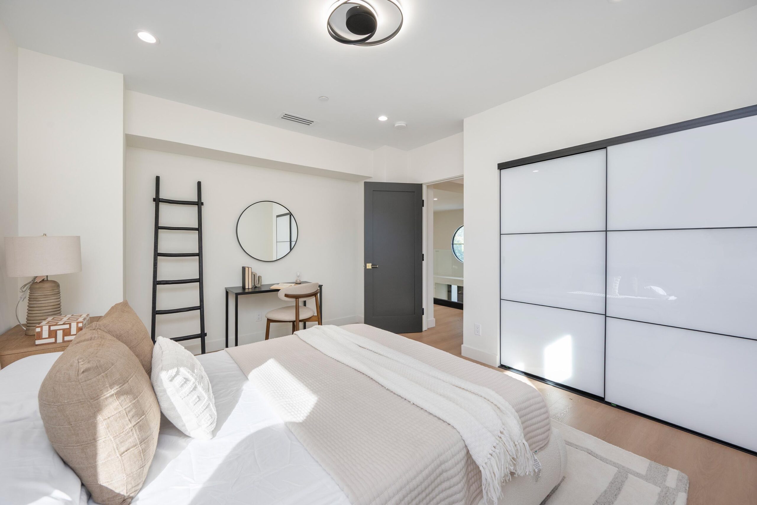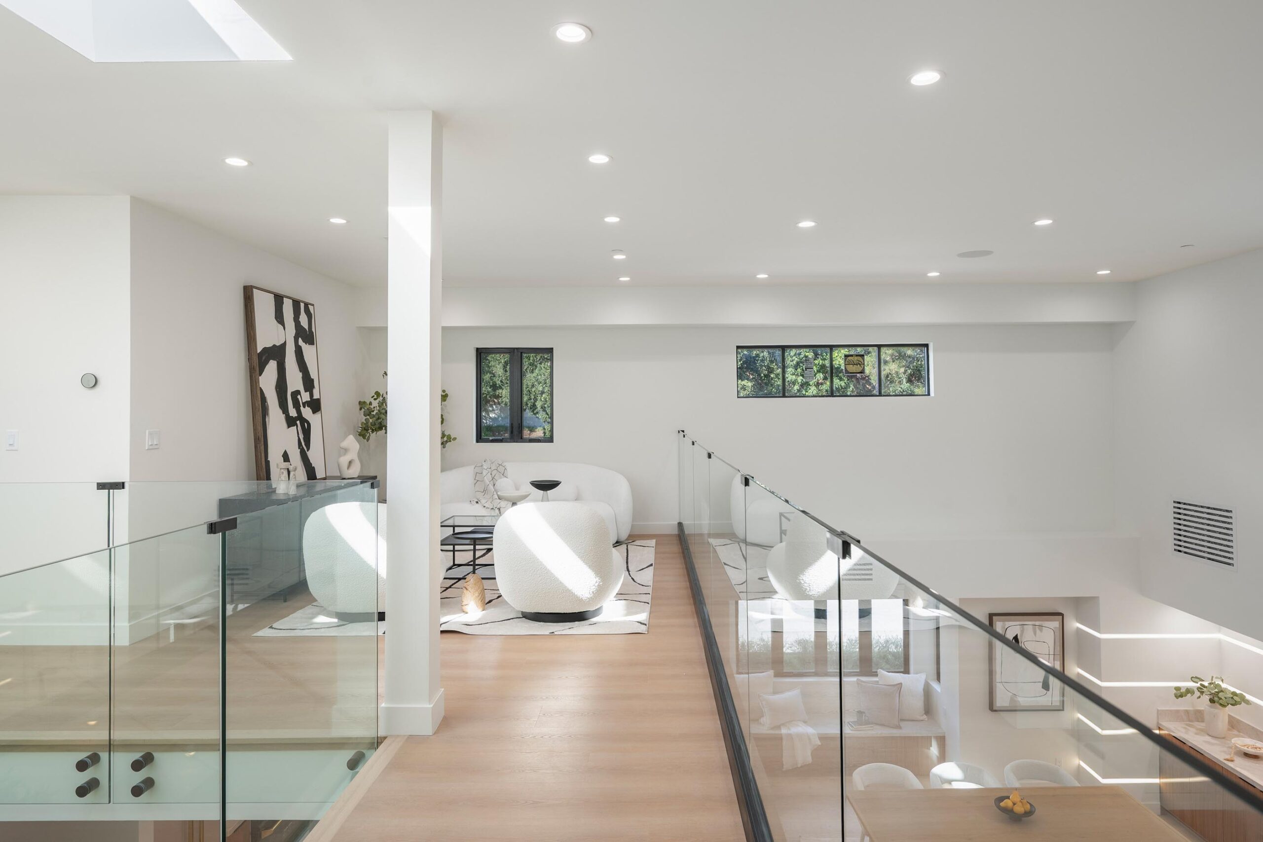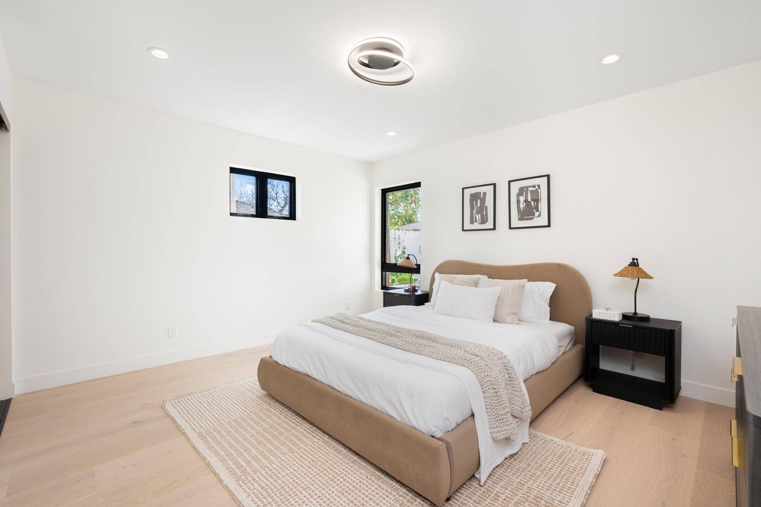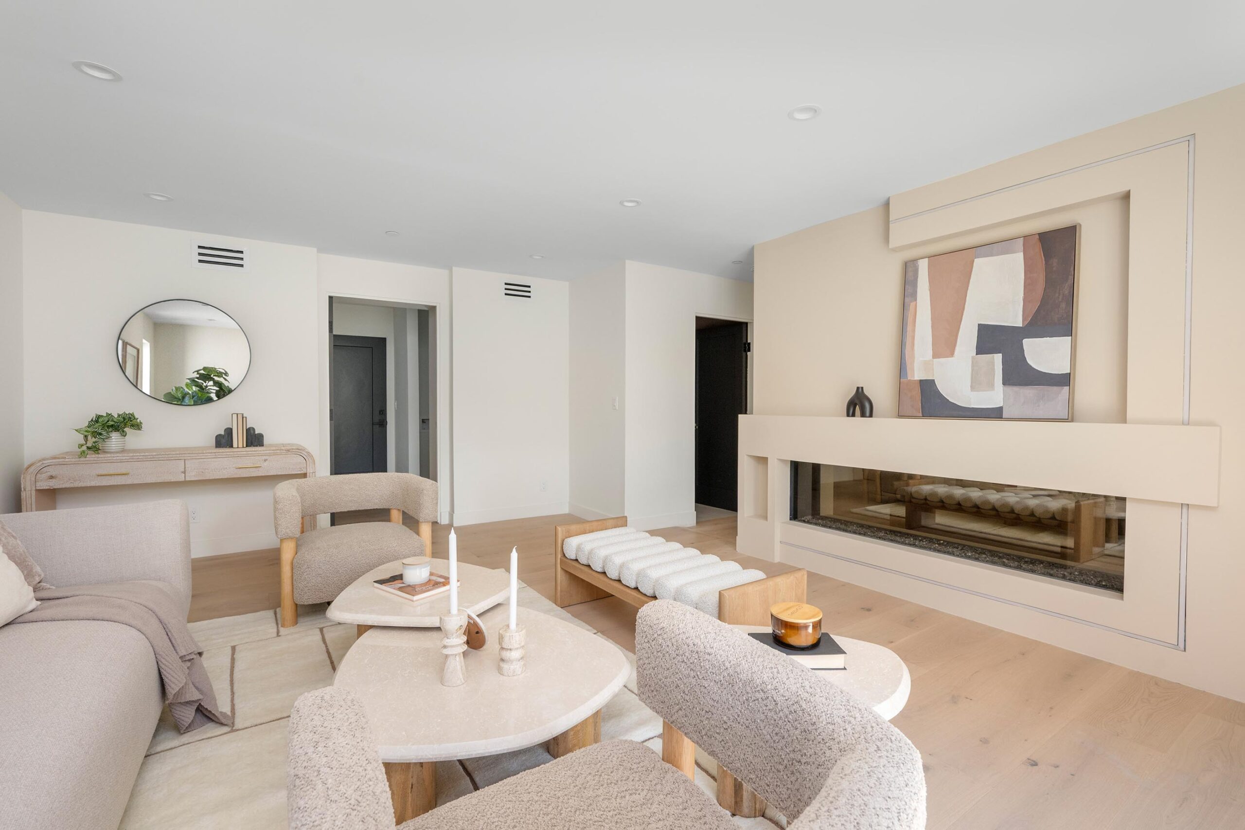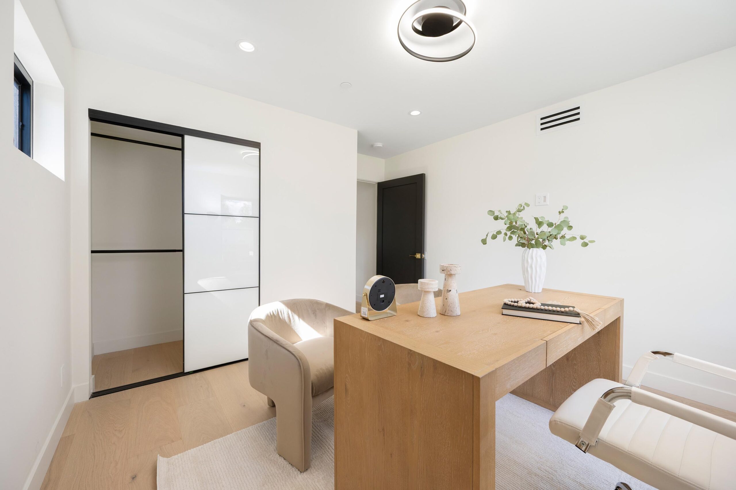 Presenting a newly remodeled corner-lot residence in Studio City filled with multiple living areas and generous outdoor space, designed for an elevated lifestyle. Thoughtfully reimagined with an open floor plan, soaring ceilings, and a clean contemporary aesthetic, this 4BD/4BA home plus office blends style and functionality at every turn. Warm flooring guides you through the main living and dining spaces, which flow seamlessly together and are enhanced by built-in storage and a custom minibar complete with wine cooler, ideal for entertaining. The sleek kitchen is outfitted with brand-new ZLINE appliances, including a six-burner range, complemented by striking countertops and bar seating perfect for casual gatherings. The main level features a light-filled bedroom with a full bath just off the hallway, along with a versatile bonus room well suited for a home office. Adjacent to the kitchen, an additional living area with a modern fireplace and sliding glass doors opens effortlessly to the backyard. A stylish powder bath nearby provides convenience for guests. Upstairs, three additional bedrooms await, including a luxurious primary suite occupying its own private wing. This retreat boasts two custom walk-in closets, a stunning fireplace, and an en-suite bath with an enclosed step-in shower, soaking tub, dual floating vanities, and a water closet with an automatic toilet. Two secondary bedrooms offer ample storage and share a beautifully appointed bathroom with dual vanities and a spa-like shower. Overlooking the main living spaces, a cozy upstairs loft further enhances the home’s airy, open feel. Outdoors, the entertainer’s backyard invites year-round enjoyment with a sparkling pool and spa, an expansive turf area with fire pit, and multiple gathering spaces for relaxing or hosting. Additional highlights include a three-car garage with direct interior access, abundant storage throughout, and a dedicated laundry room with sink. Ideally located moments from Tujunga Village and Studio City’s favorite boutiques and cafés, this thoughtfully redesigned home captures the essence of elevated California living.