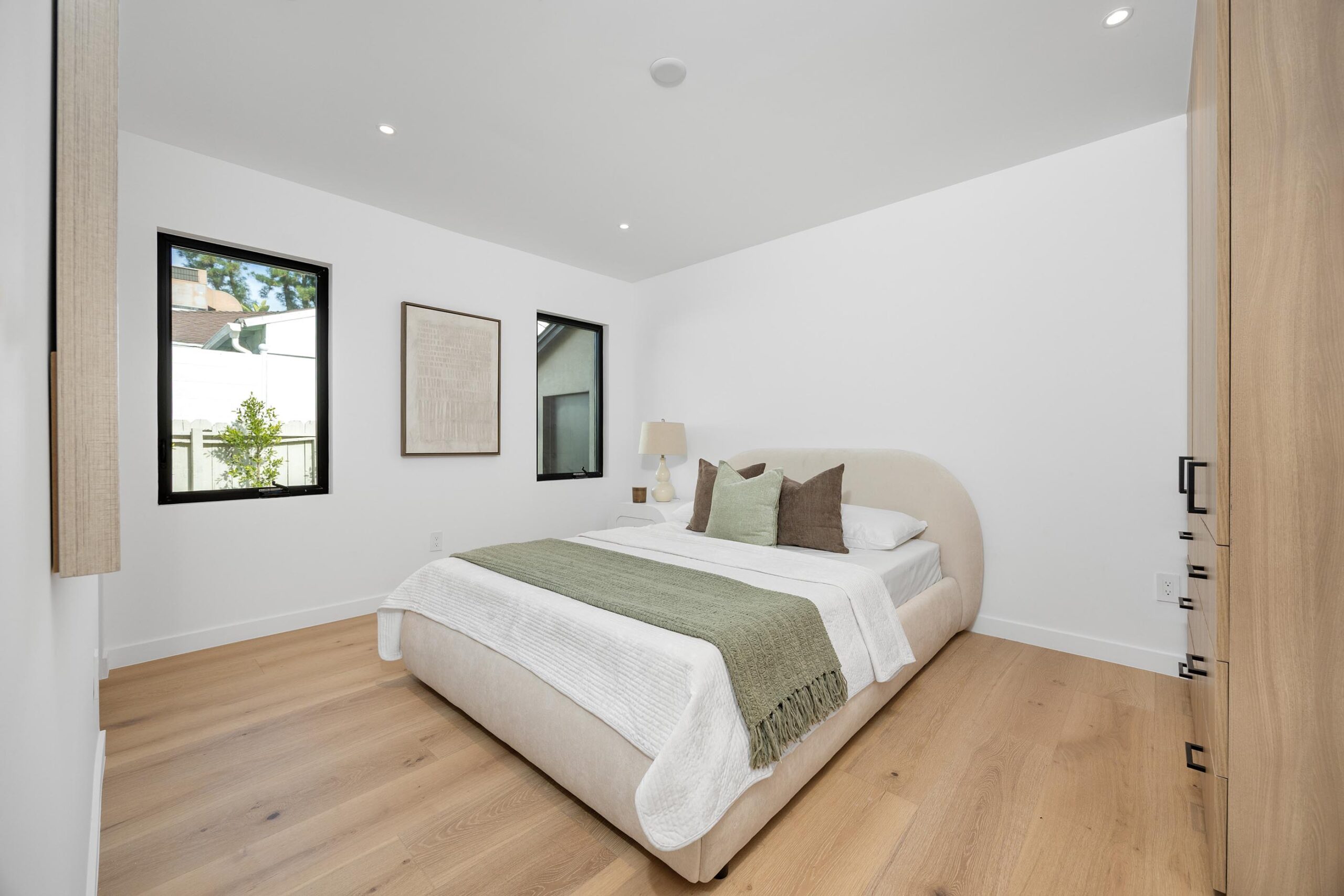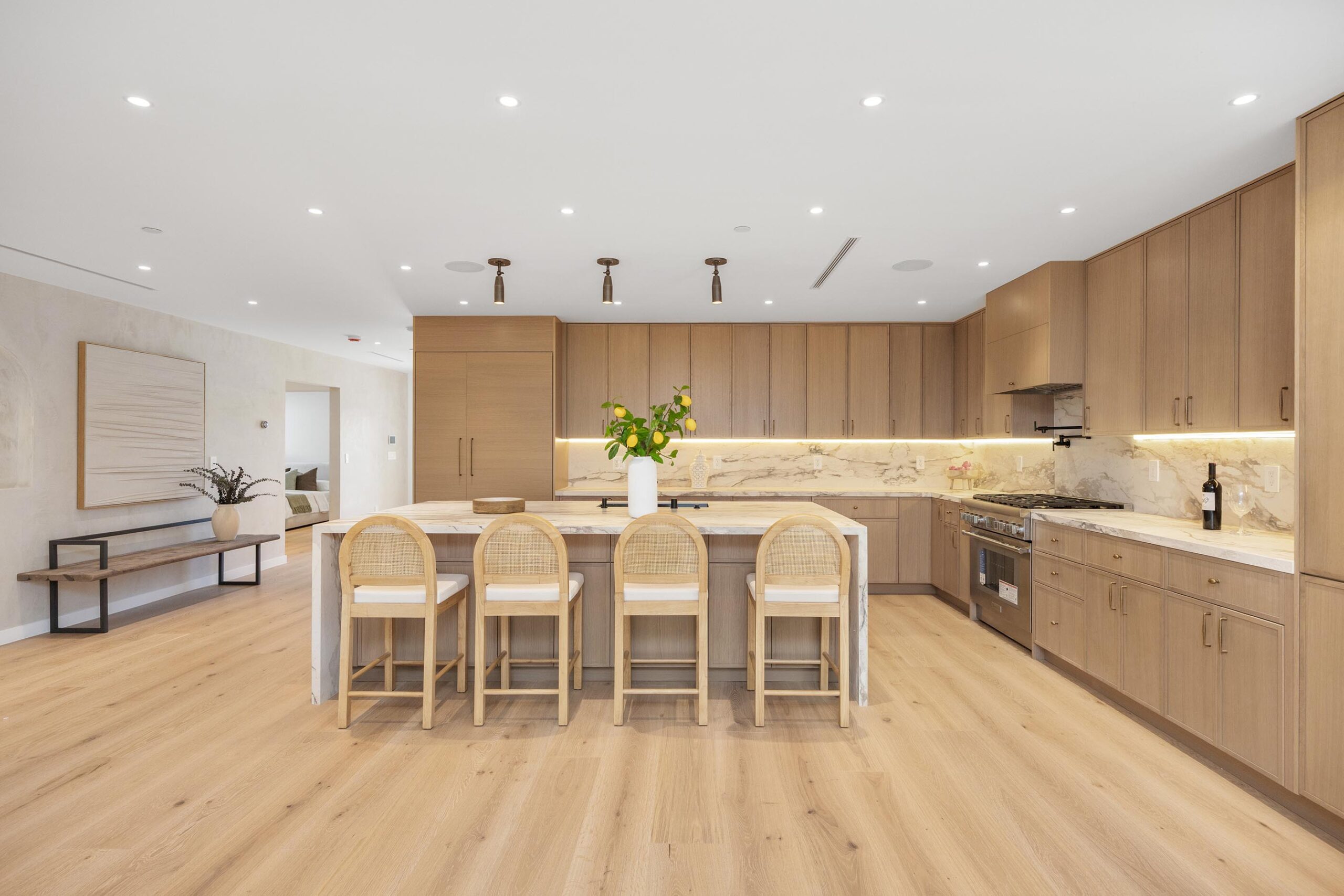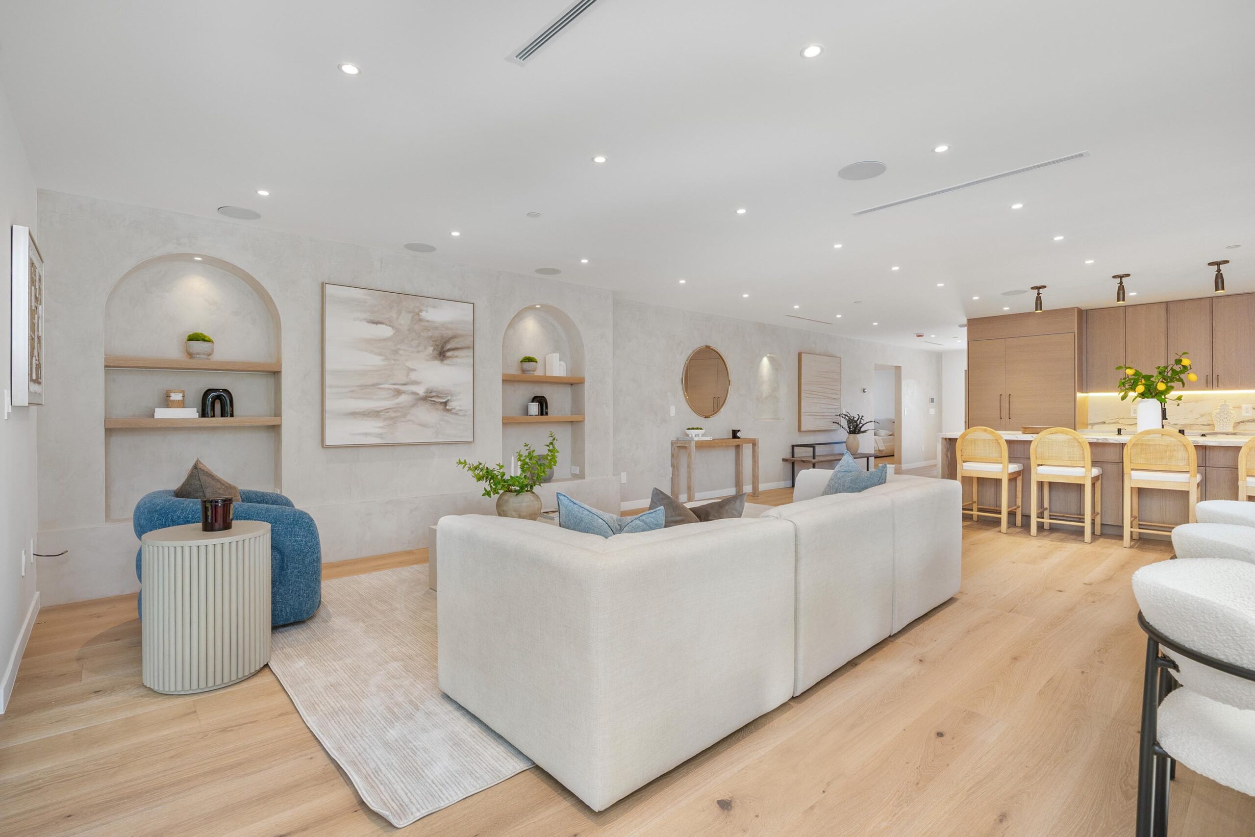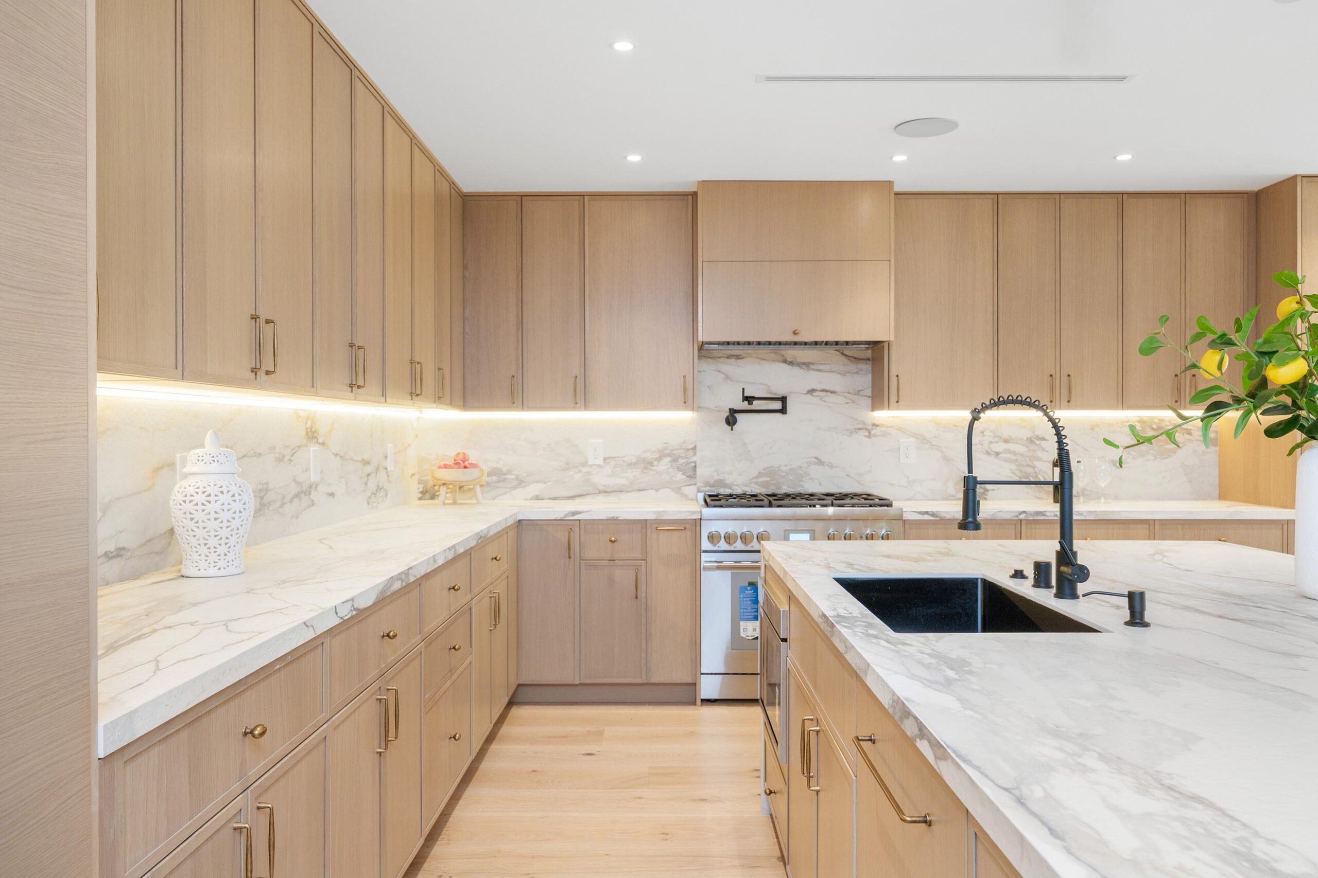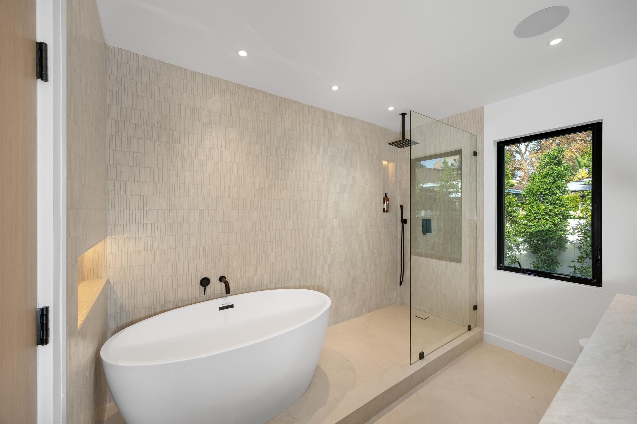 Located in a highly desirable pocket of Sherman Oaks, this beautifully reimagined single-level residence blends refined design with effortless livability. Offering three bedrooms and three and a half bathrooms, the home unfolds across a generous open floor plan ideal for both everyday comfort and elevated entertaining. Upon entry, oak hardwood floors, abundant natural light, and Marmorino Tintoretto plaster walls create an immediate sense of warmth and sophistication. At the heart of the home, the gourmet kitchen is a true showpiece, featuring premium Thermador appliances, porcelain countertops, sleek light-toned cabinetry, and an oversized island with bar seating, perfect for casual meals or gathering with guests. The kitchen flows seamlessly into the living and dining areas, where expansive sliding glass doors invite the outdoors in and open to the backyard retreat. Just off the kitchen, a stylish powder bath with a natural silver travertine vanity adds convenience for hosting.The main hallway leads to a serene primary suite, complete with a spacious walk-in closet, direct backyard access, and a spa-inspired ensuite bath featuring a floating double vanity, a large step-in shower with built-in bench, and a soaking tub. Two additional bedrooms near the entry each offer their own ensuite baths with stone-topped floating vanities and luxe step-in showers. A thoughtfully designed laundry area with additional storage completes the interior. Designed for year-round enjoyment, the lush backyard captures the essence of California living with a covered patio, a charming lemon tree, and ample space for entertaining under the stars. Ideally located moments from Westfield Fashion Square and the renowned shops and restaurants of Ventura Boulevard, this home seamlessly blends contemporary luxury with everyday convenience.